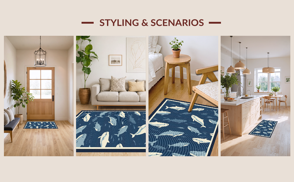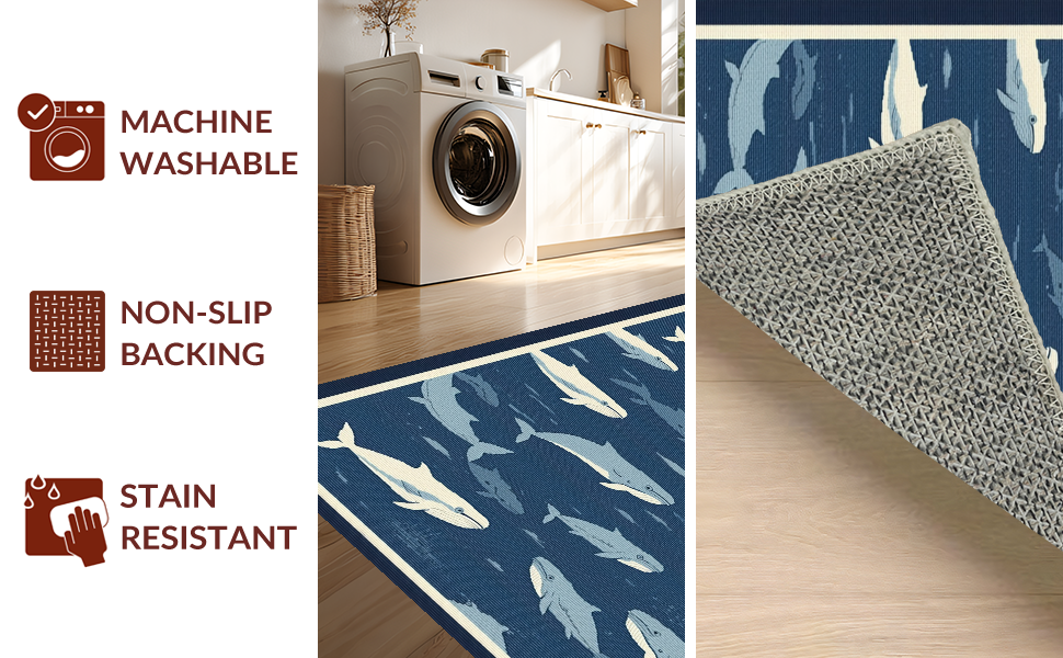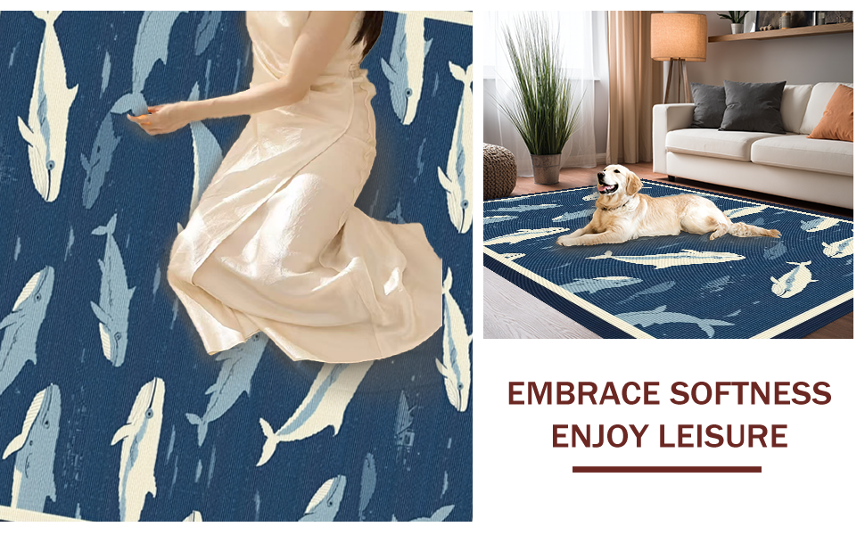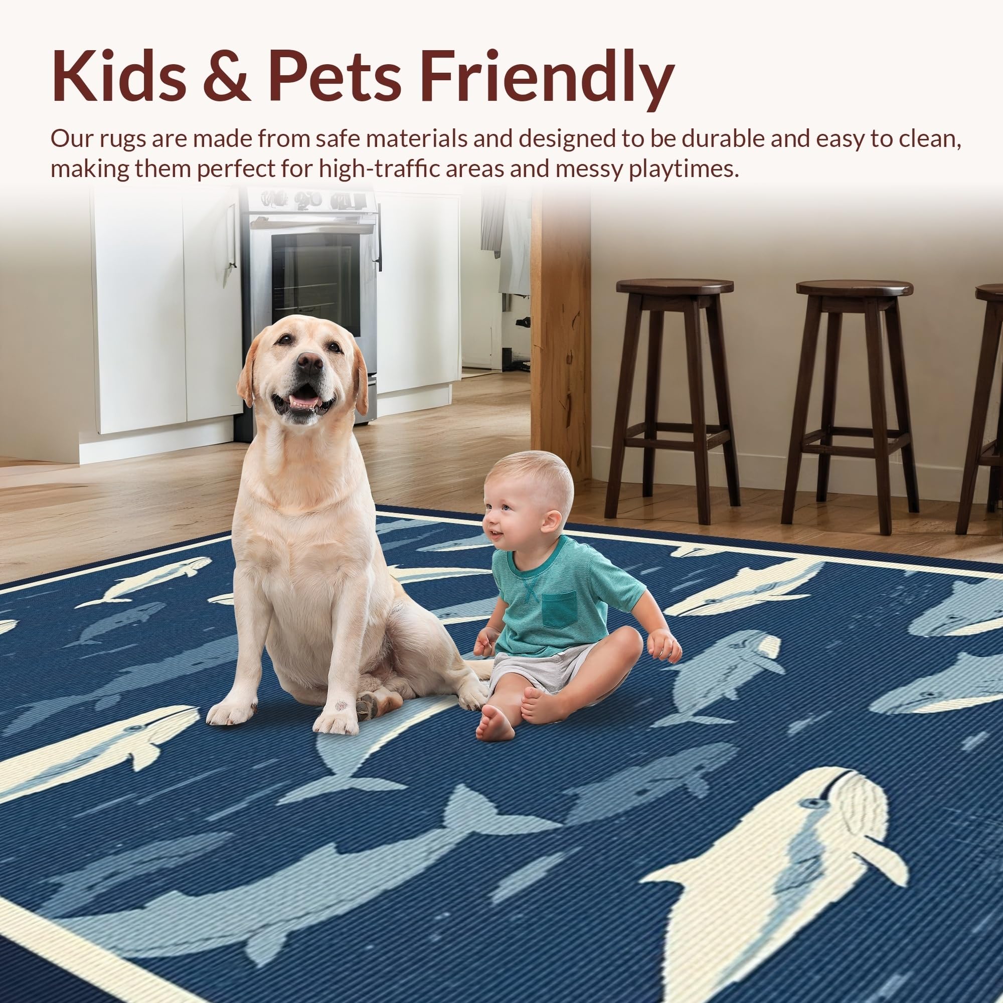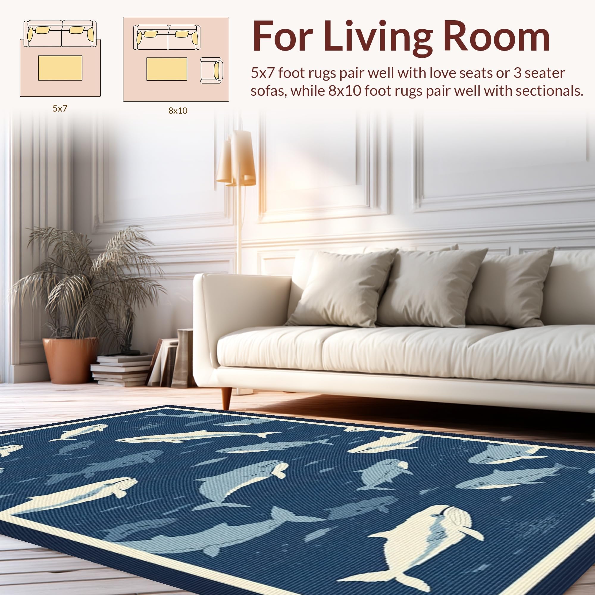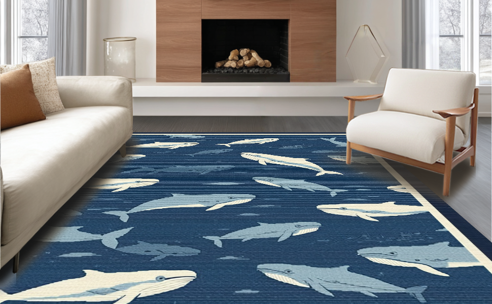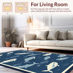 Ultra Soft Area Rug, Non Slip, Stain Resistant, Washable Area Rugs for Living Room, Bedroom, Elegant Hand-Hooked Ocean Theme(Blue) Overview: