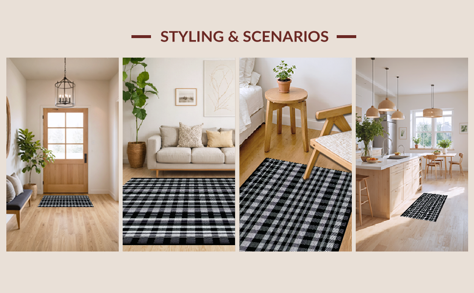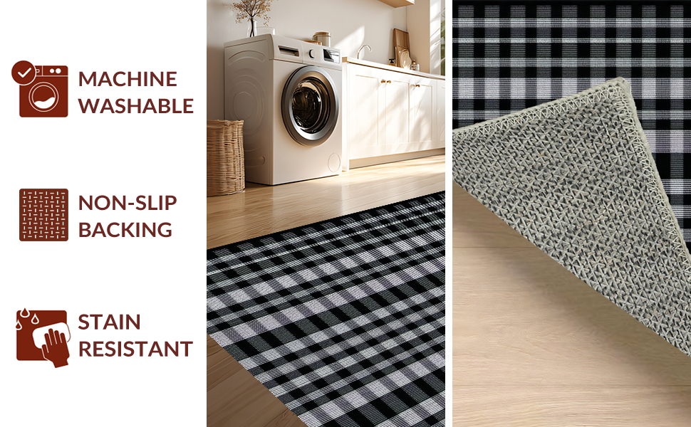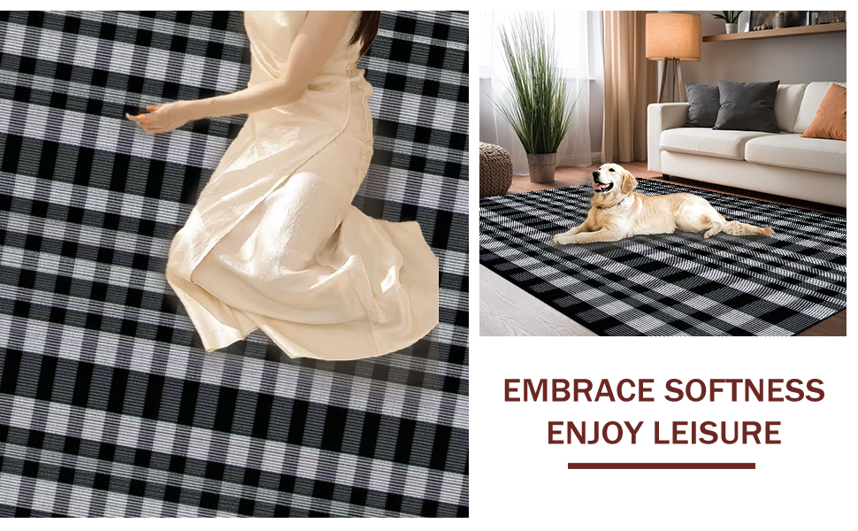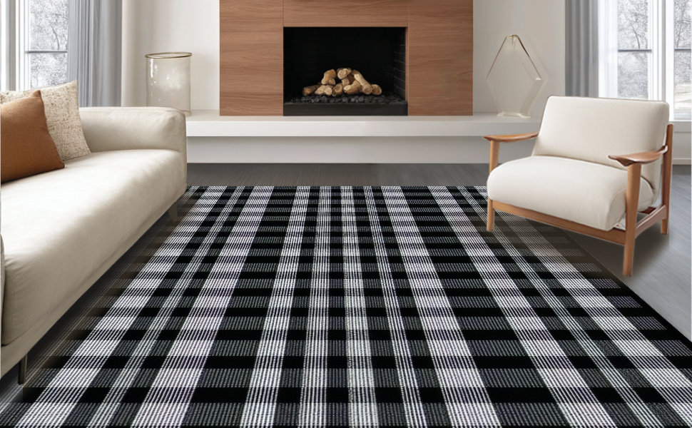 Ultra Soft Area Rug, Non Slip, Stain Resistant, Washable Area Rugs for Living Room, Bedroom, Elegant Hand-Woven Plaid Texture(Black) Overview: