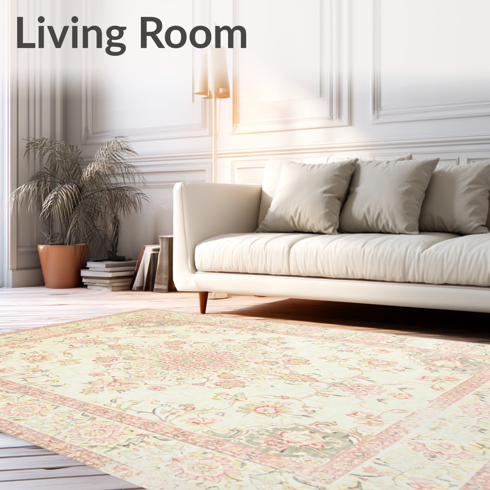 Ultra Soft Area Rug, Non Slip, Stain Resistant, Washable Area Rugs for Living Room, Bedroom, Elegant Heirloom Area Ivory Beige Ornate Medallion(Beige) Overview: