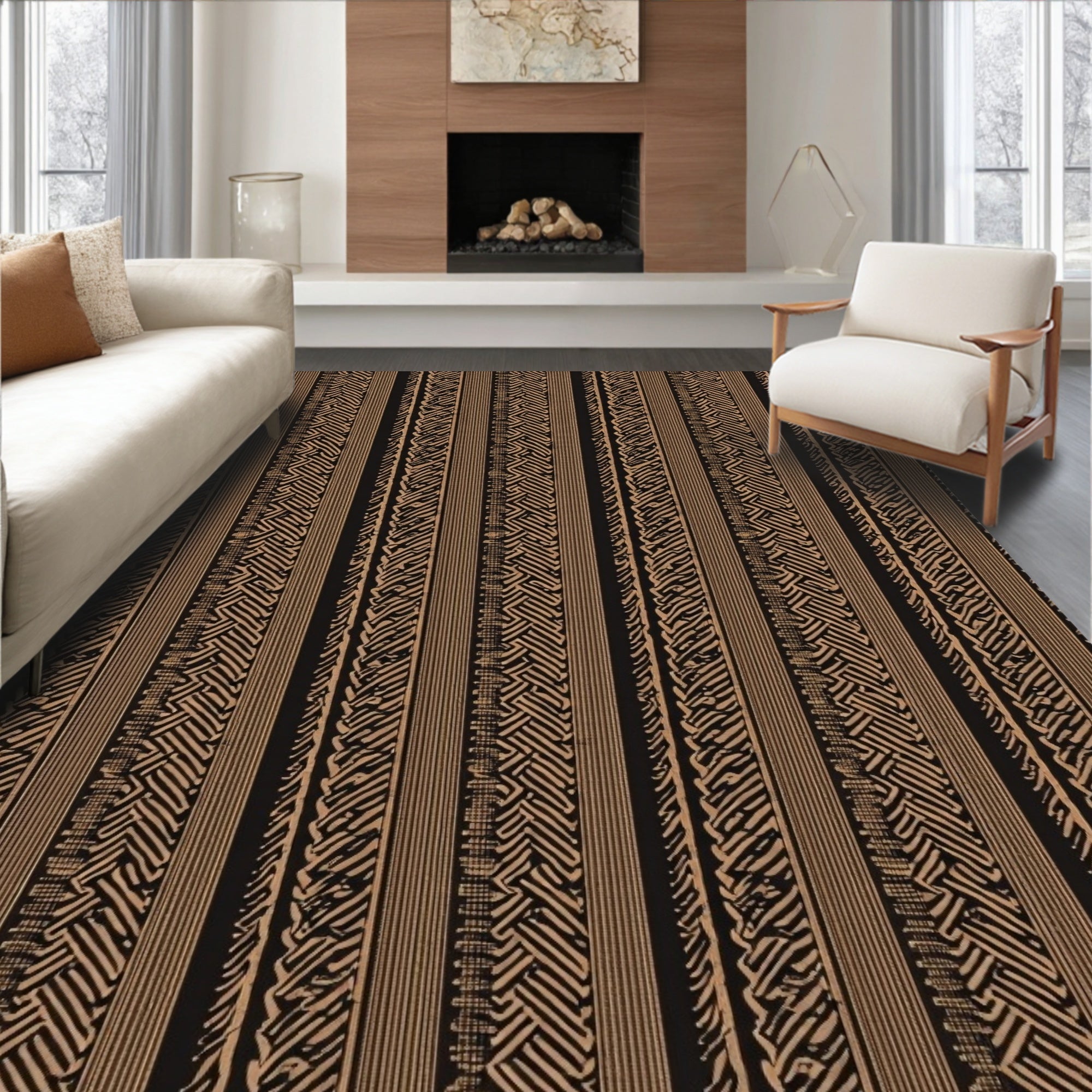 Flatwoven High Traffic Area Rug, Elegant Herringbone Texture Design, Non Slip, Stain Resistant, Washable Area Rugs for Living Room, Bedroom (Brown) Overview: