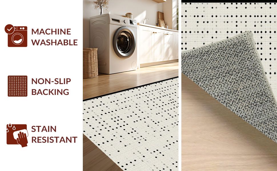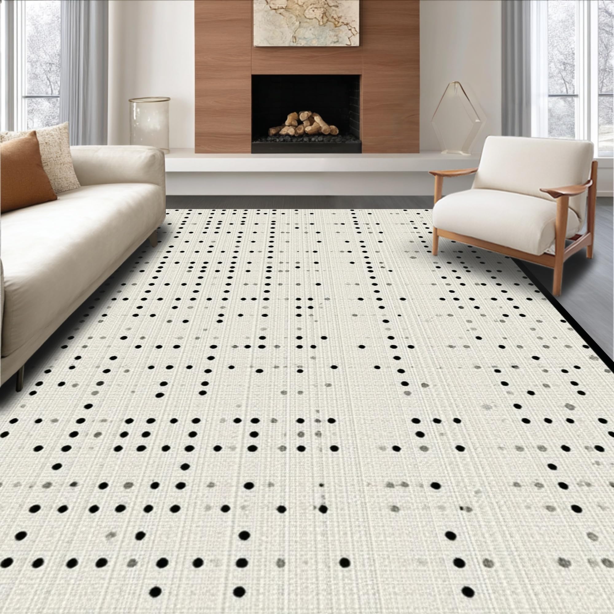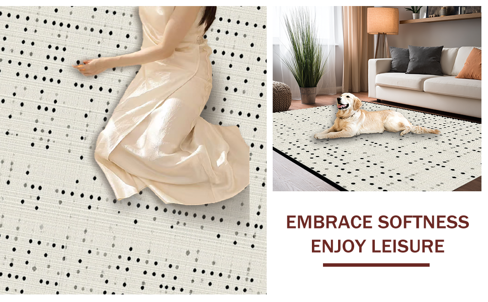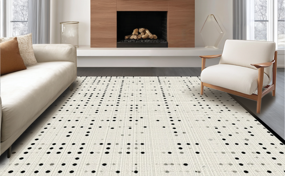 Ultra Soft Area Rug, Non Slip, Stain Resistant, Washable Area Rugs for Living Room, Bedroom, Elegant High-Contrast Dot Design(Beige) Overview: