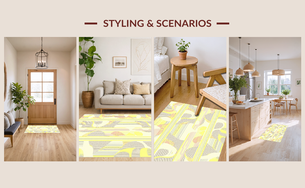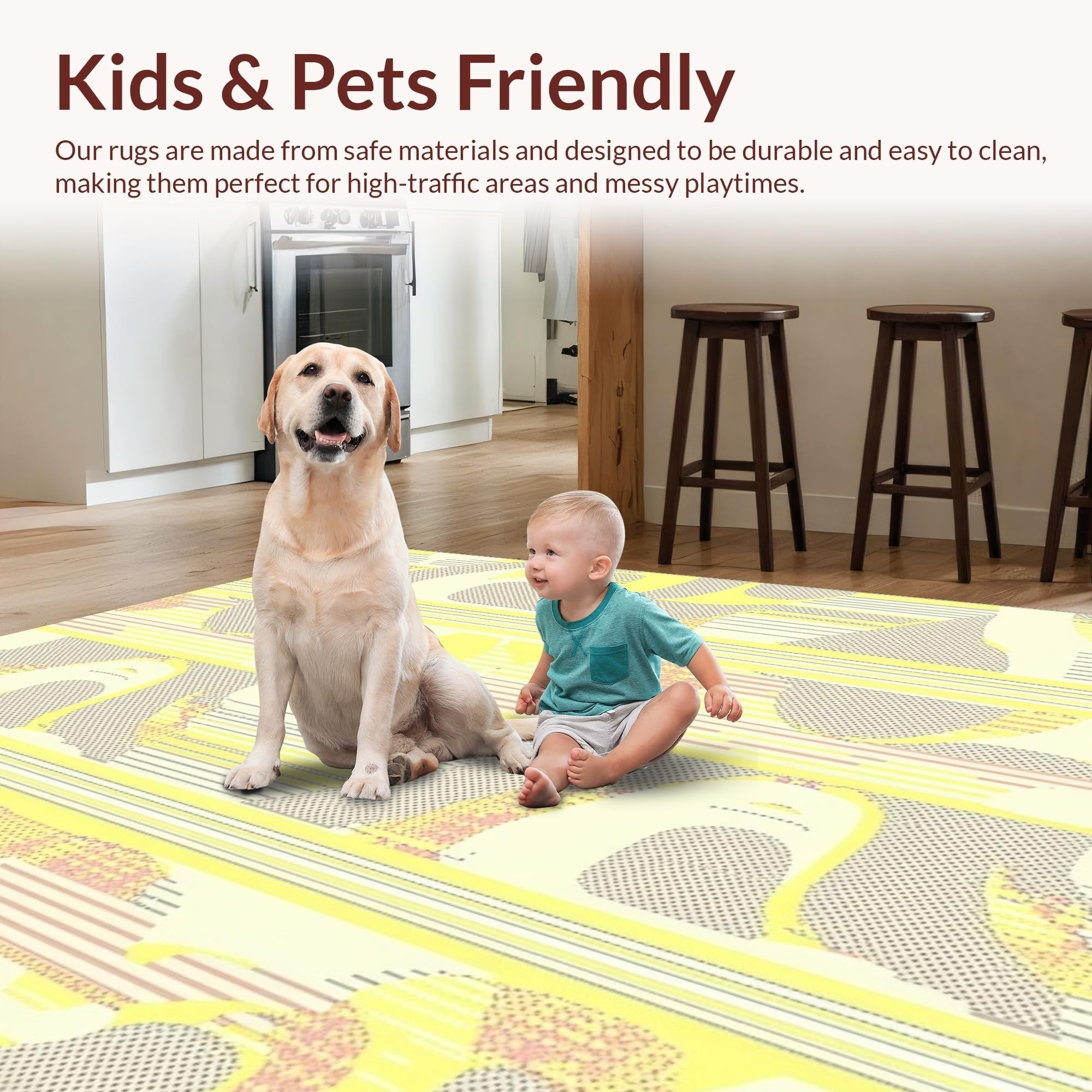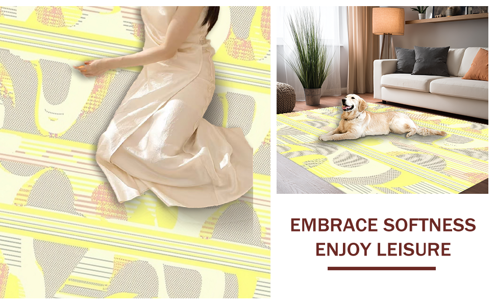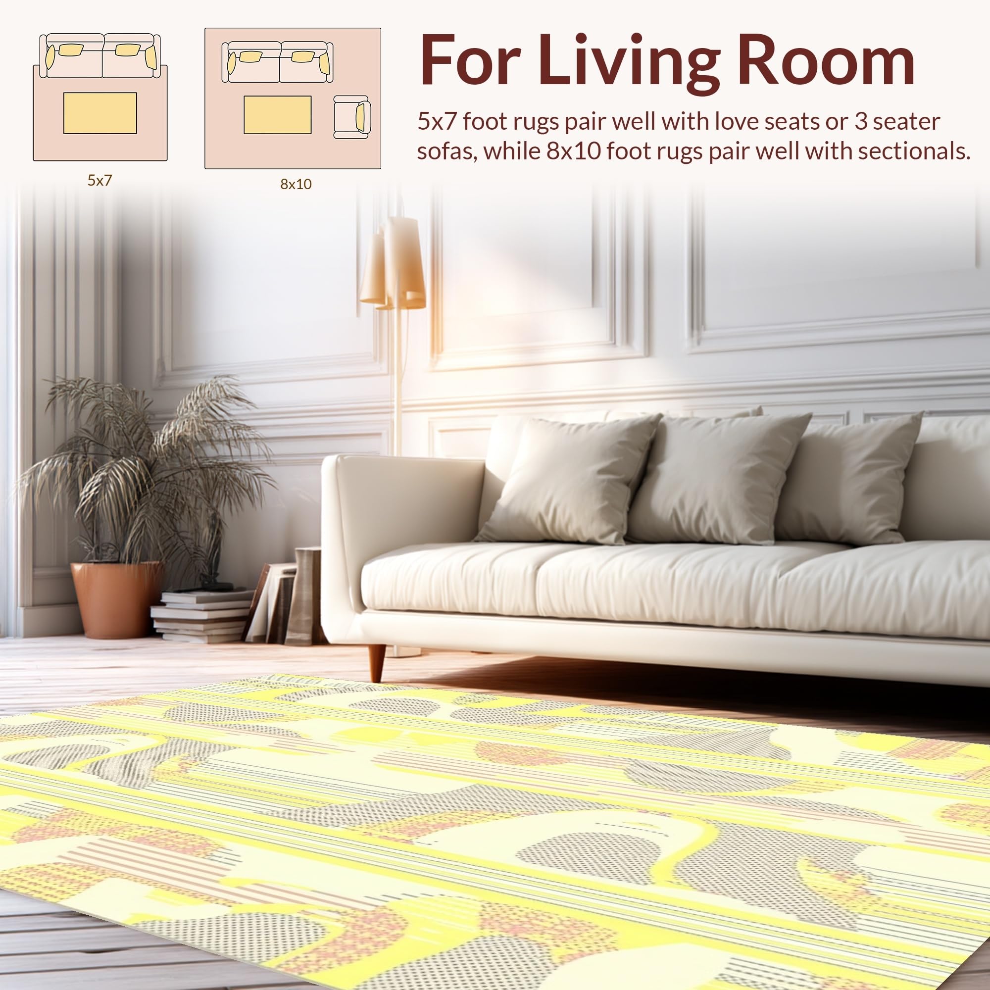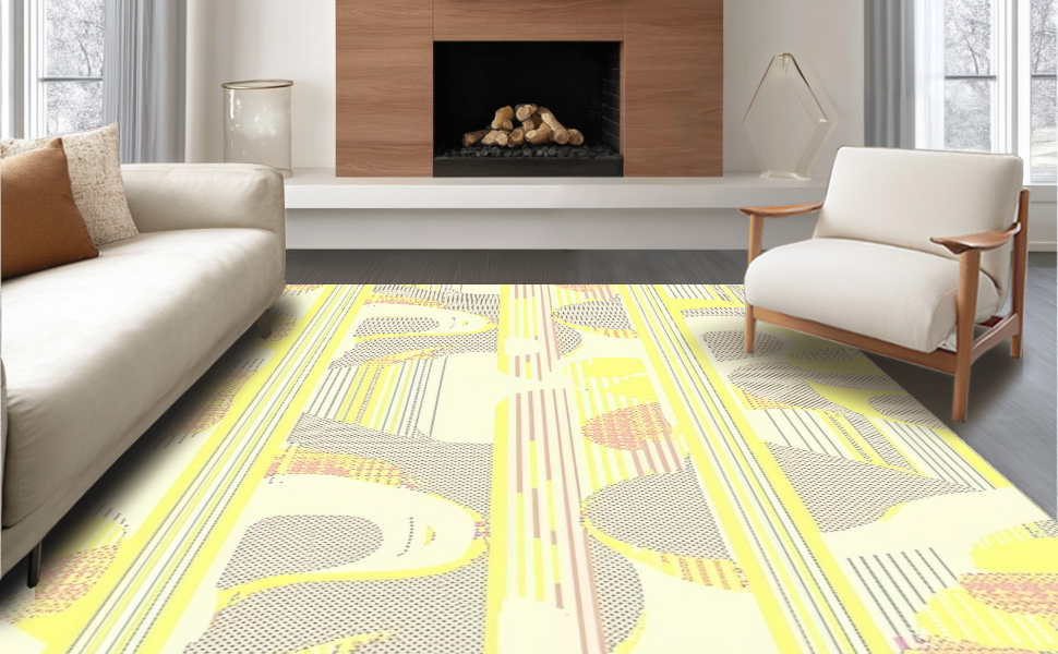 Ultra Soft Area Rug, Non Slip, Stain Resistant, Washable Area Rugs for Living Room, Bedroom, Elegant High-Low Abstract Whirls(Yellow) Overview: