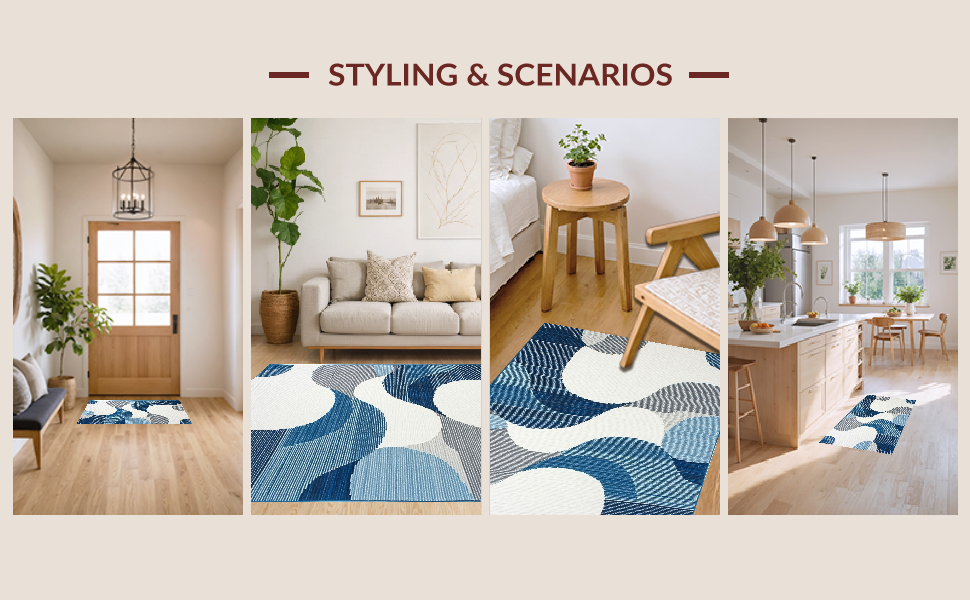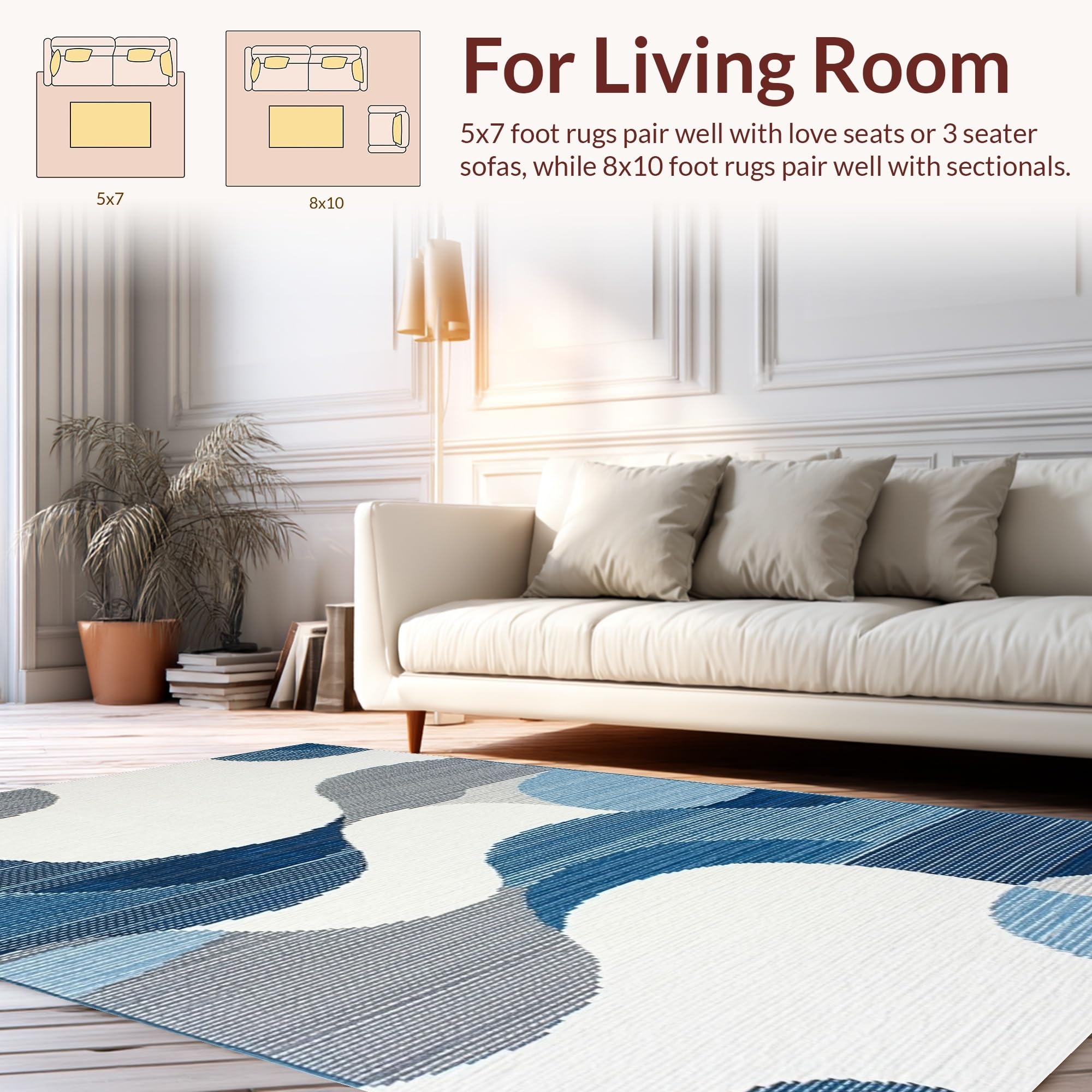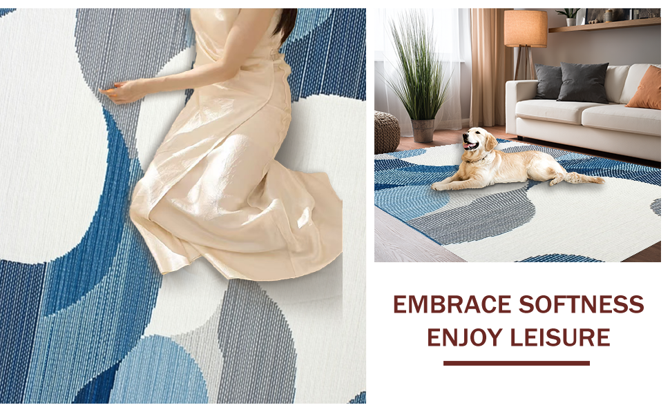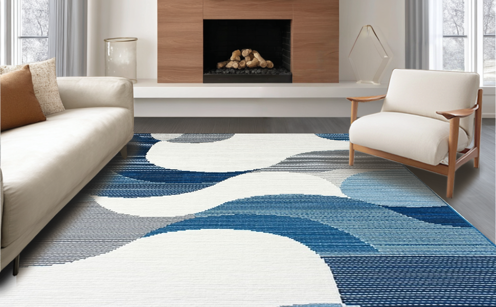 Ultra Soft Area Rug, Non Slip, Stain Resistant, Washable Area Rugs for Living Room, Bedroom, Elegant High-Low Texture Blend(Blue) Overview:
