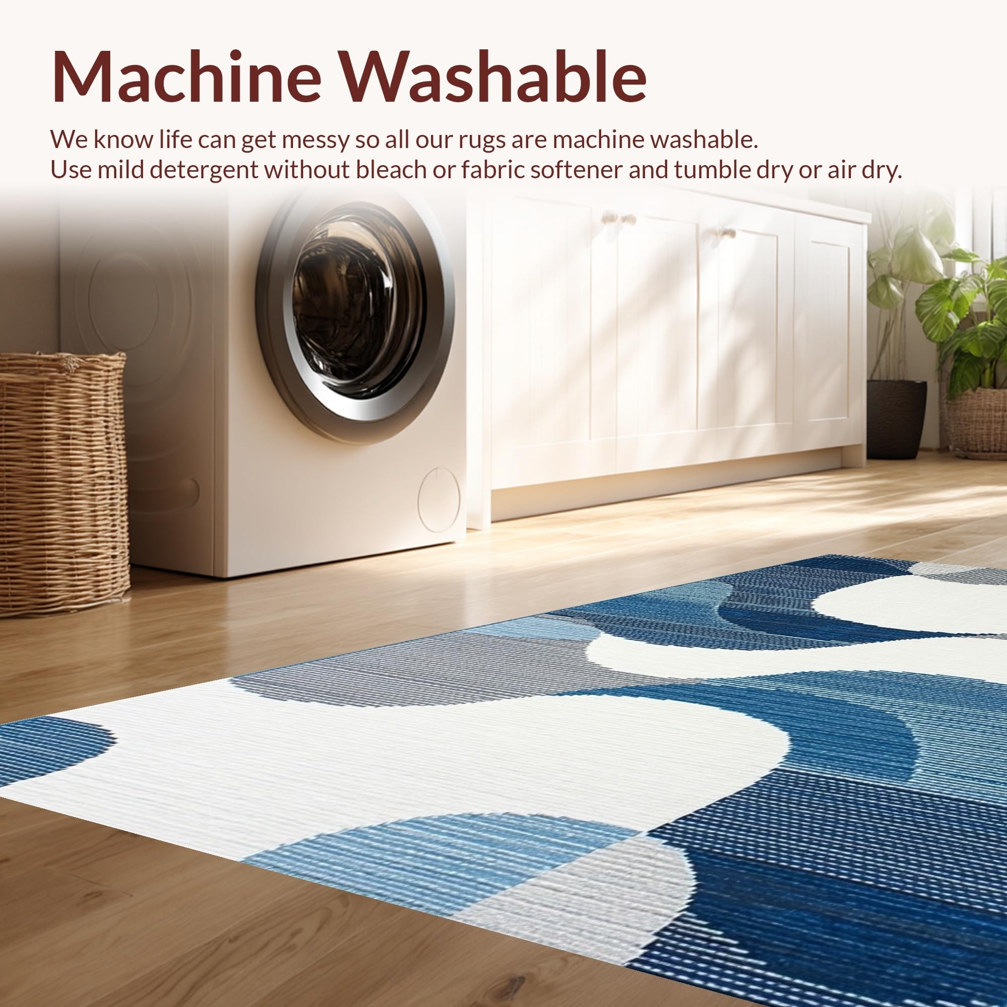 - Machine Washable: Our rugs can be easily thrown in the wash machine.