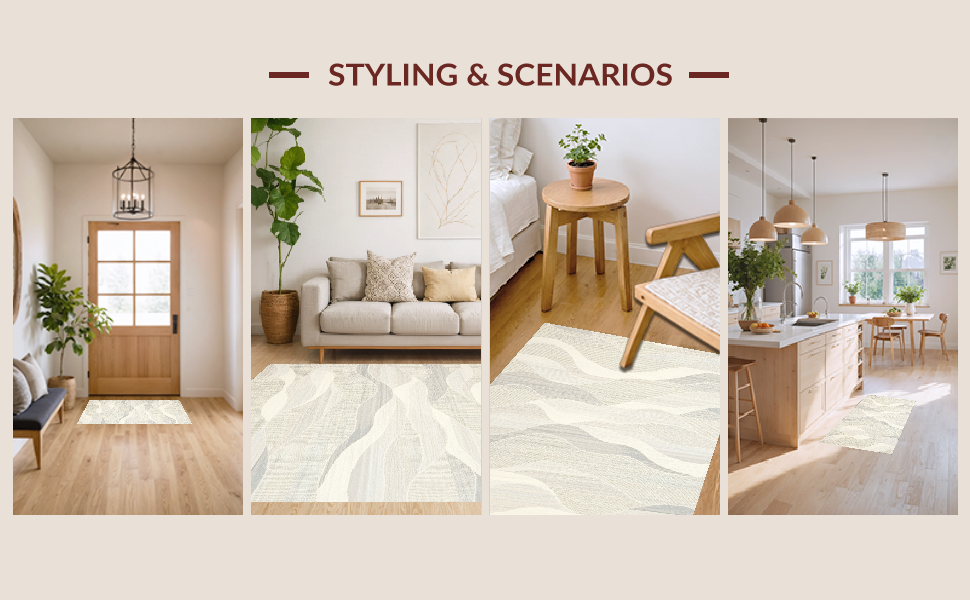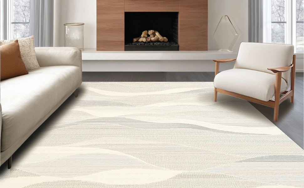 Ultra Soft Area Rug, Non Slip, Stain Resistant, Washable Area Rugs for Living Room, Bedroom, Elegant High-Low Textured Motif(Beige) Overview: