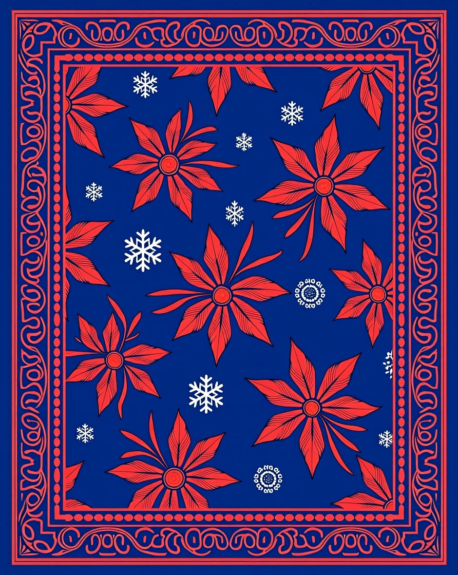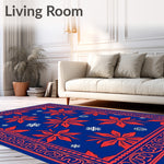 Flatwoven High Traffic Area Rug, Elegant Holly Leaf And Berry Arrangement With Subtle Snowflake Embellishments, Non Slip, Stain Resistant, Washable Area Rugs for Living Room, Bedroom (Blue) Overview: