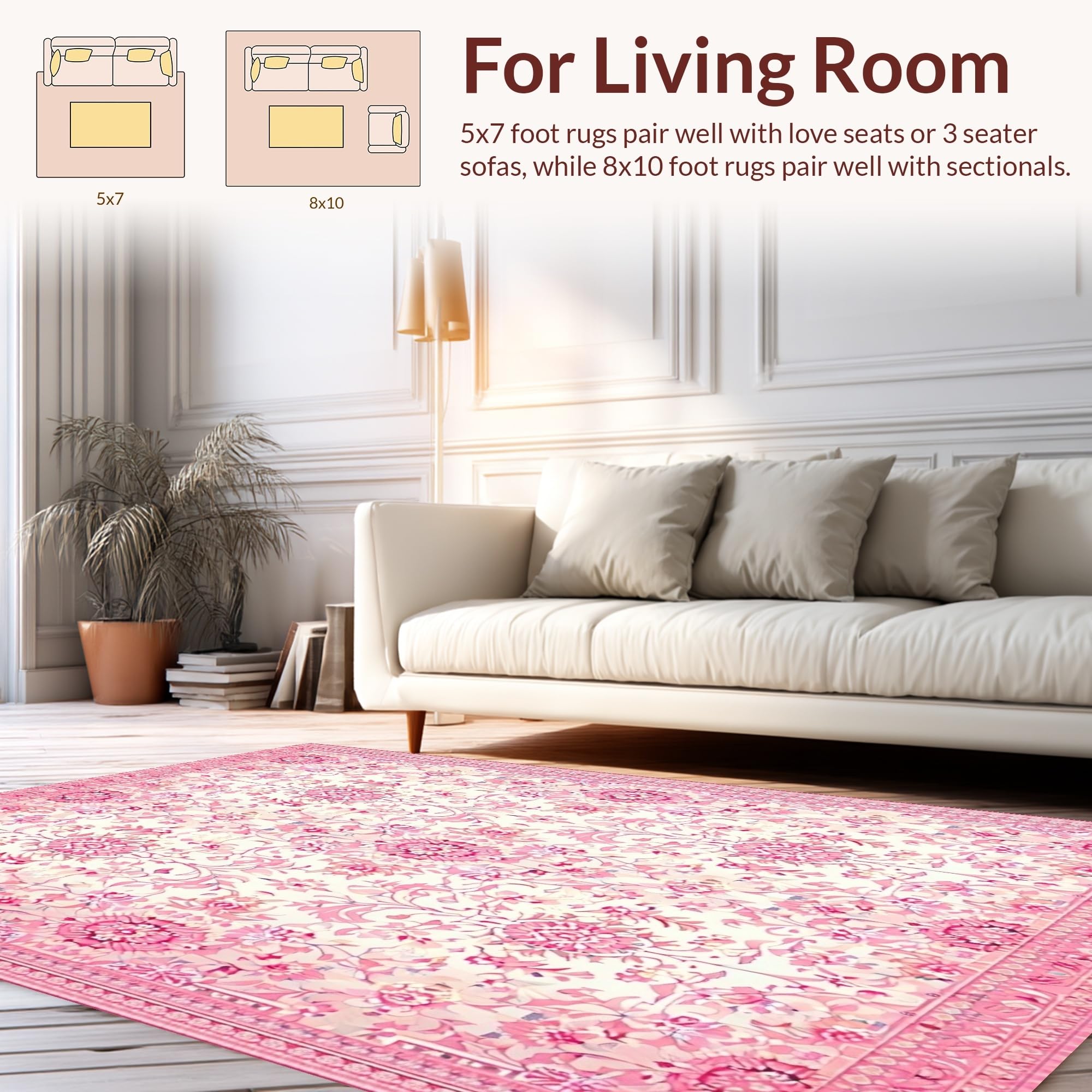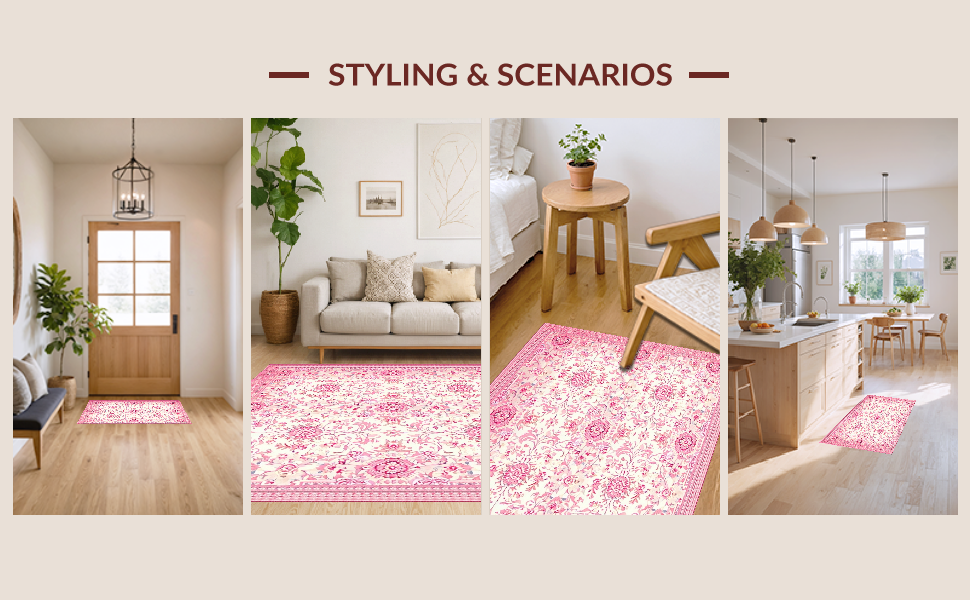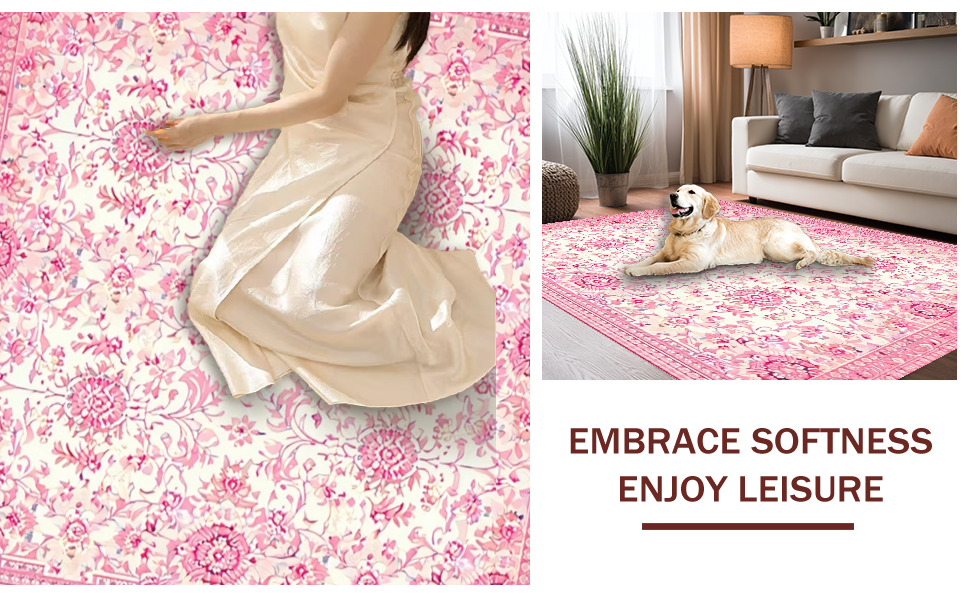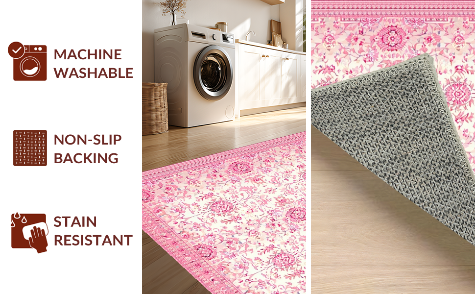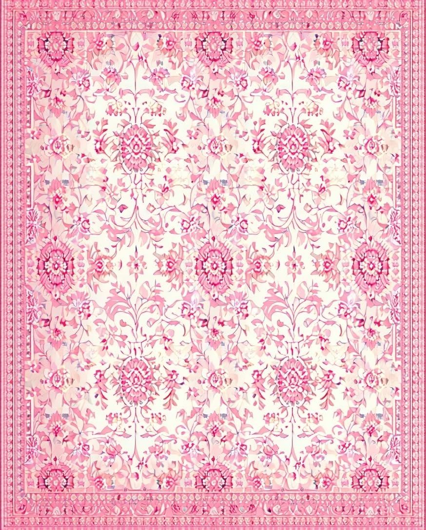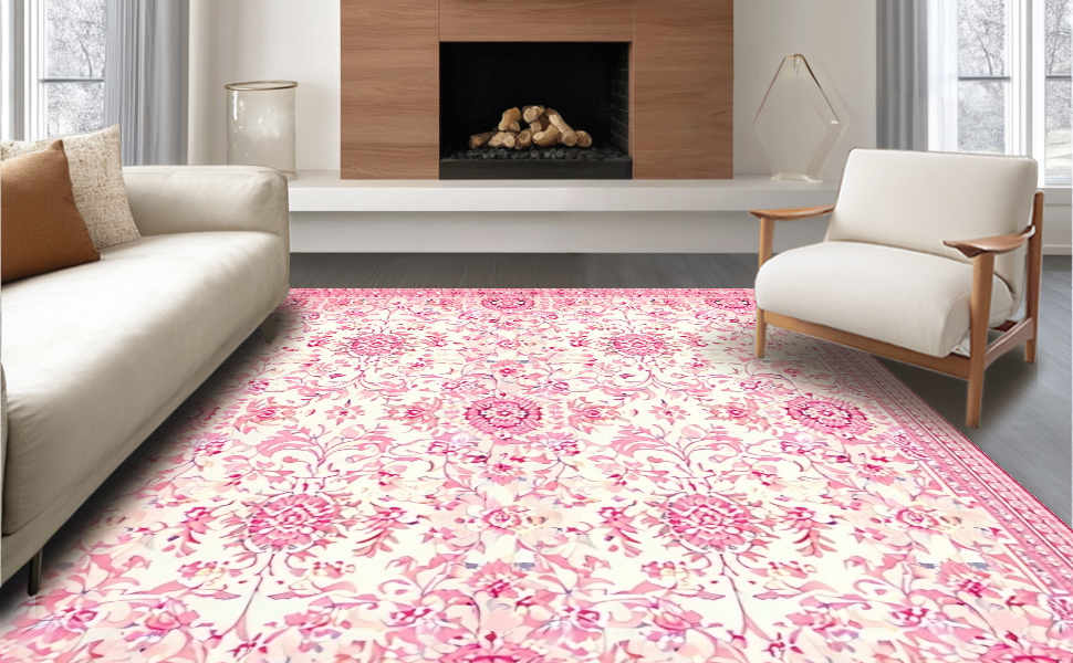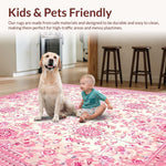 Ultra Soft Area Rug, Non Slip, Stain Resistant, Washable Area Rugs for Living Room, Bedroom, Elegant Honeycomb Vintage Design(Pink) Overview: