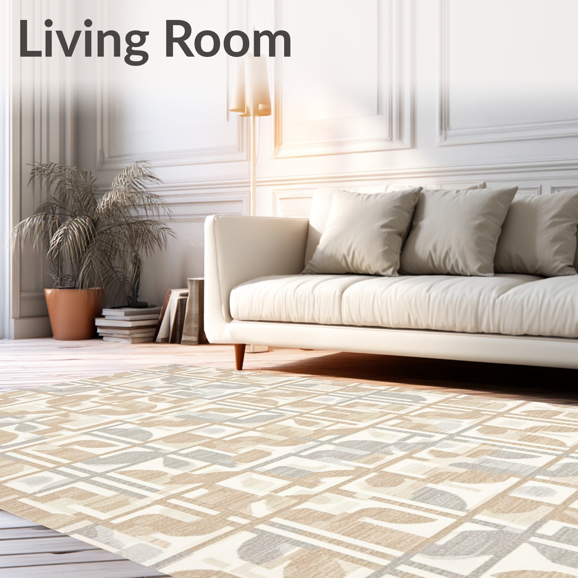 Ultra Soft Area Rug, Non Slip, Stain Resistant, Washable Area Rugs for Living Room, Bedroom, Elegant Indoor Area with Intricate Geometric Designs in Beige Tones(Beige) Overview: