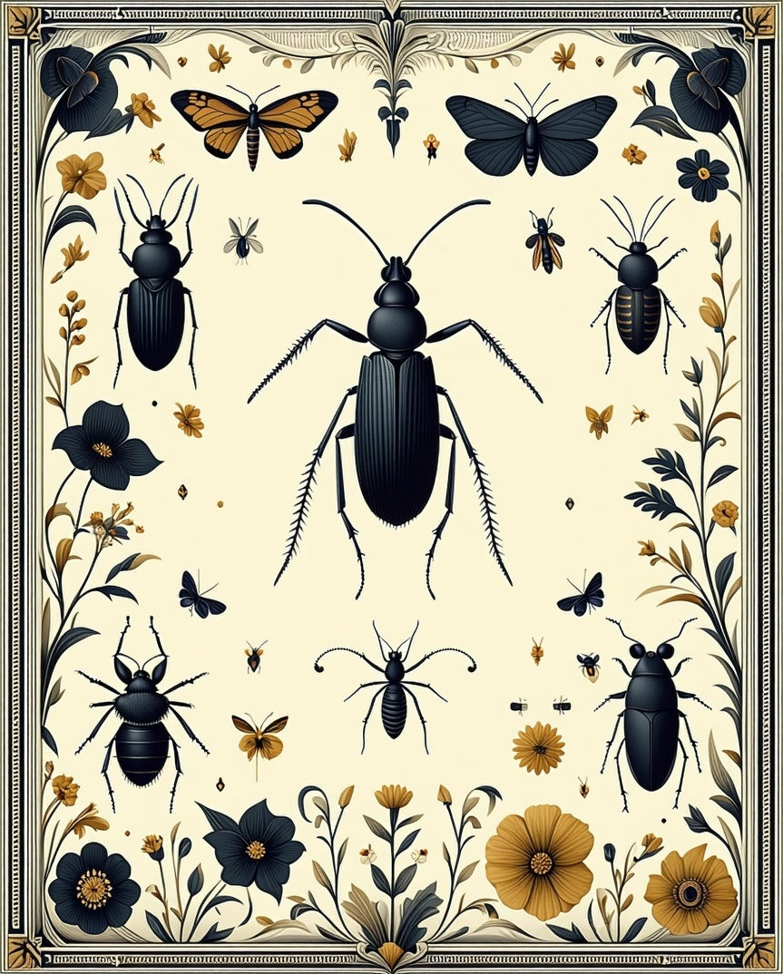 Elegant Insect Artistry with Sophisticated Floral Medallions(Ivory)