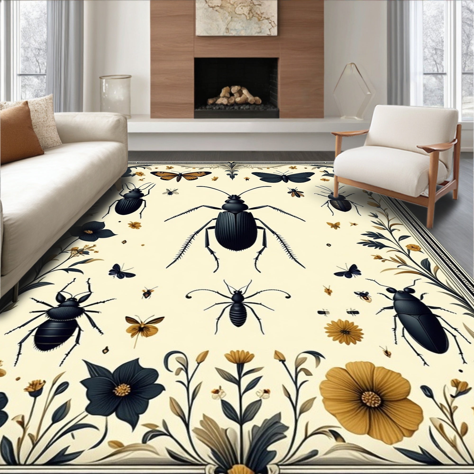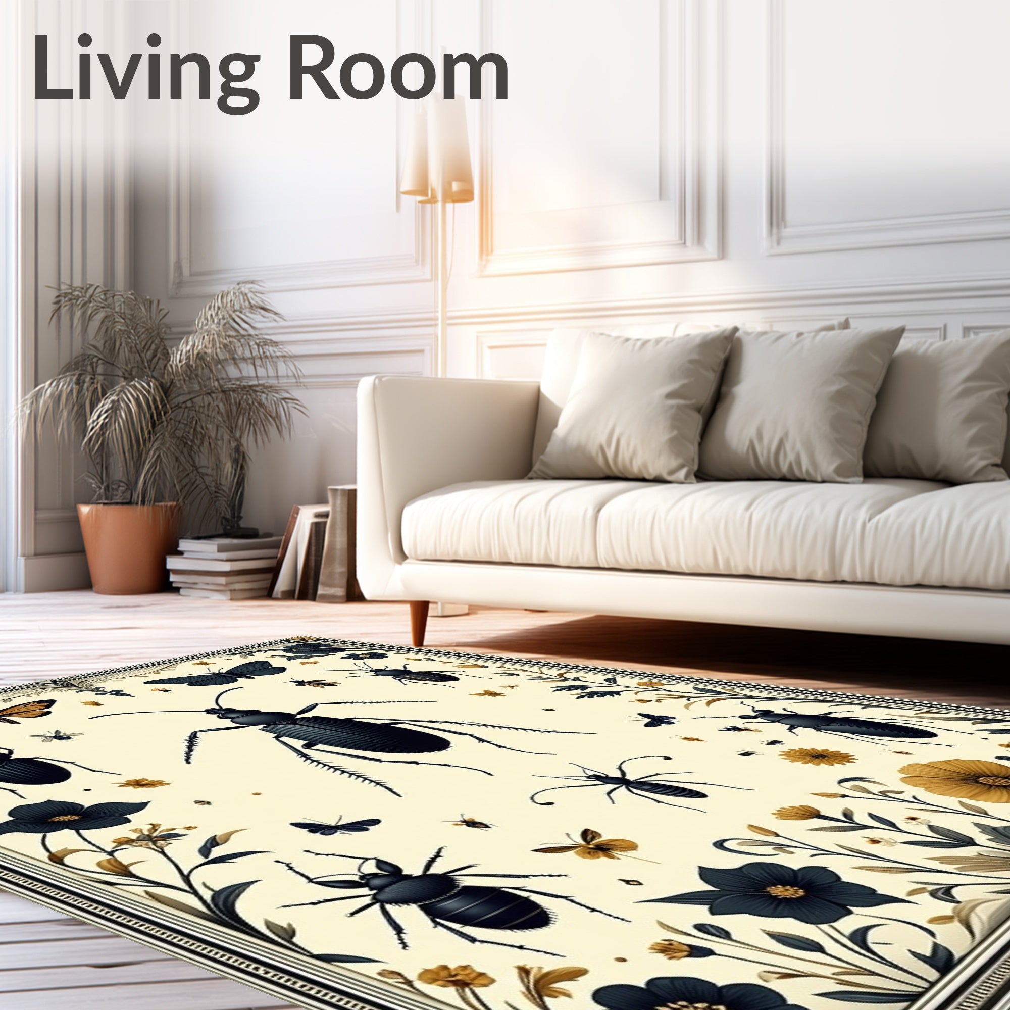 Flatwoven High Traffic Area Rug, Elegant Insect Artistry with Sophisticated Floral Medallions, Non Slip, Stain Resistant, Washable Area Rugs for Living Room, Bedroom (Ivory) Overview: