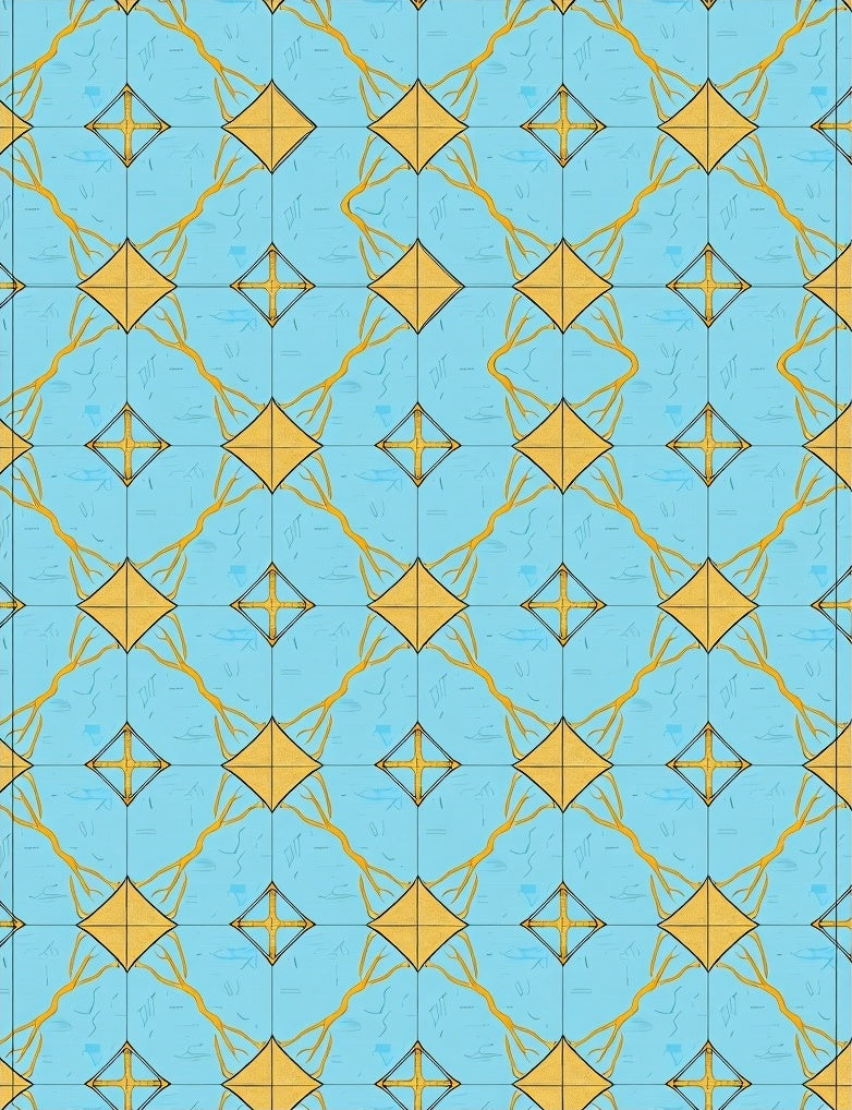 Elegant Interlocking Marble Motifs Highlighted By Gleaming Gold Highlights(Blue)
