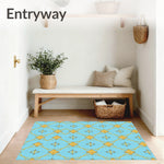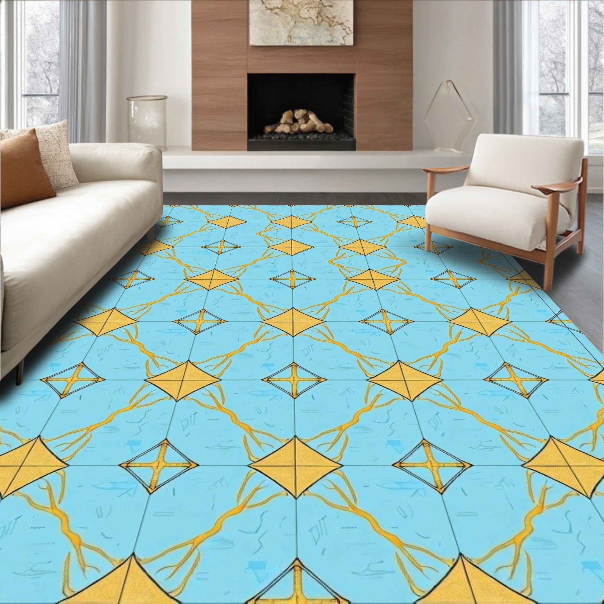 Ultra Soft Area Rug, Non Slip, Stain Resistant, Washable Area Rugs for Living Room, Bedroom, Elegant Interlocking Marble Motifs Highlighted By Gleaming Gold Highlights(Blue) Overview: