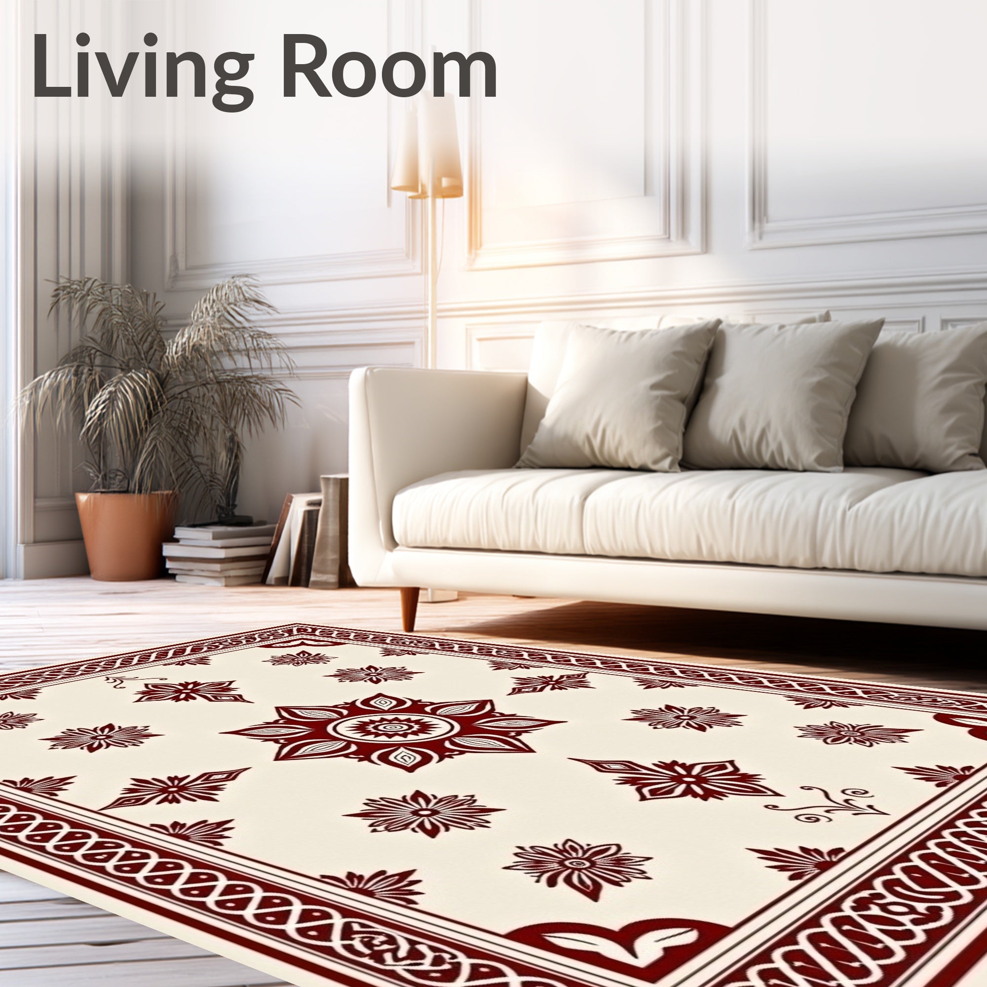 Ultra Soft Area Rug, Non Slip, Stain Resistant, Washable Area Rugs for Living Room, Bedroom, Elegant Interlocking Medallion Heritage Collection(Ivory) Overview: