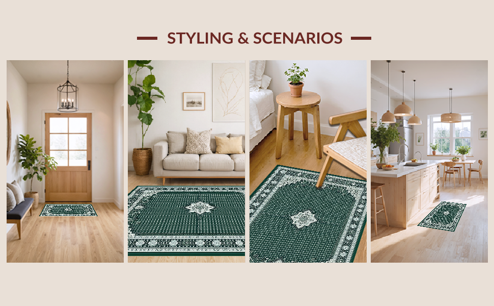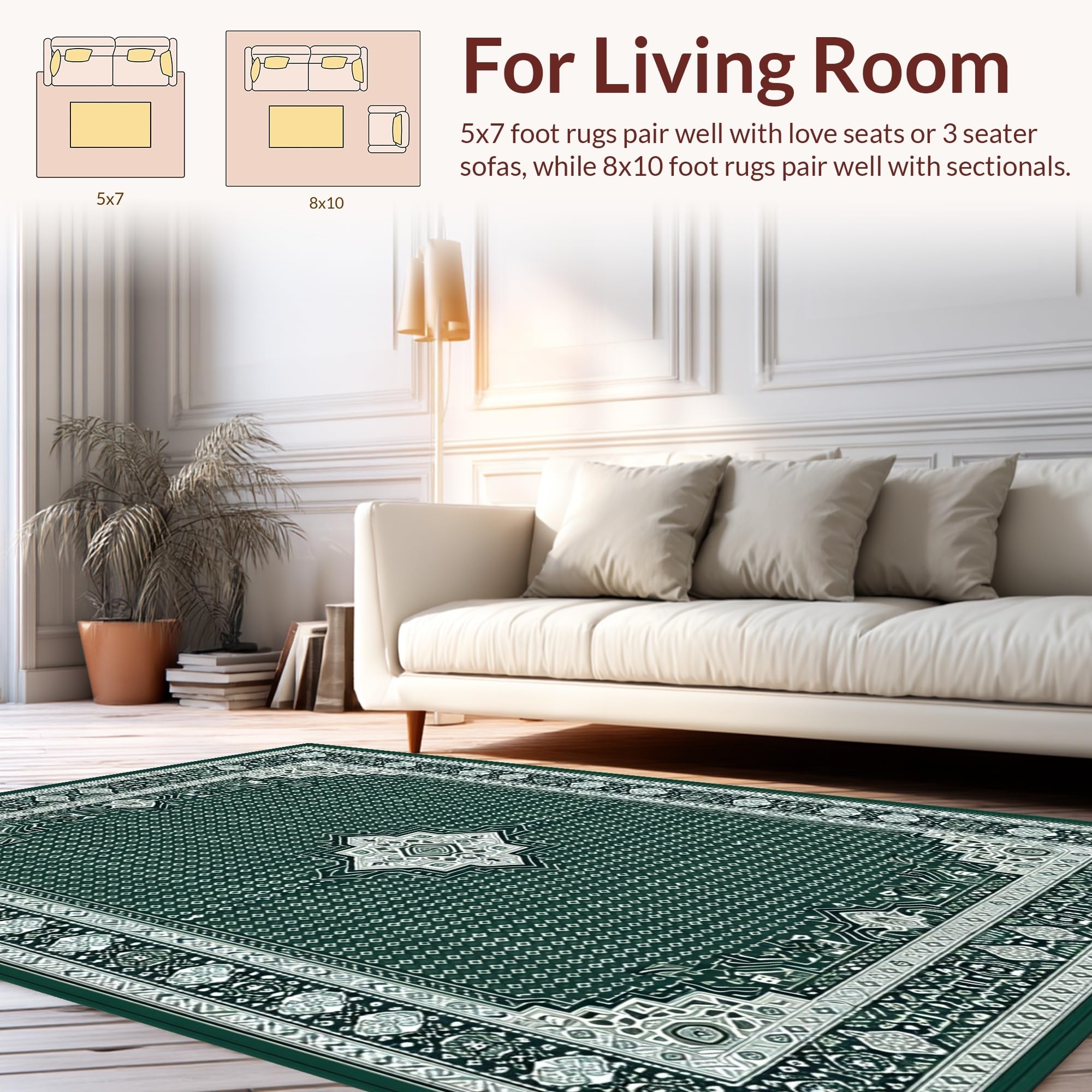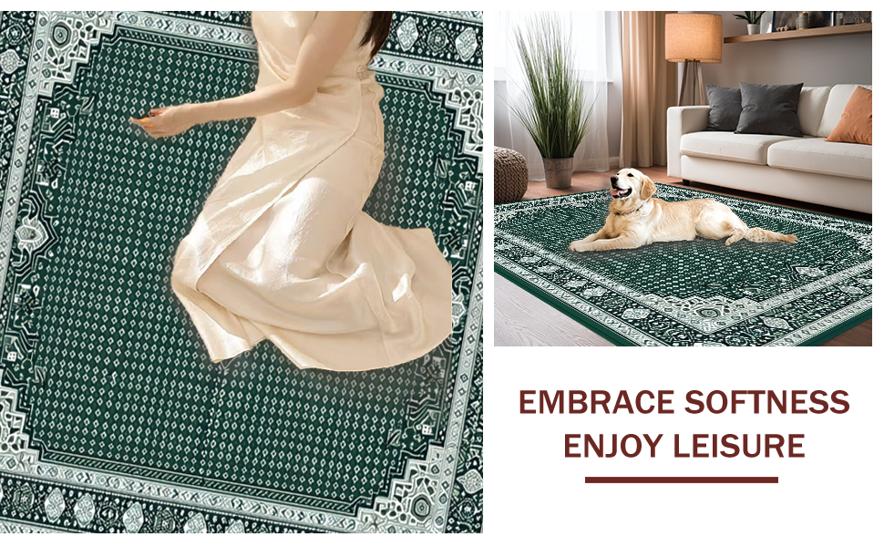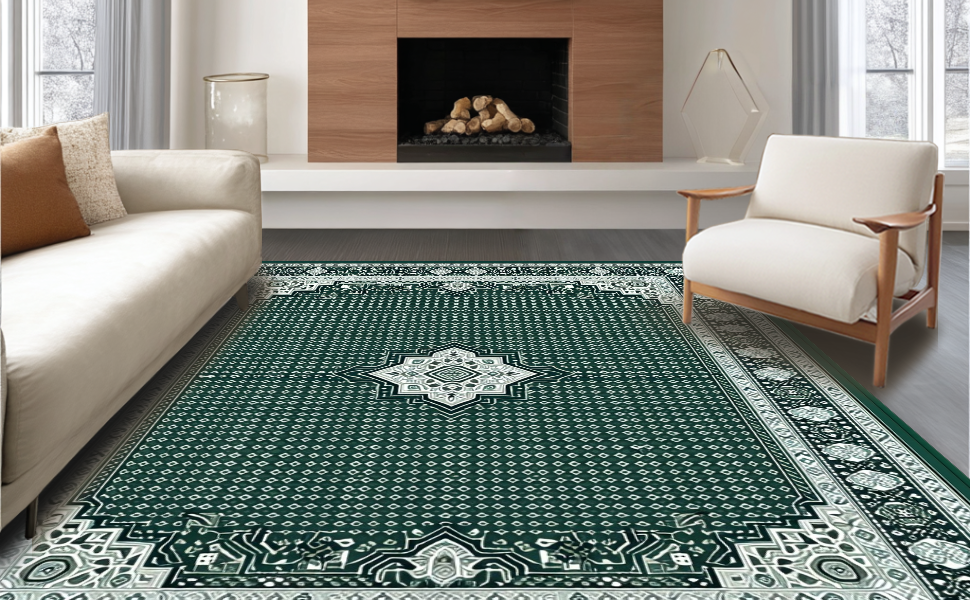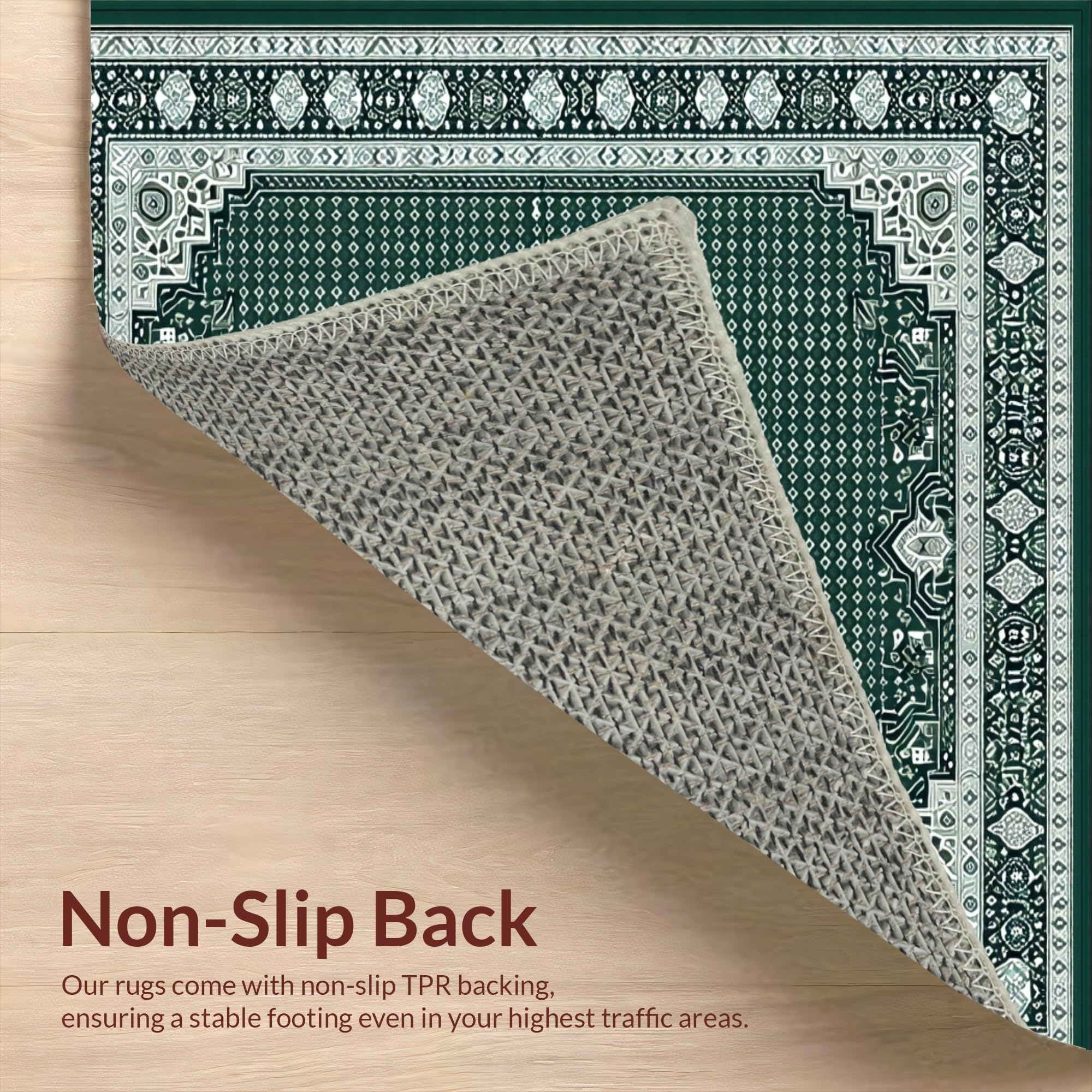 Ultra Soft Area Rug, Non Slip, Stain Resistant, Washable Area Rugs for Living Room, Bedroom, Elegant Islamic Geometric Motif(Green) Overview: