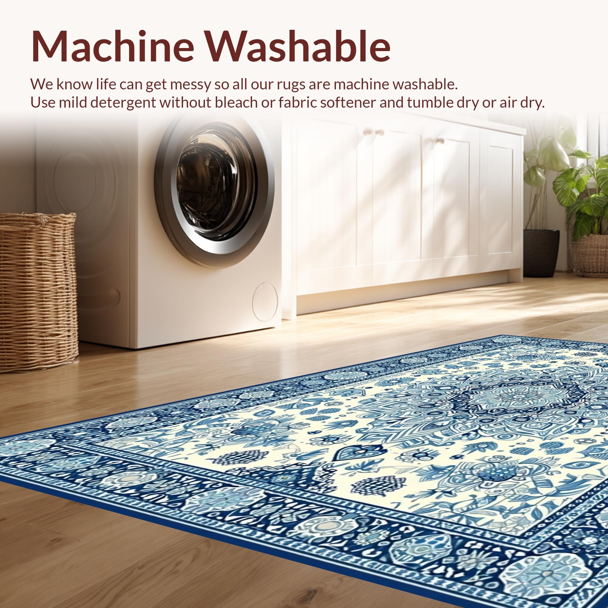 - Machine Washable: Our rugs can be easily thrown in the wash machine.