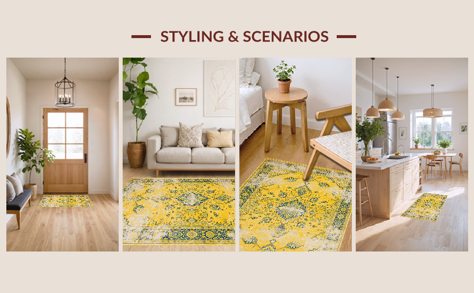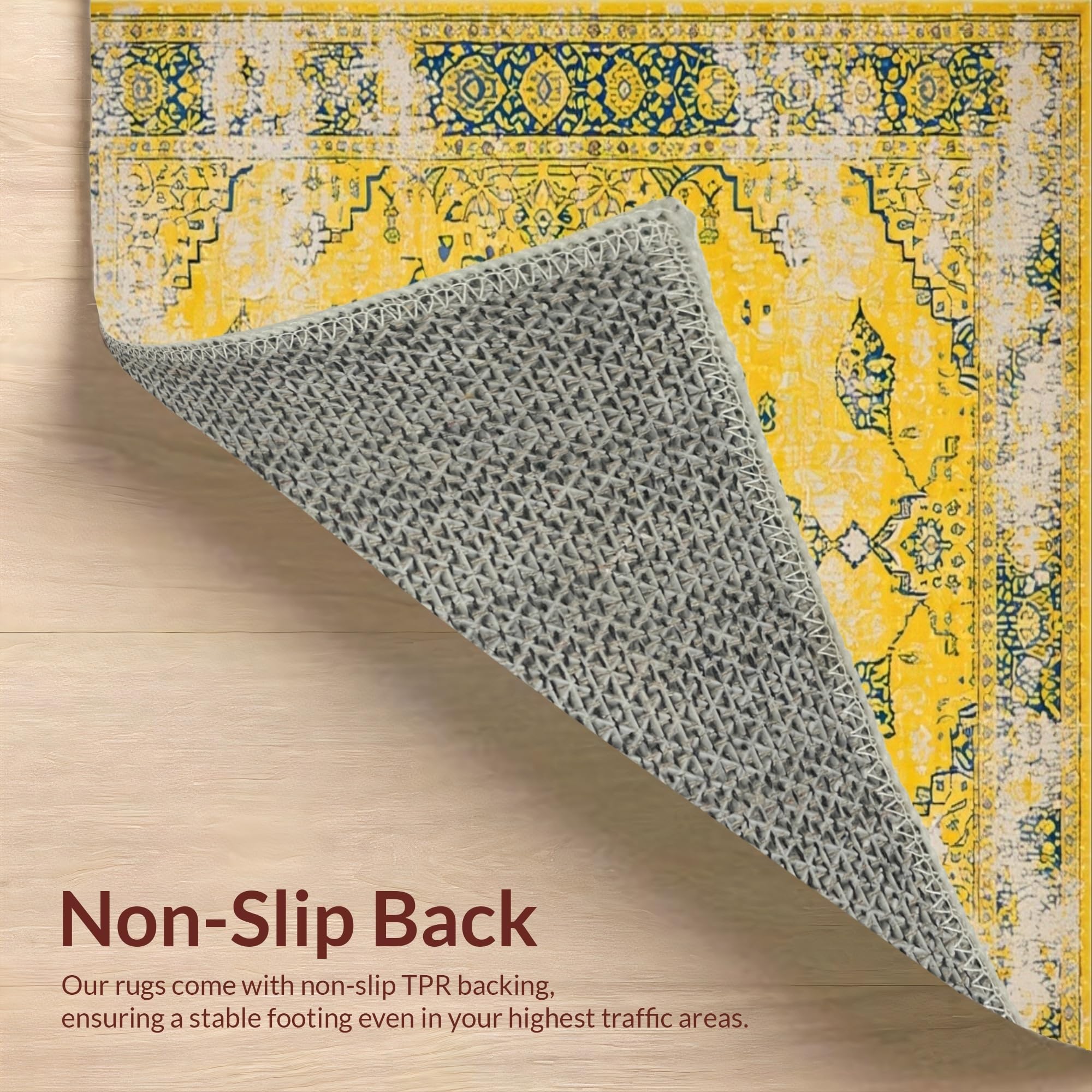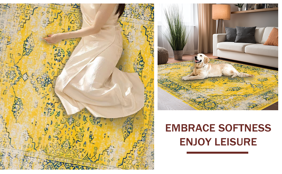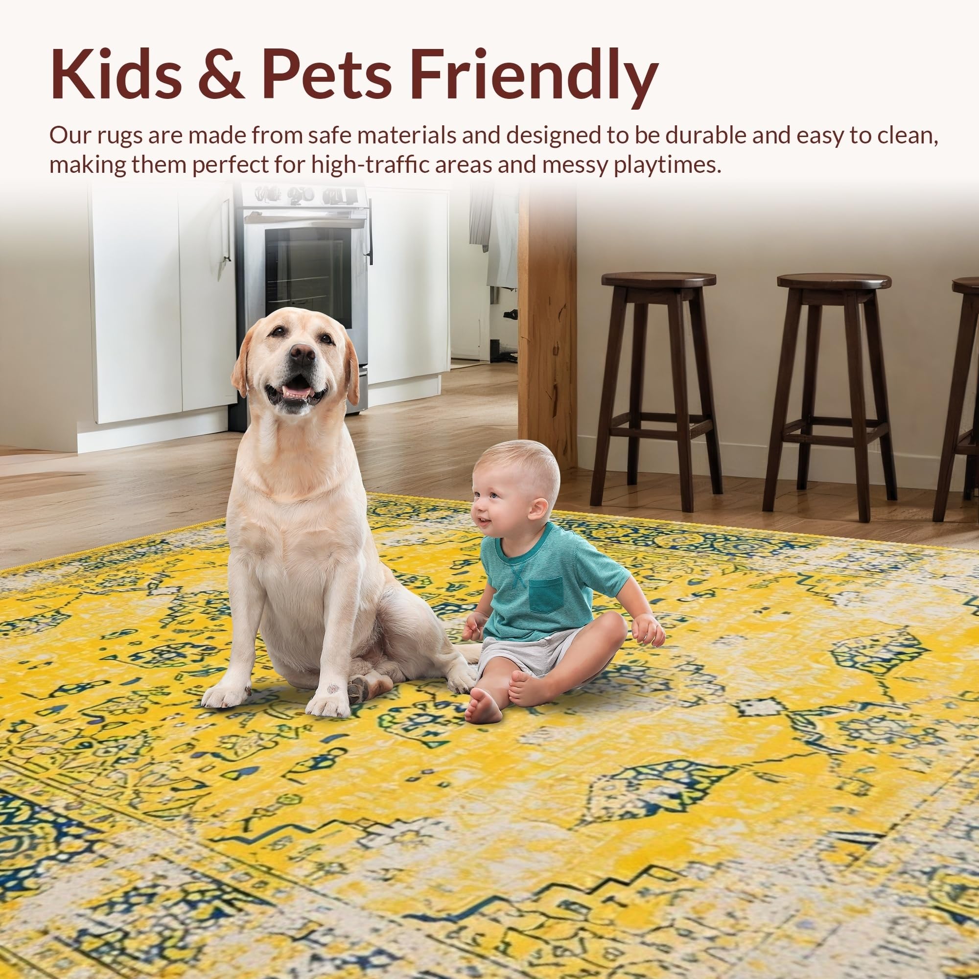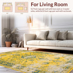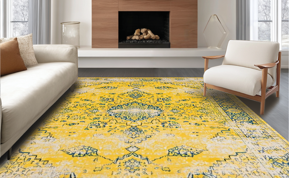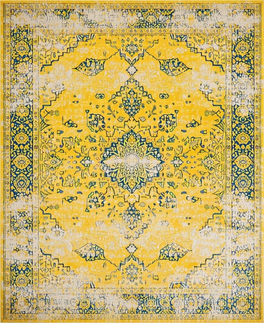 Ultra Soft Area Rug, Non Slip, Stain Resistant, Washable Area Rugs for Living Room, Bedroom, Elegant Ivory Geometric Pattern(Yellow) Overview: