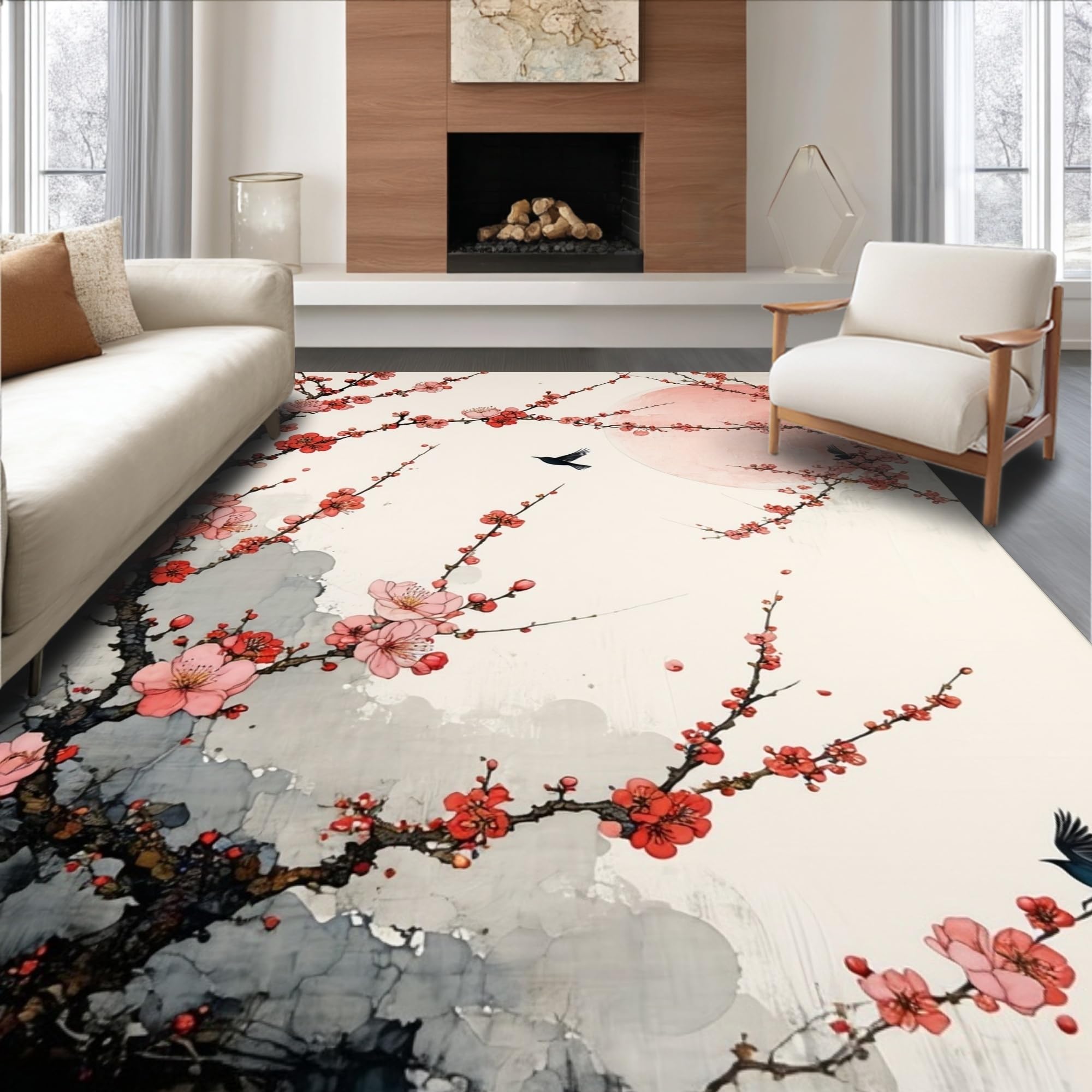 Ultra Soft Area Rug, Non Slip, Stain Resistant, Washable Area Rugs for Living Room, Bedroom, Elegant Japanese Floral Cascade(Red) Overview: