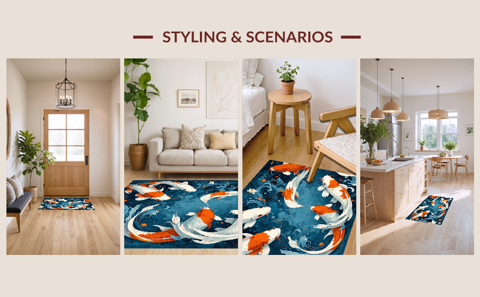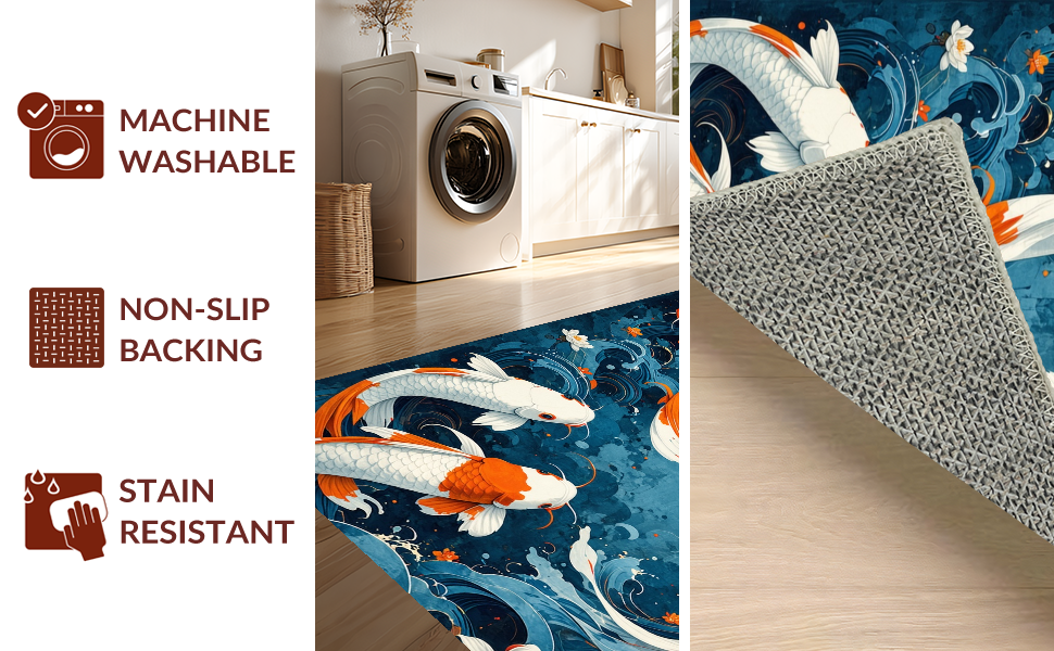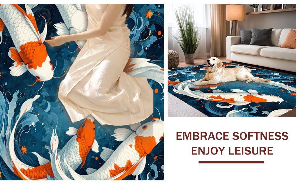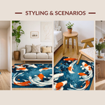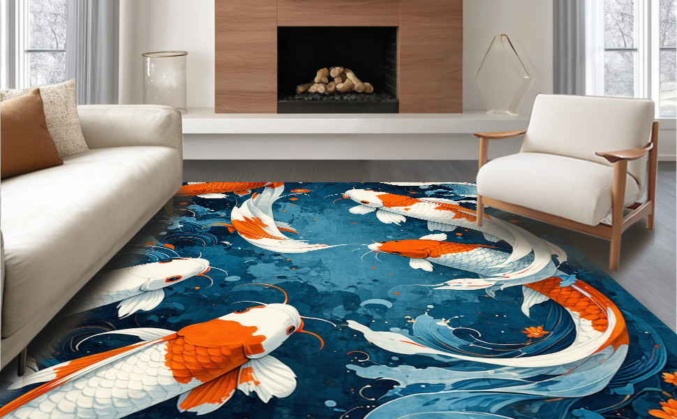 Ultra Soft Area Rug, Non Slip, Stain Resistant, Washable Area Rugs for Living Room, Bedroom, Elegant Japanese Water Scene(White) Overview: