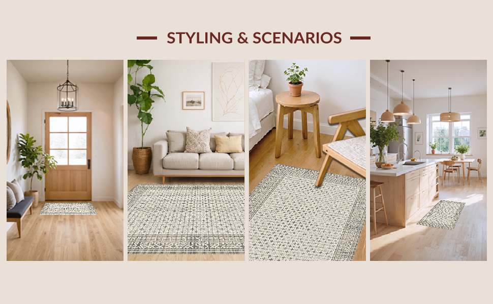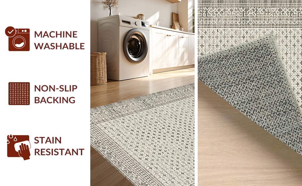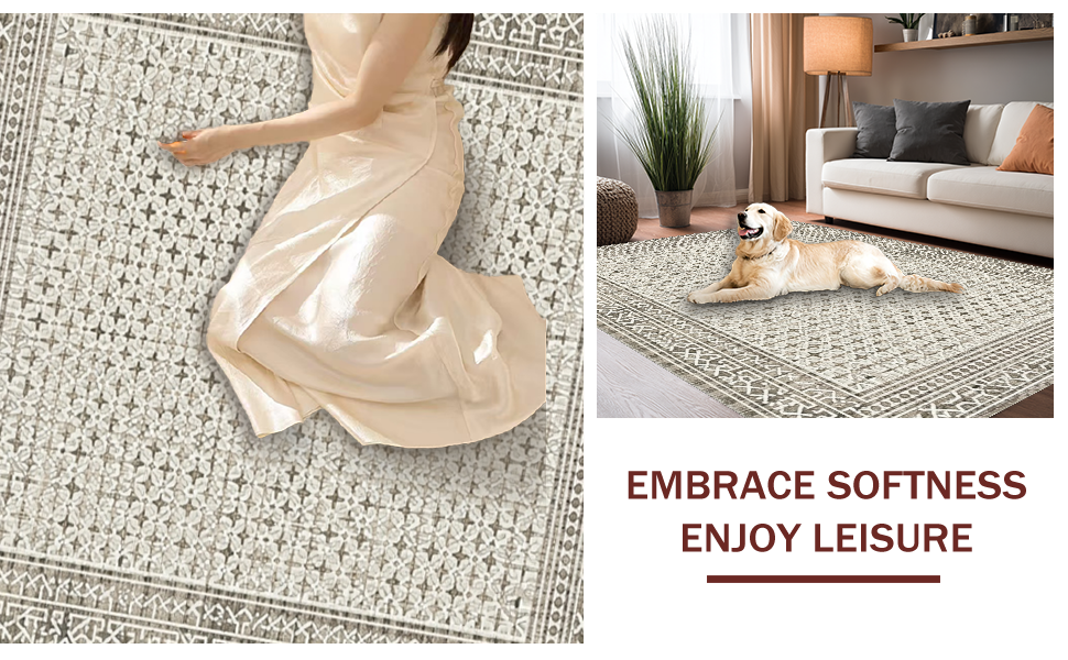Ultra Soft Area Rug, Non Slip, Stain Resistant, Washable Area Rugs for Living Room, Bedroom, Elegant Lattice Design Elements(Beige) Overview: