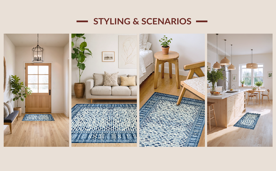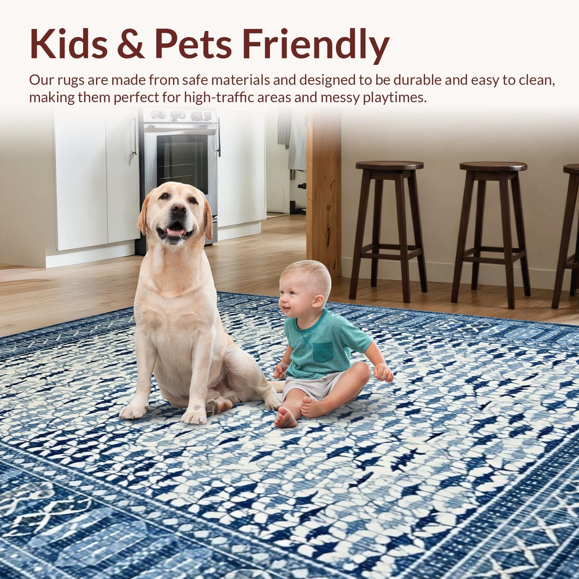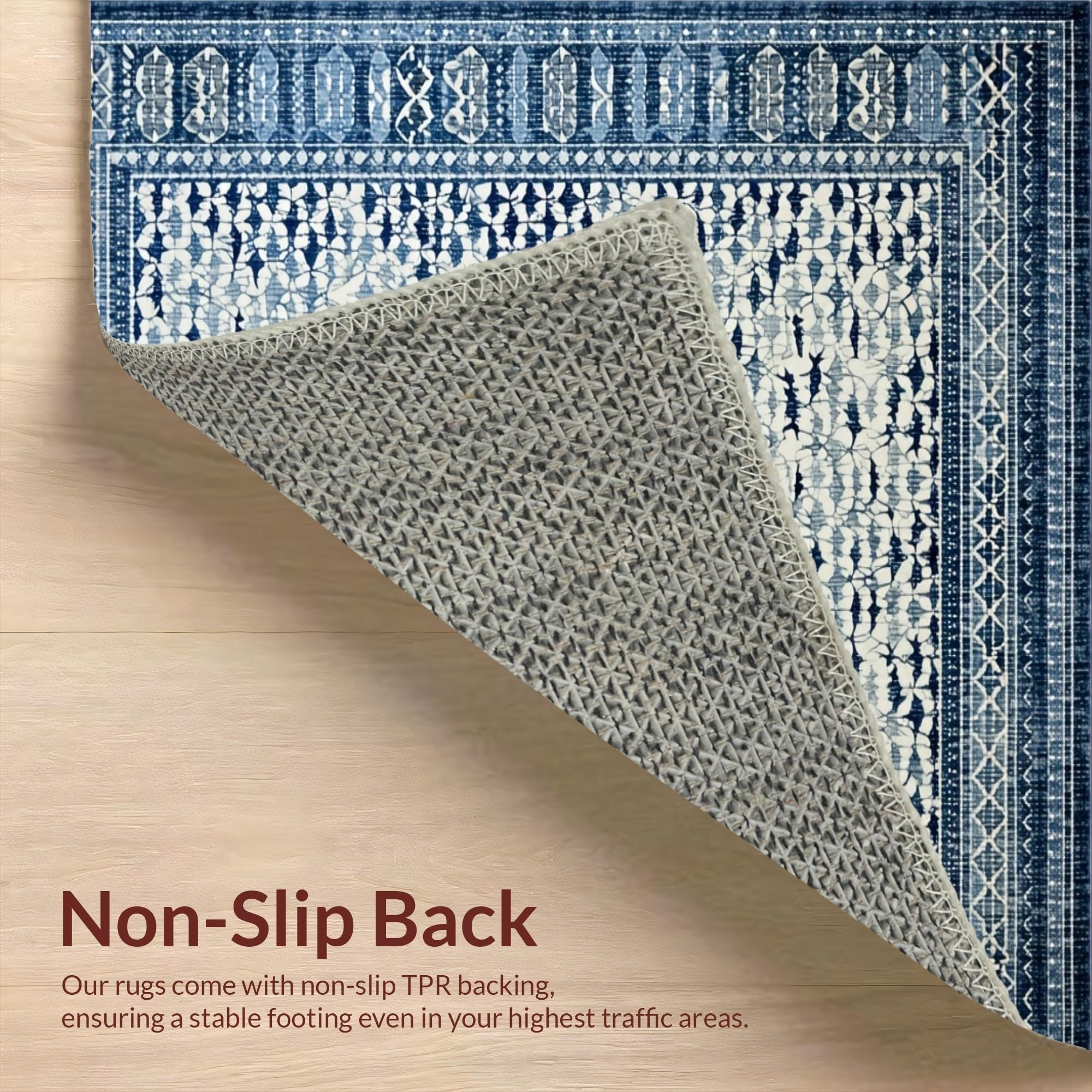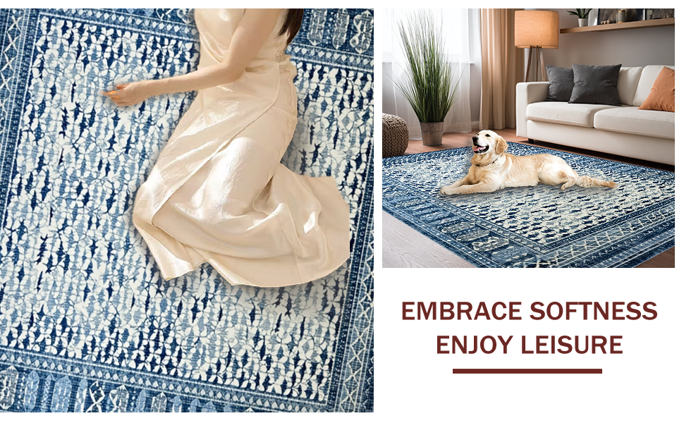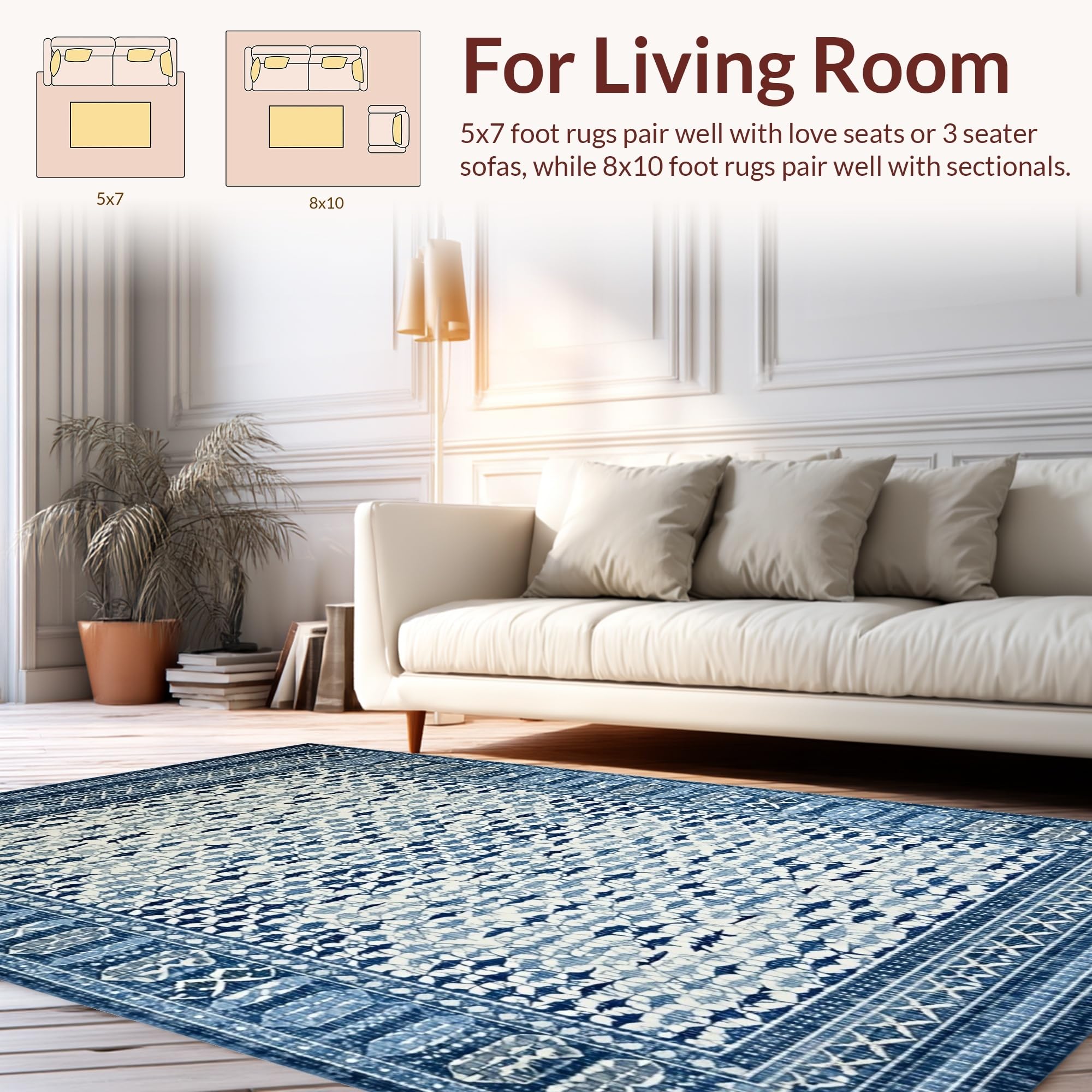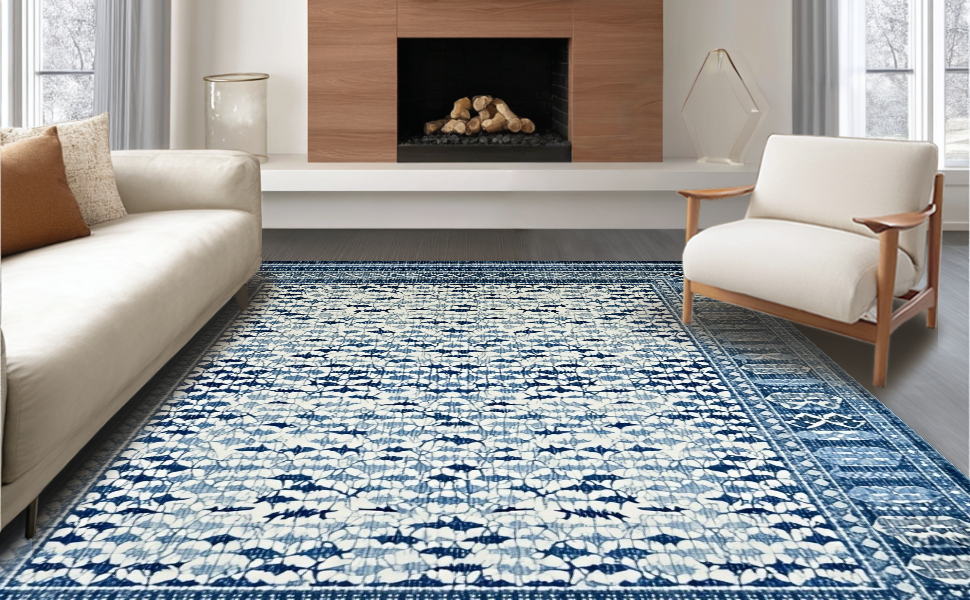 Ultra Soft Area Rug, Non Slip, Stain Resistant, Washable Area Rugs for Living Room, Bedroom, Elegant Lattice Design in Blue(Blue) Overview: