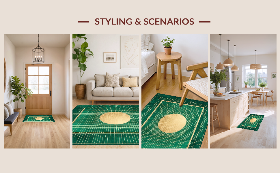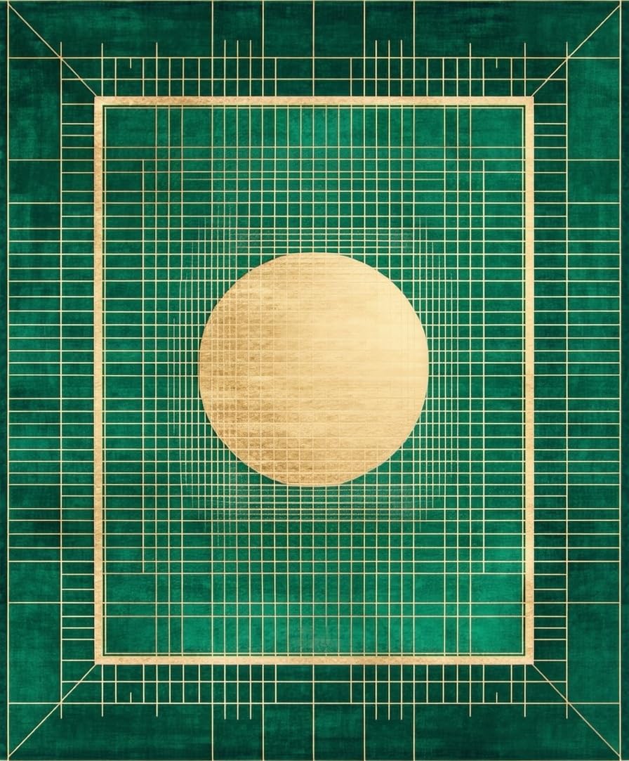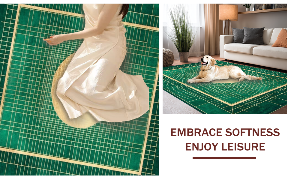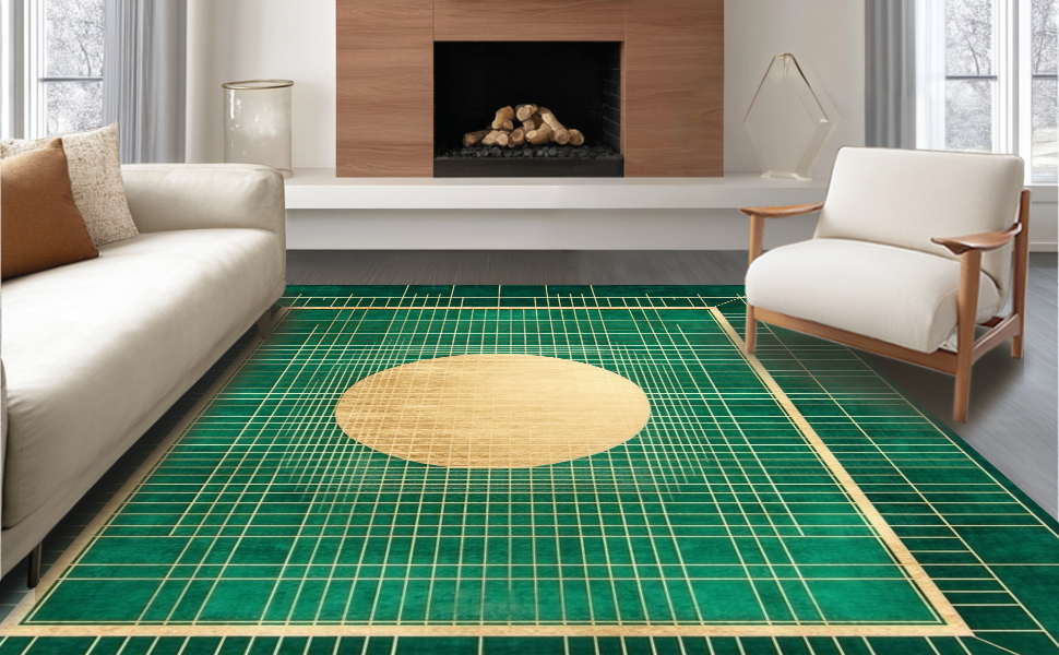 Ultra Soft Area Rug, Non Slip, Stain Resistant, Washable Area Rugs for Living Room, Bedroom, Elegant Lattice Green Palette(Green) Overview: