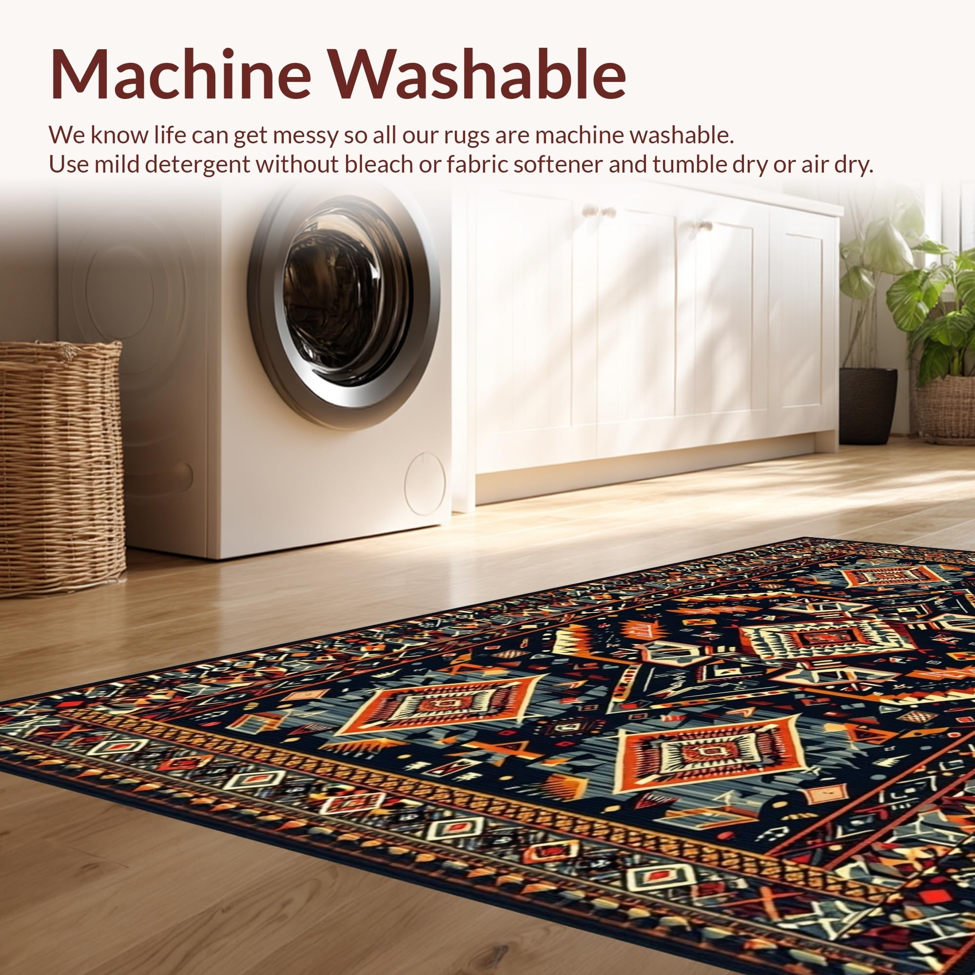 - Machine Washable: Our rugs can be easily thrown in the wash machine.