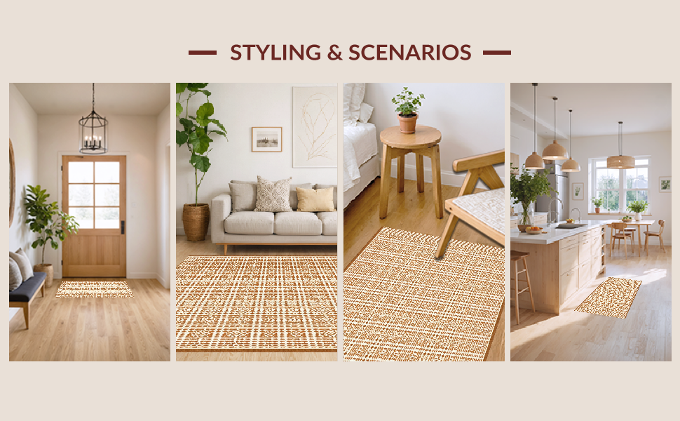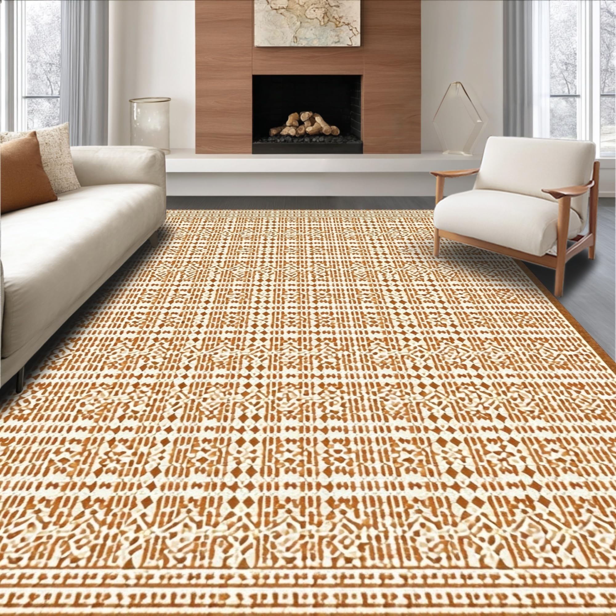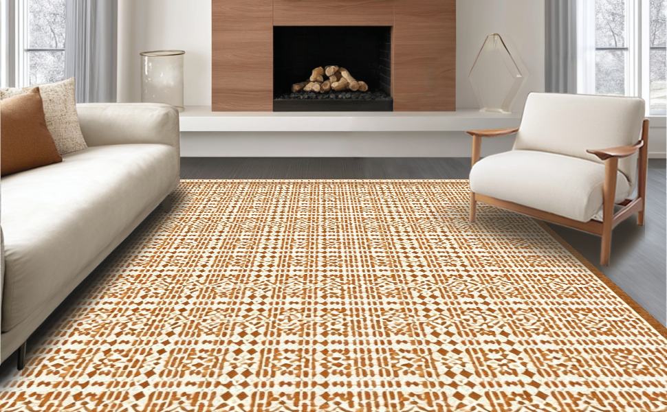 Ultra Soft Area Rug, Non Slip, Stain Resistant, Washable Area Rugs for Living Room, Bedroom, Elegant Lattice Pattern Play(Beige) Overview: