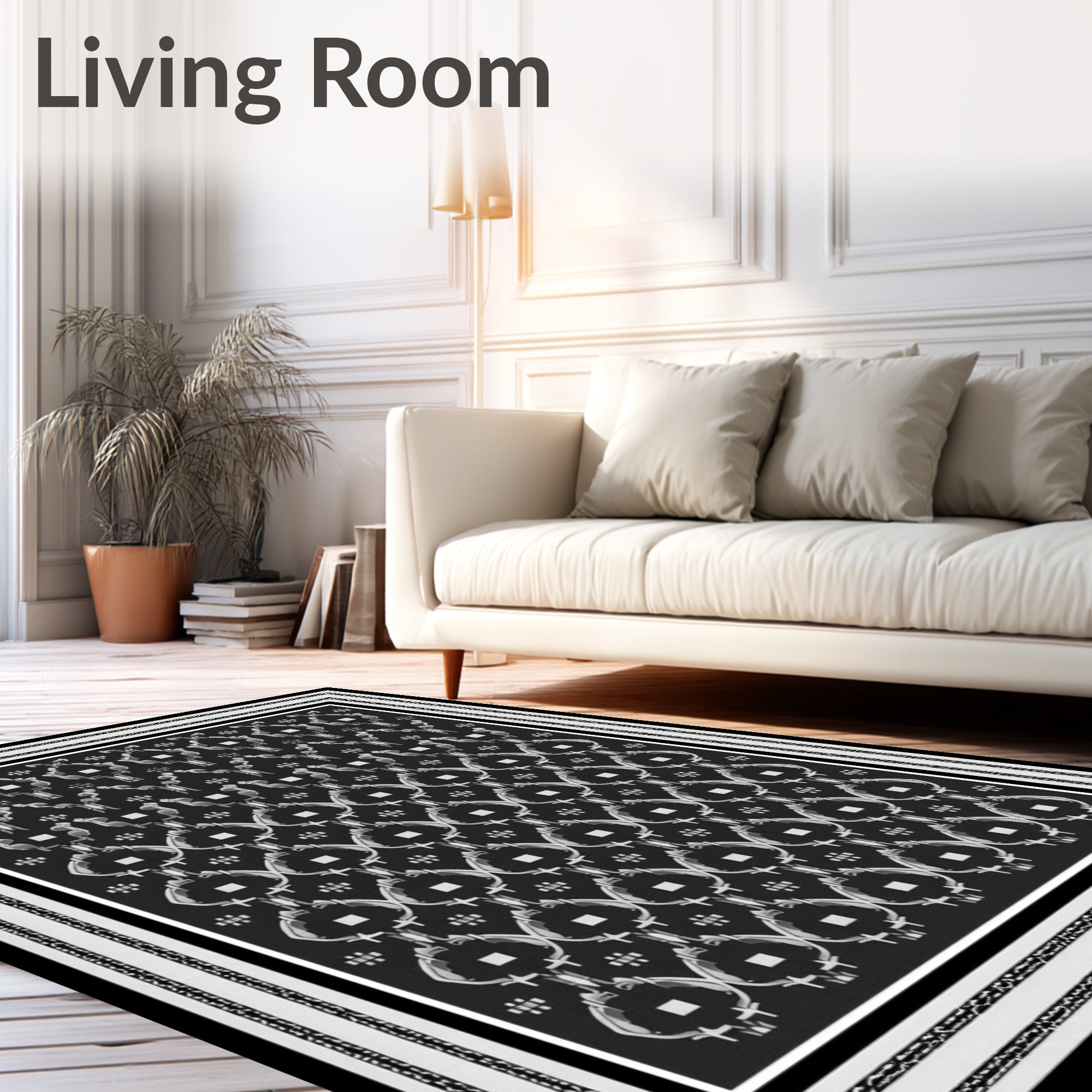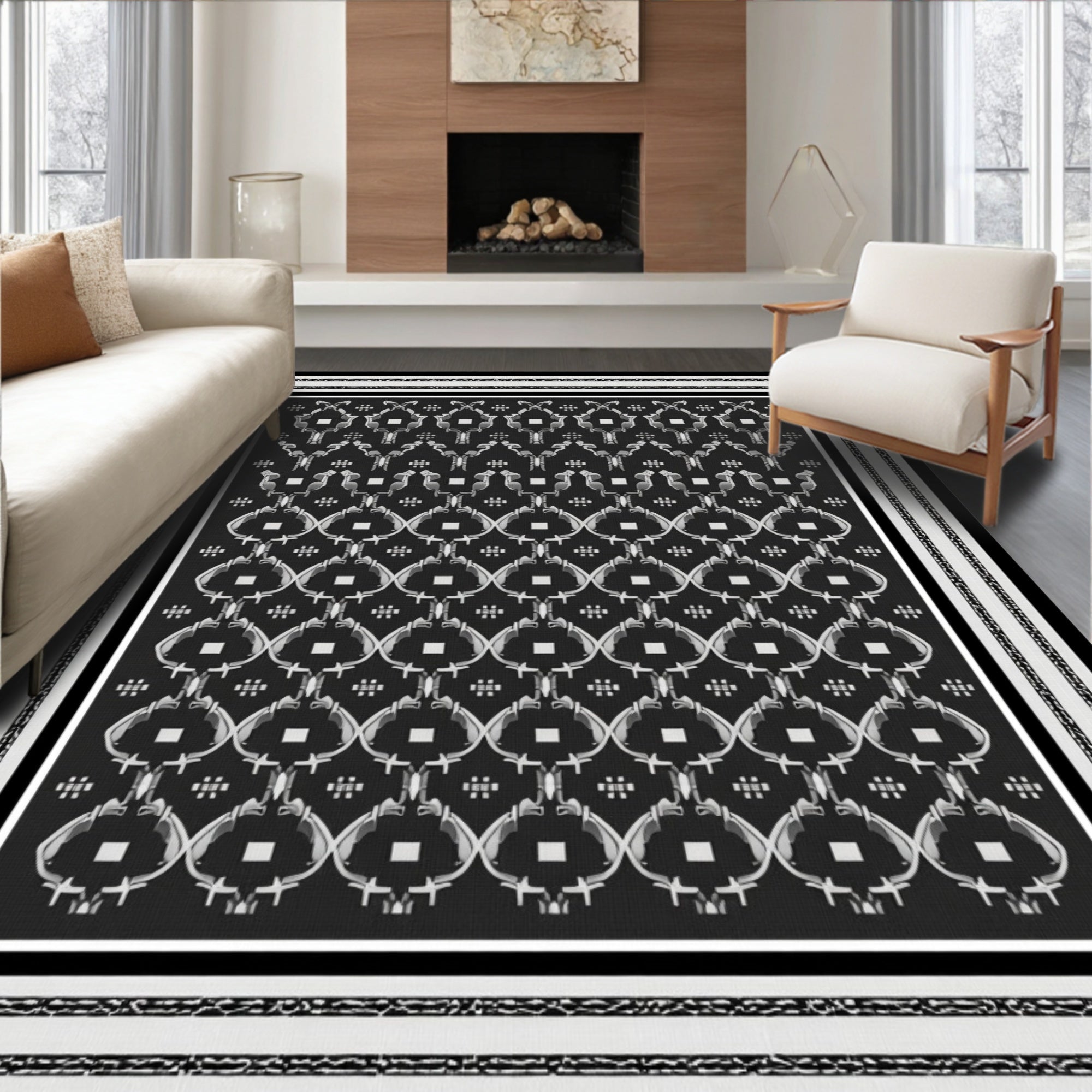 Ultra Soft Area Rug, Non Slip, Stain Resistant, Washable Area Rugs for Living Room, Bedroom, Elegant Lattice Trellis Contemporary Decorative(Black) Overview: