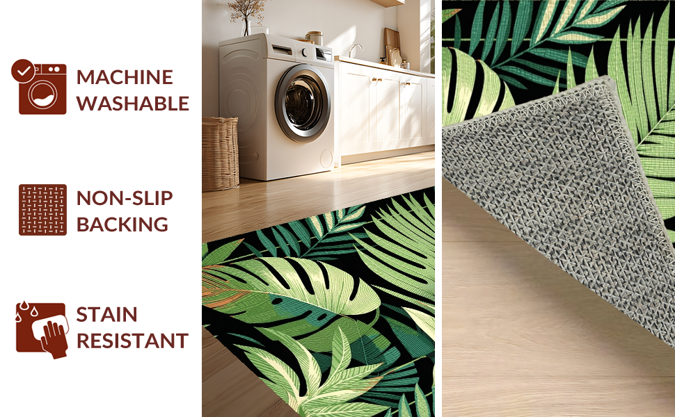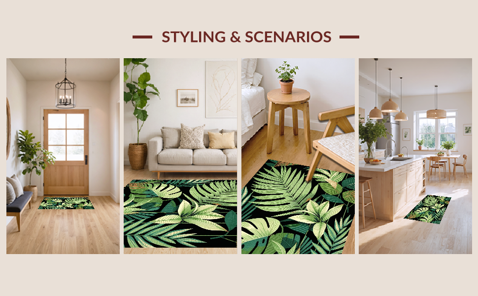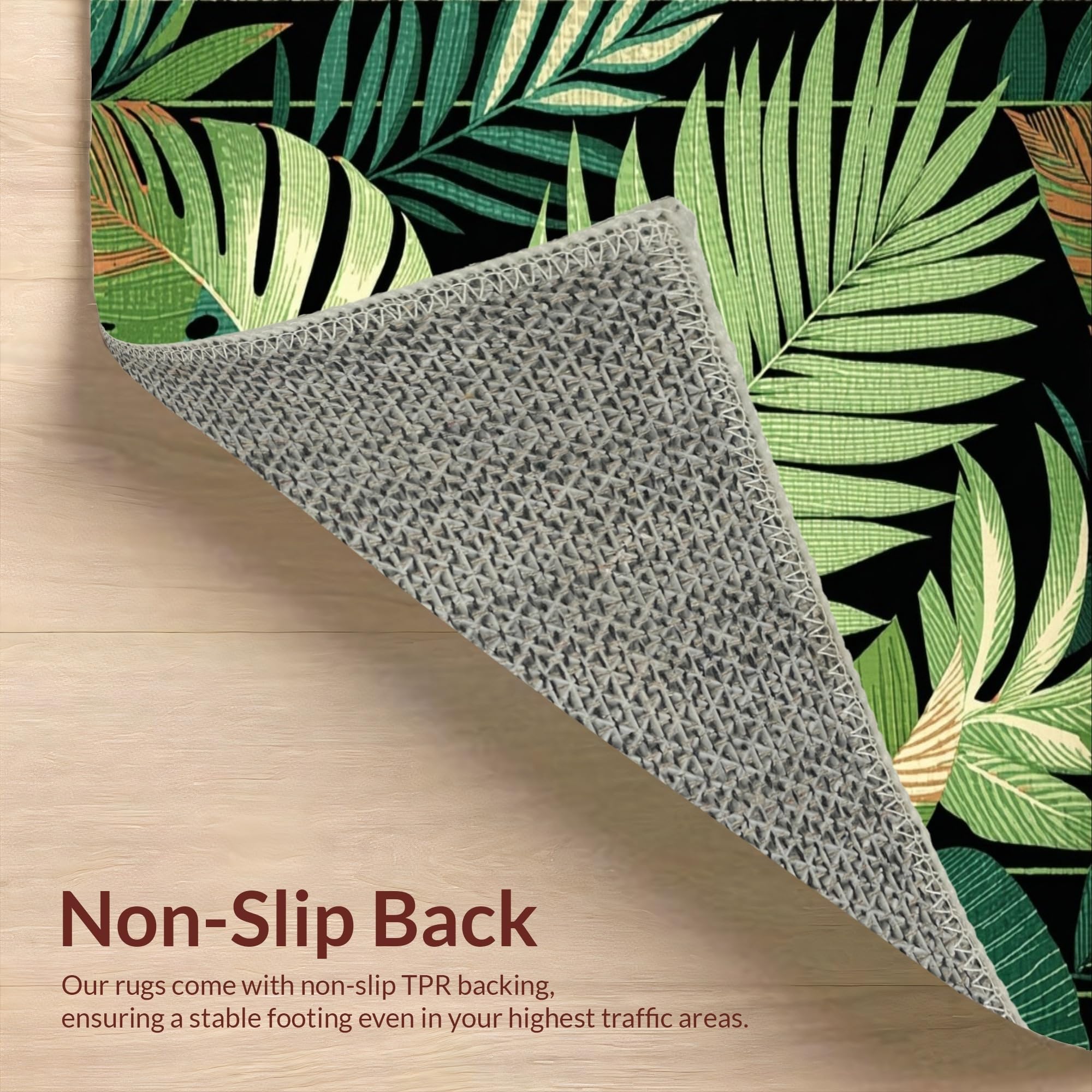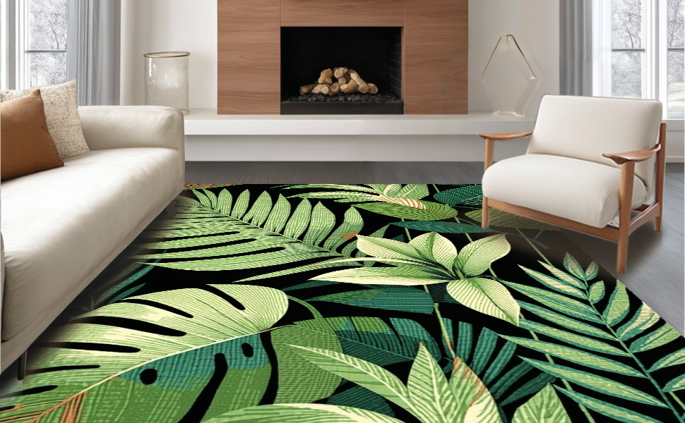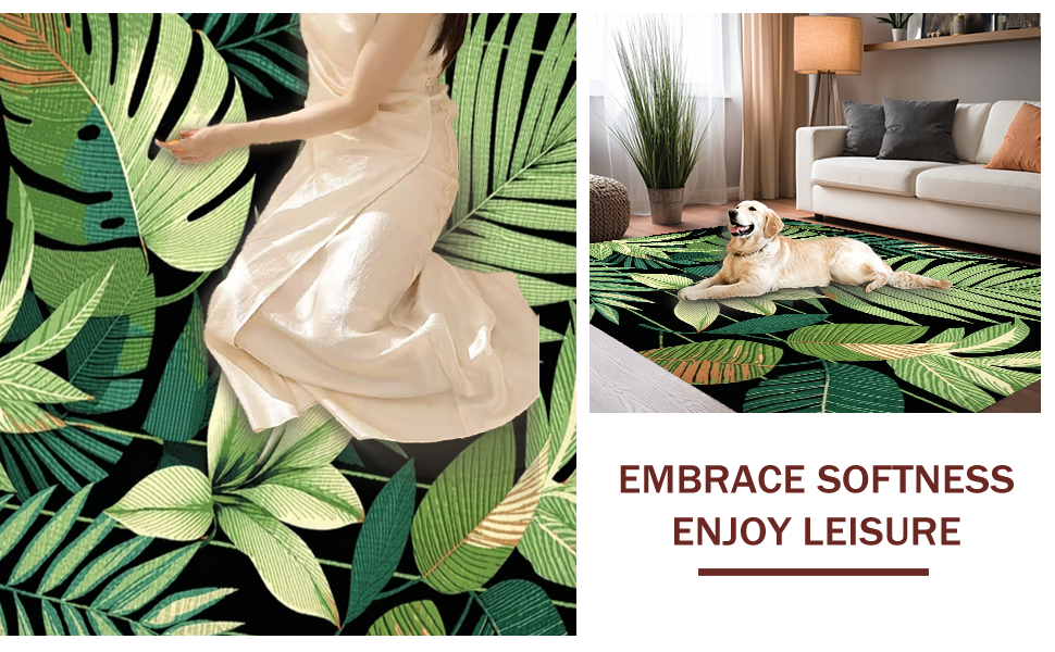Ultra Soft Area Rug, Non Slip, Stain Resistant, Washable Area Rugs for Living Room, Bedroom, Elegant Leafy Botanical Motif(Green) Overview: