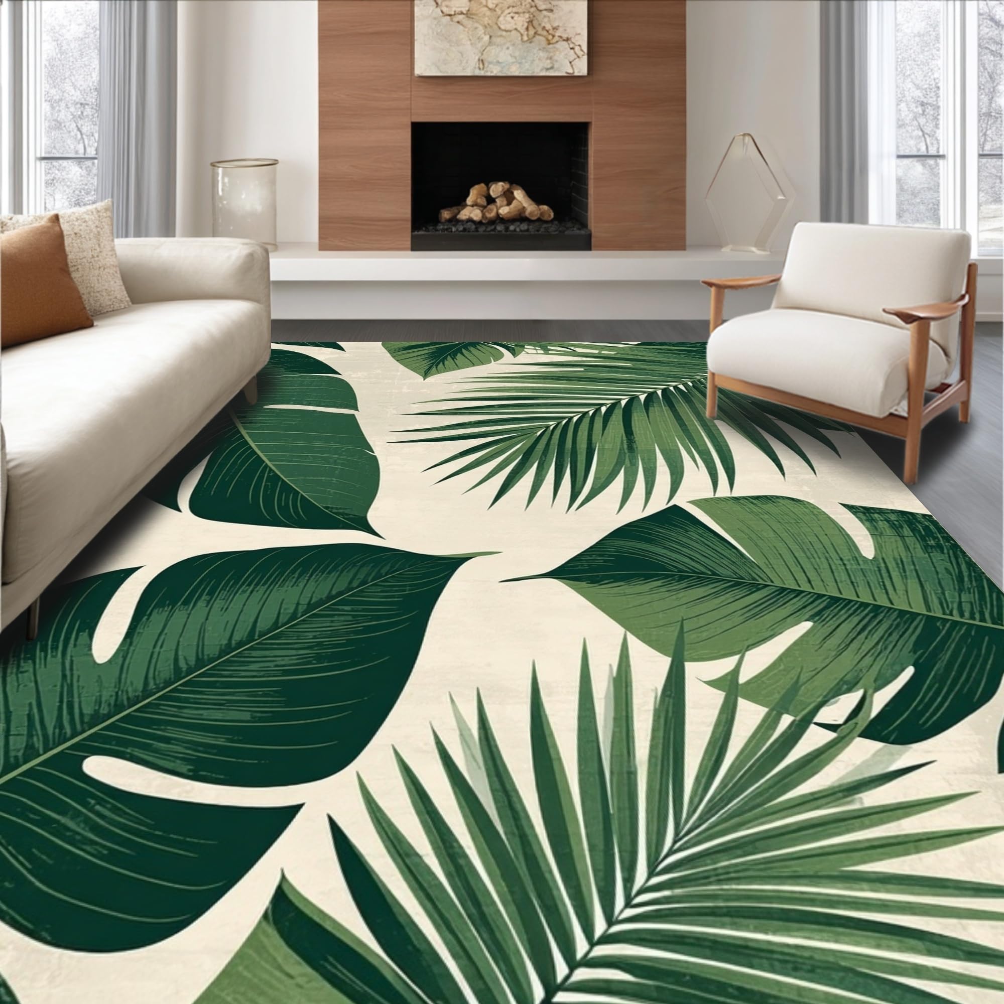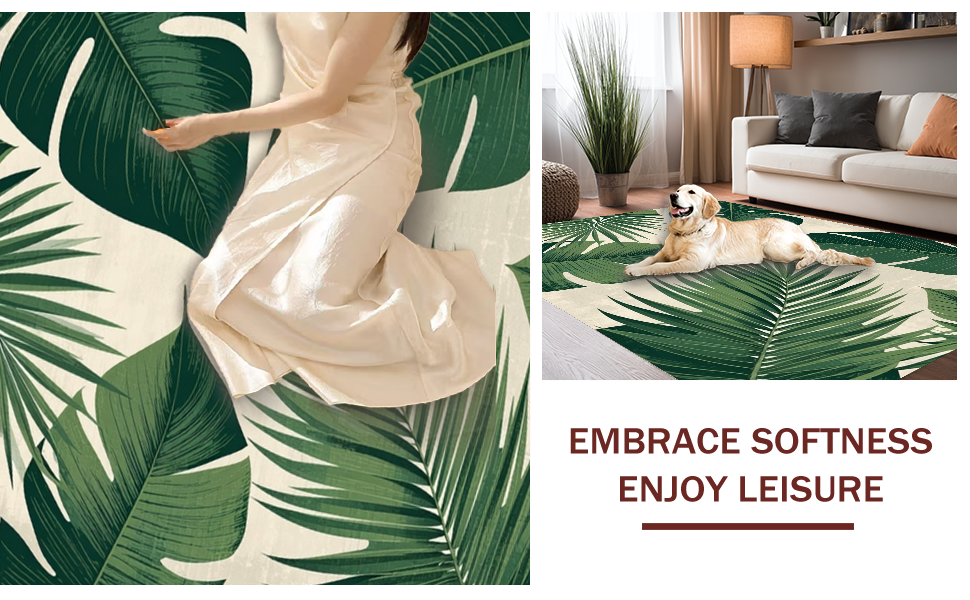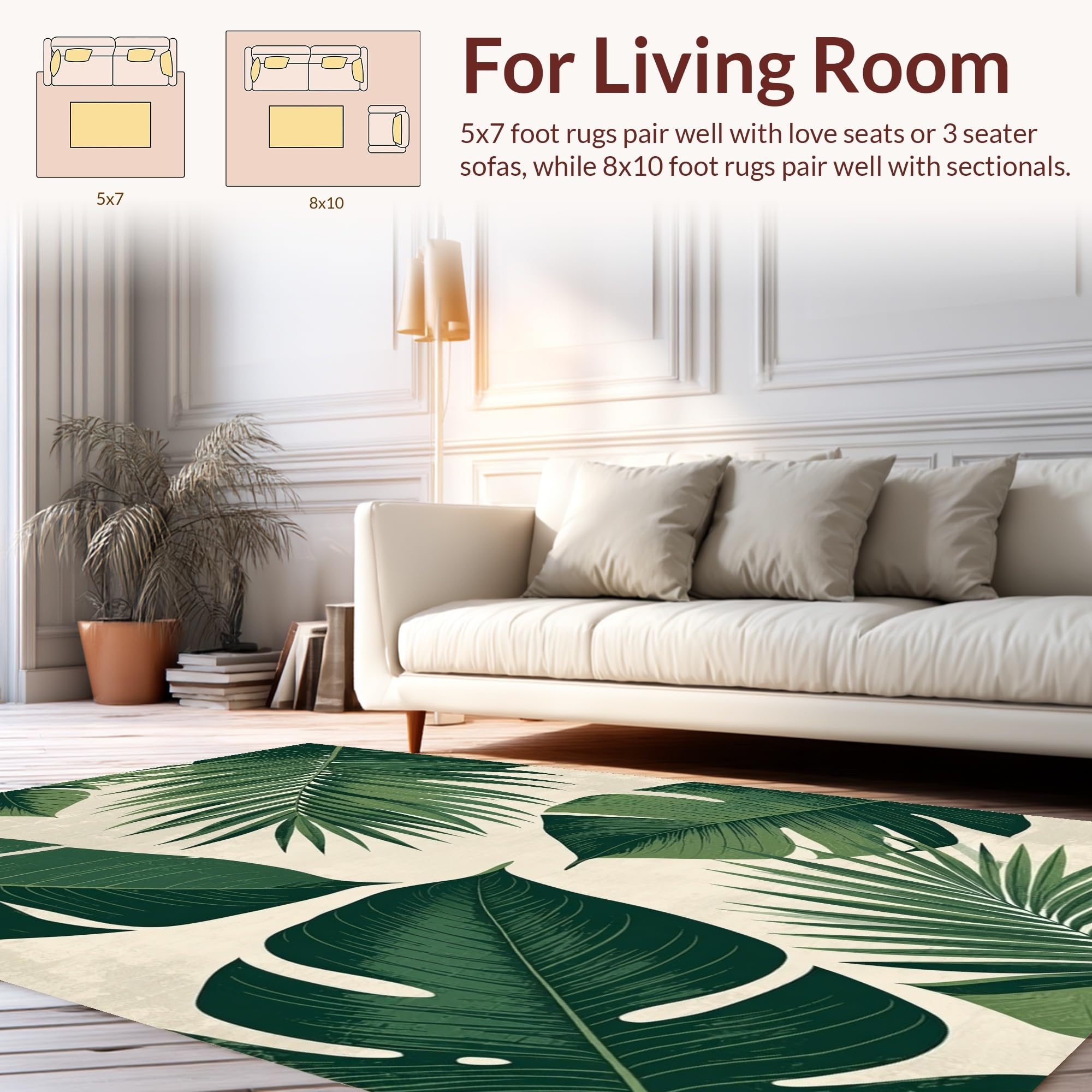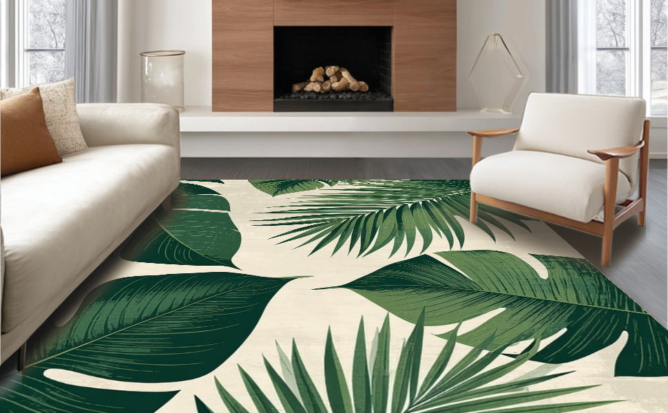 Ultra Soft Area Rug, Non Slip, Stain Resistant, Washable Area Rugs for Living Room, Bedroom, Elegant Leafy Tropical Artistry(Green) Overview: