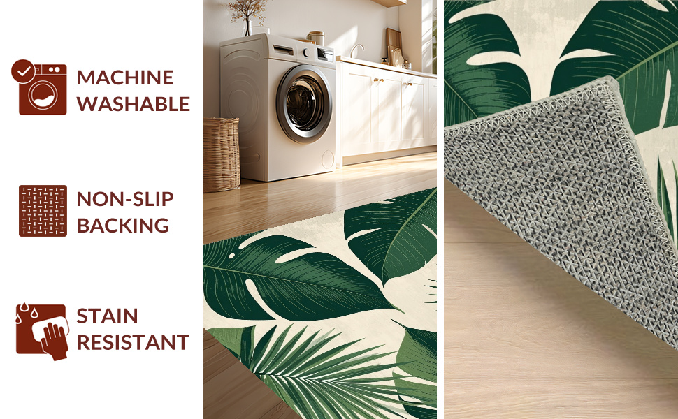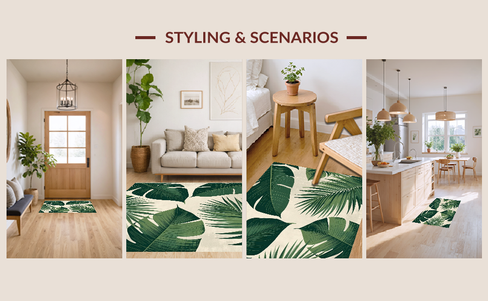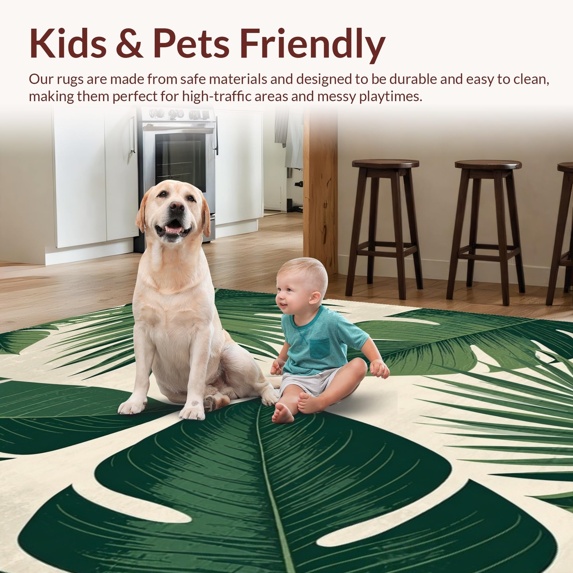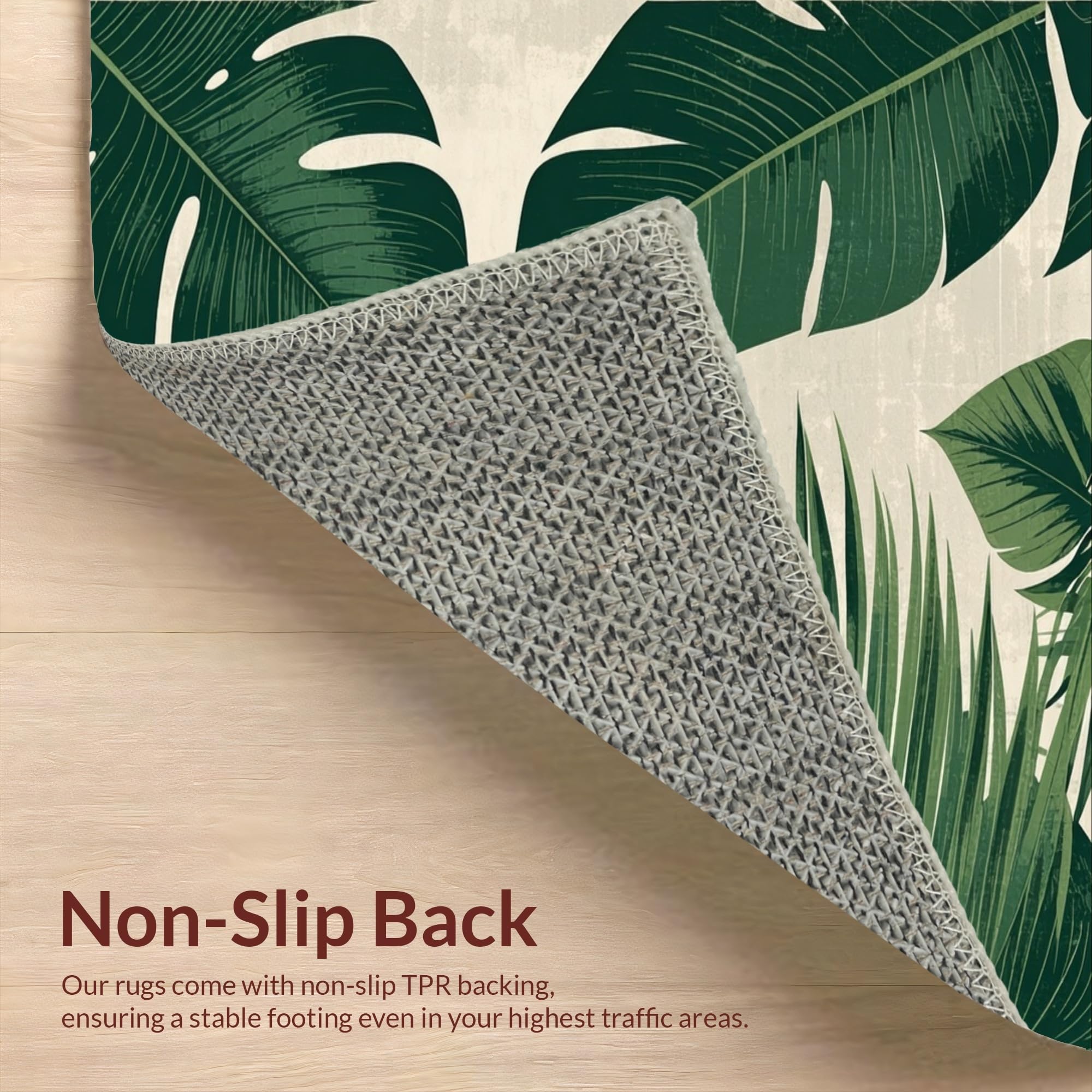 Ultra Soft Area Rug, Non Slip, Stain Resistant, Washable Area Rugs for Living Room, Bedroom, Elegant Leafy Tropical Artistry(Green) Overview: