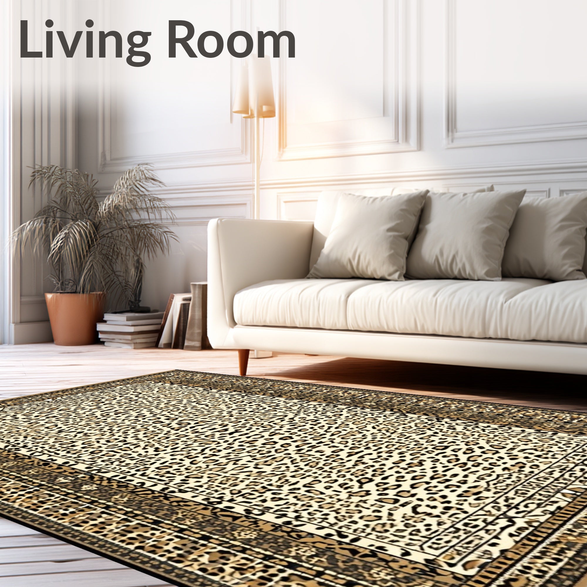 Ultra Soft Area Rug, Non Slip, Stain Resistant, Washable Area Rugs for Living Room, Bedroom, Elegant Leopard Print with Contemporary Design and Neutral Shades(Beige) Overview: