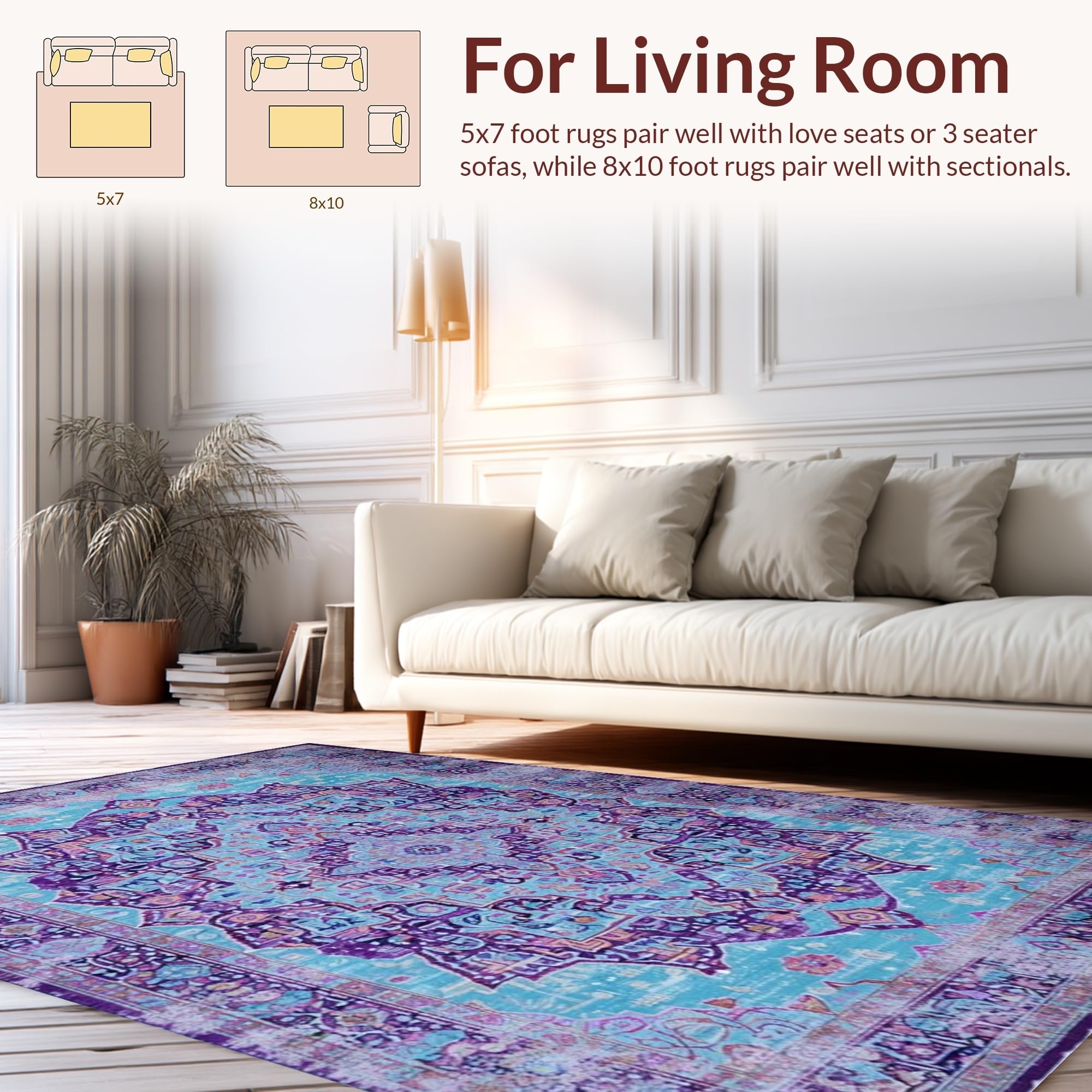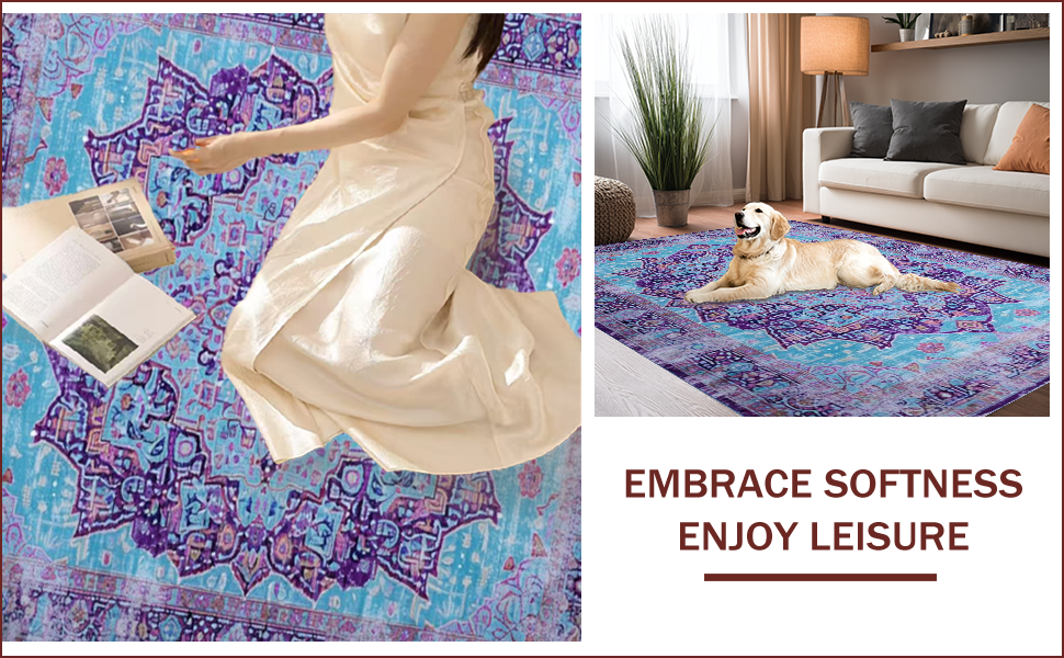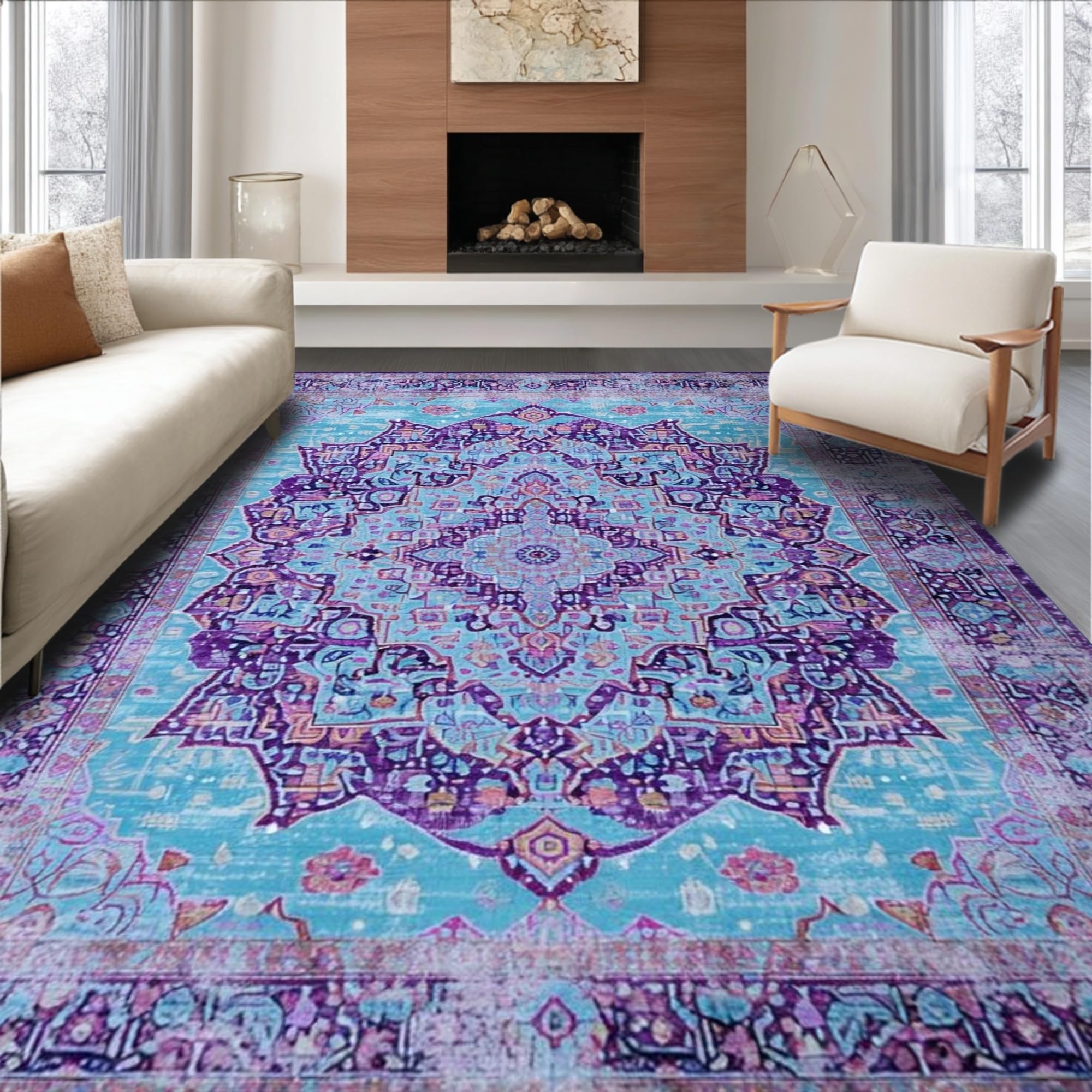 Ultra Soft Area Rug, Non Slip, Stain Resistant, Washable Area Rugs for Living Room, Bedroom, Elegant Light Blue Floral Motif(Blue) Overview: