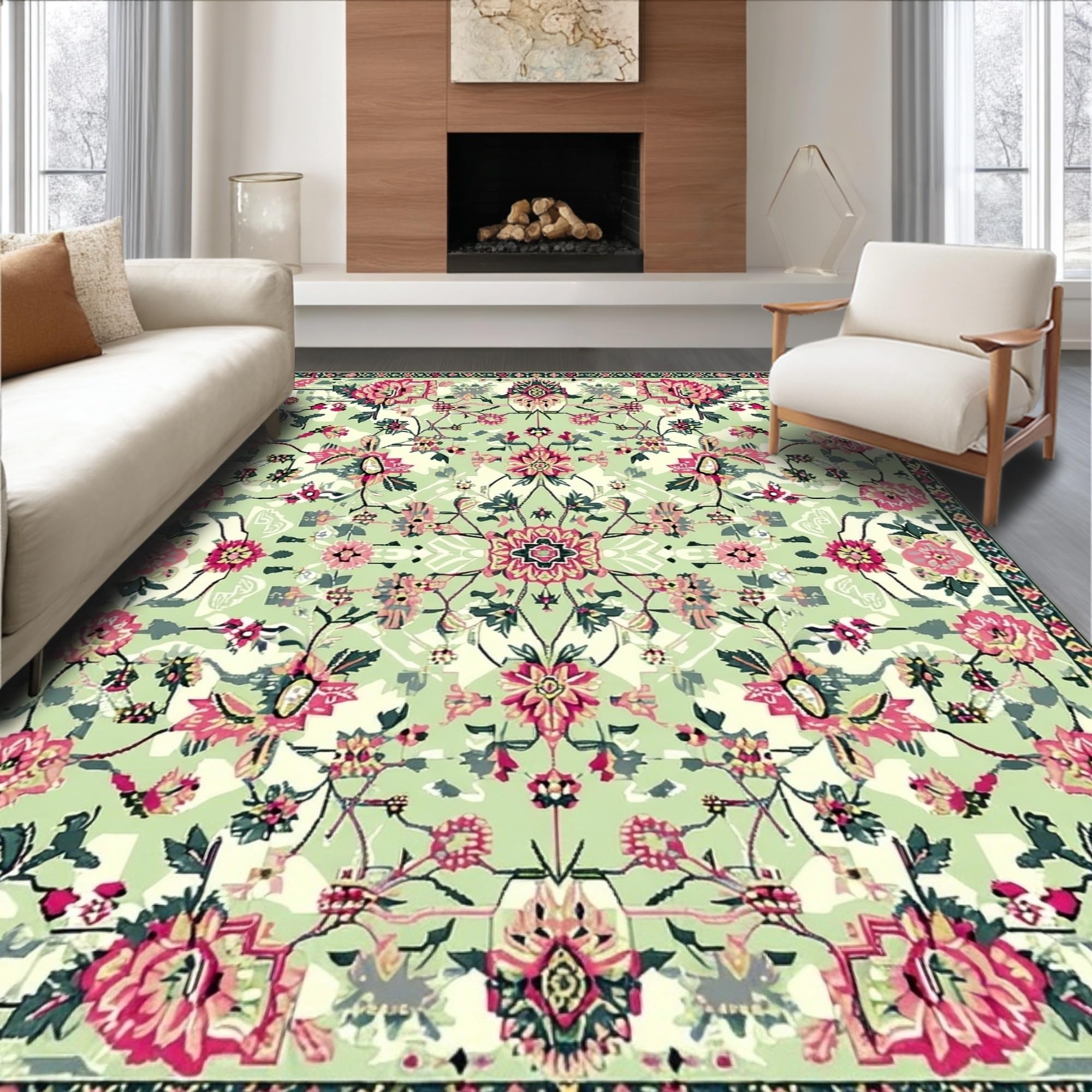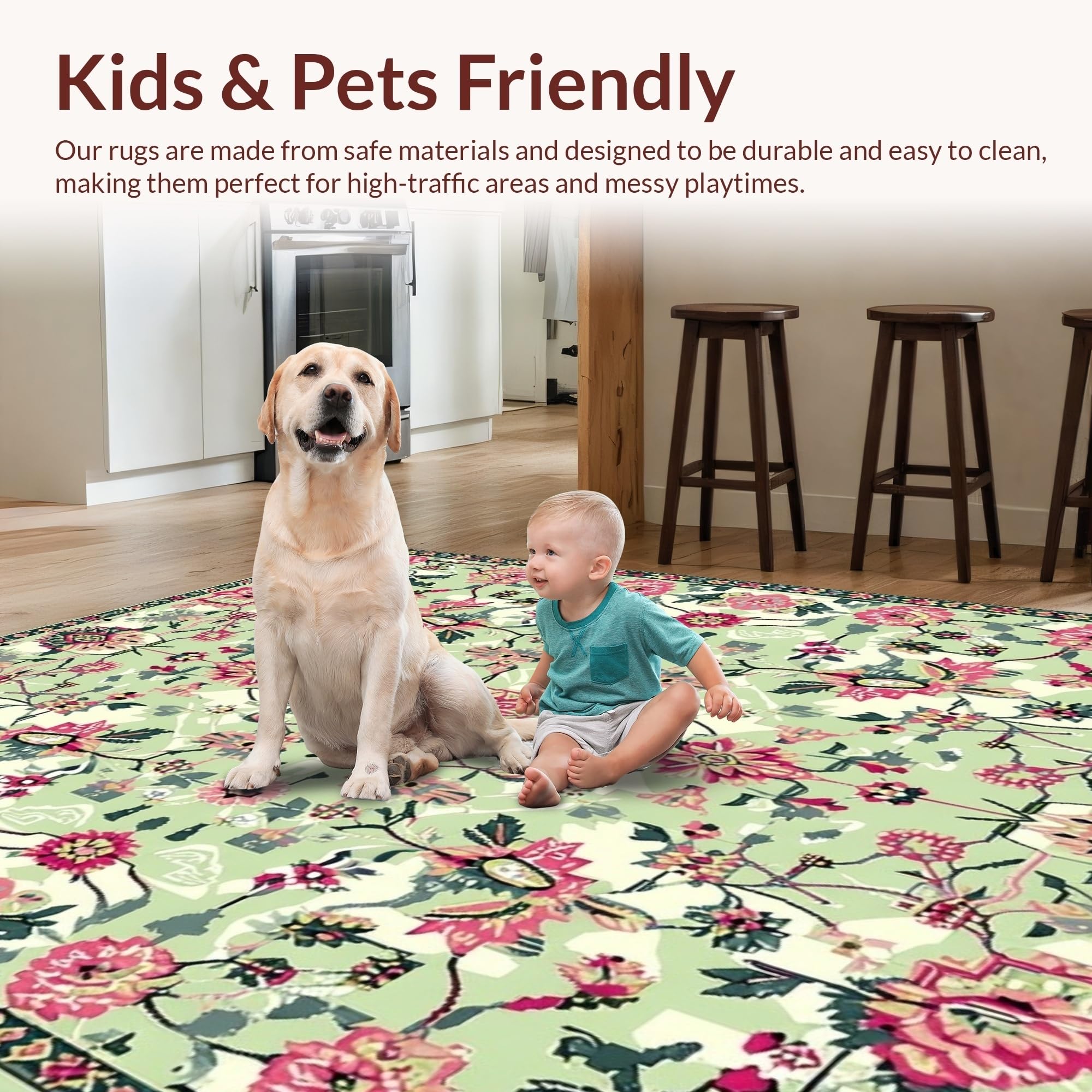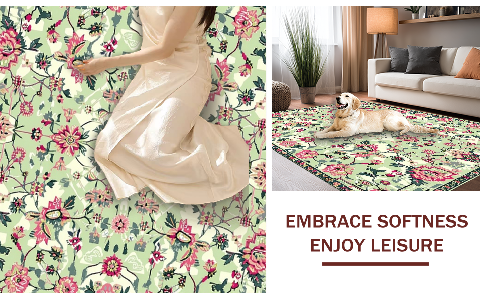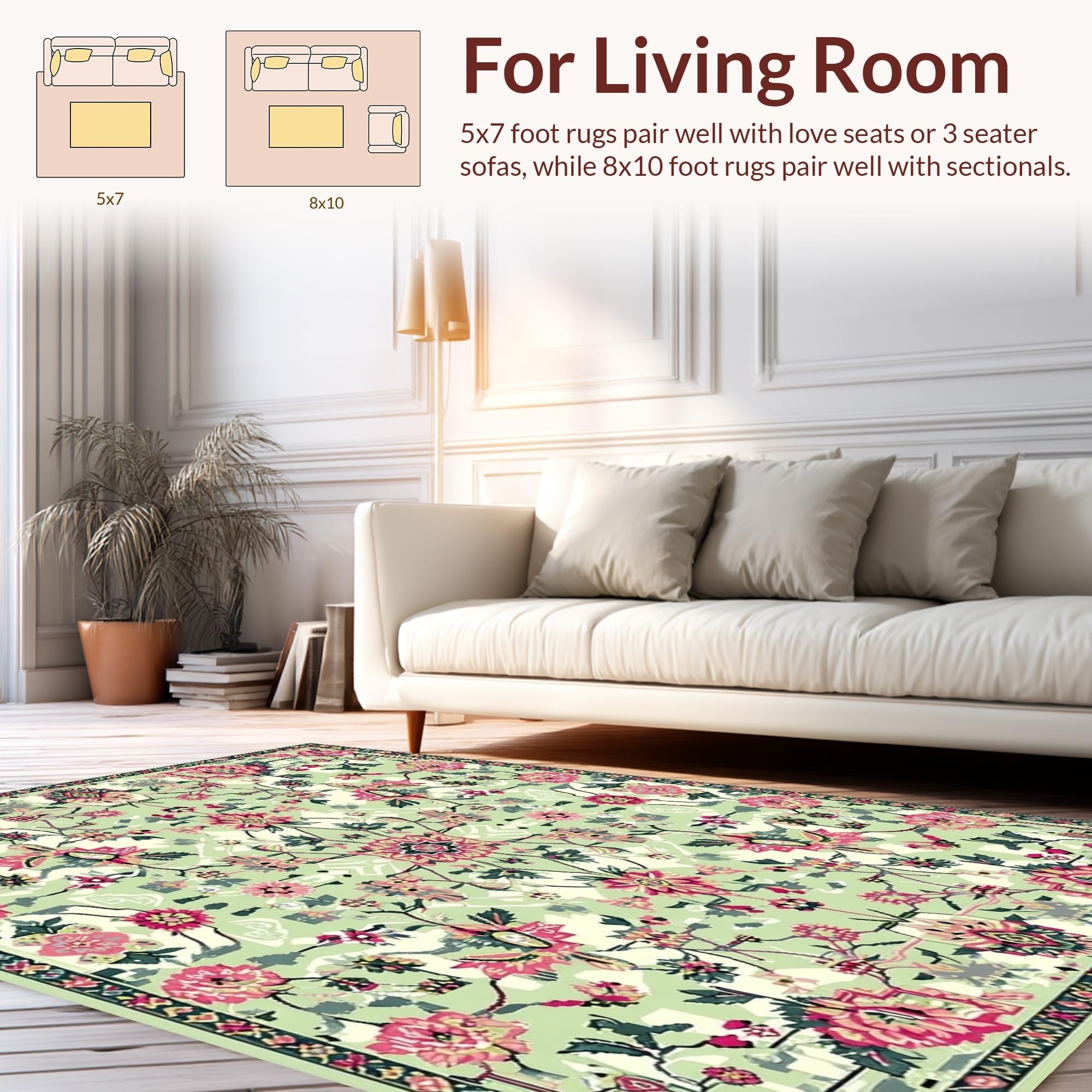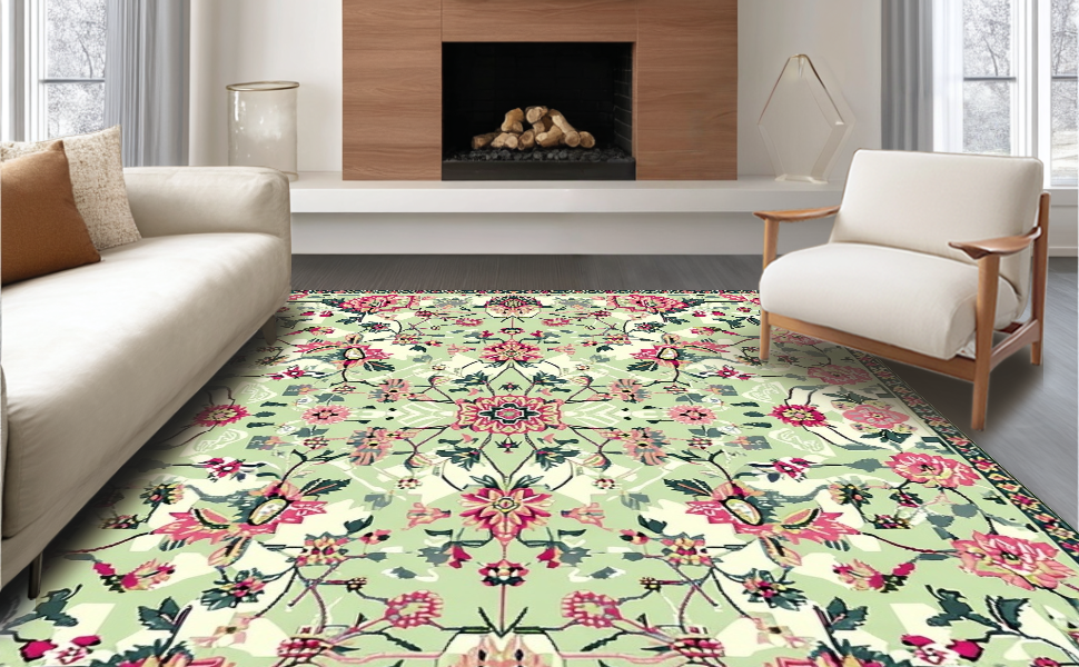 Ultra Soft Area Rug, Non Slip, Stain Resistant, Washable Area Rugs for Living Room, Bedroom, Elegant Light Green Textured Motif(Ivory) Overview: