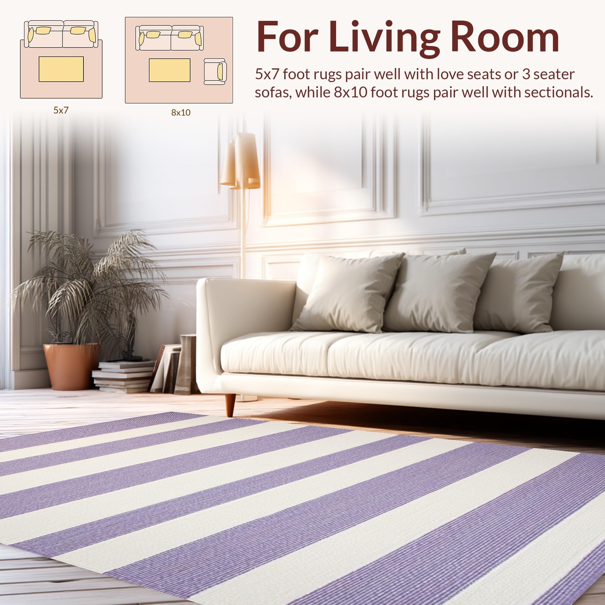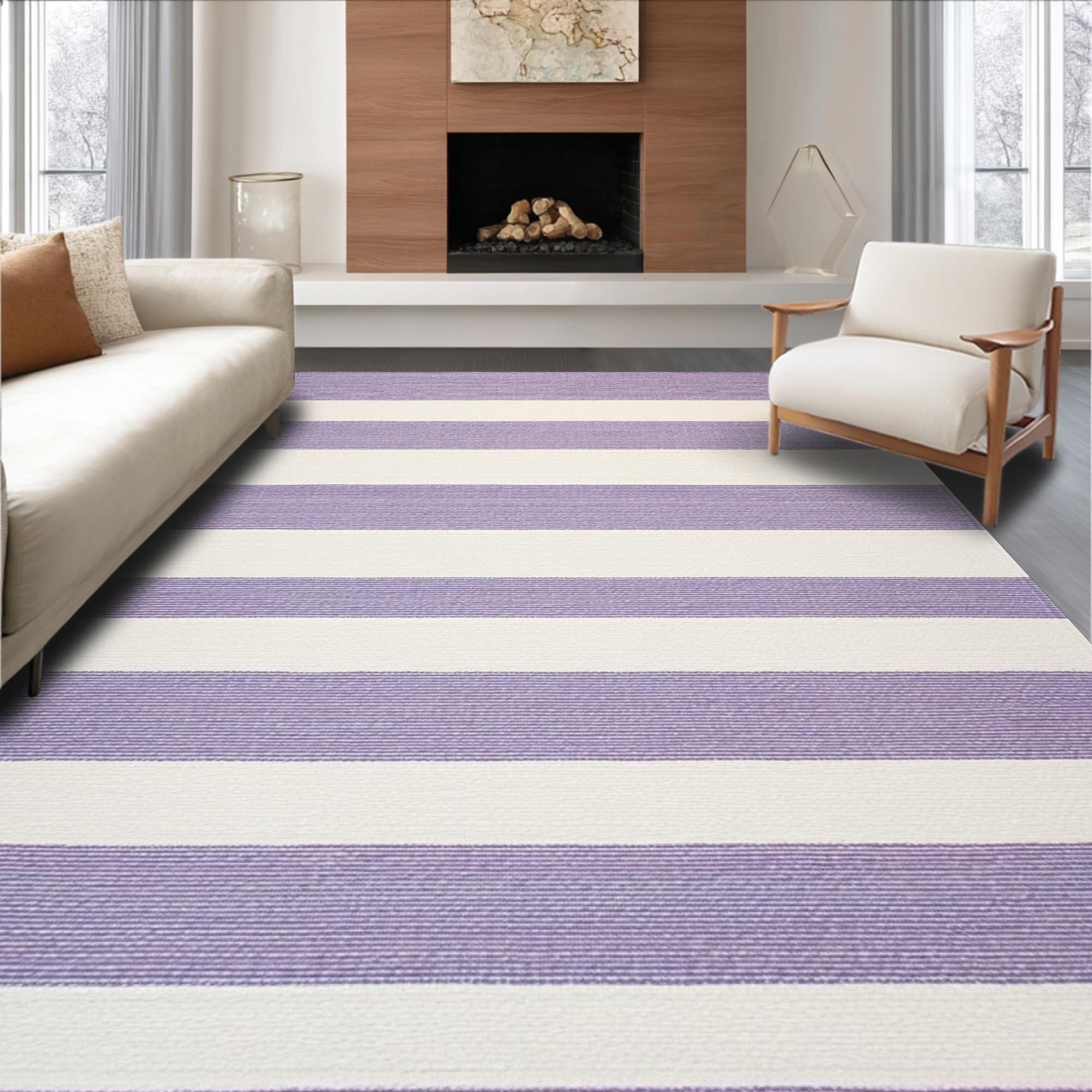 Ultra Soft Area Rug, Non Slip, Stain Resistant, Washable Area Rugs for Living Room, Bedroom, Elegant Light Purple Geometric Accents(Purple) Overview: