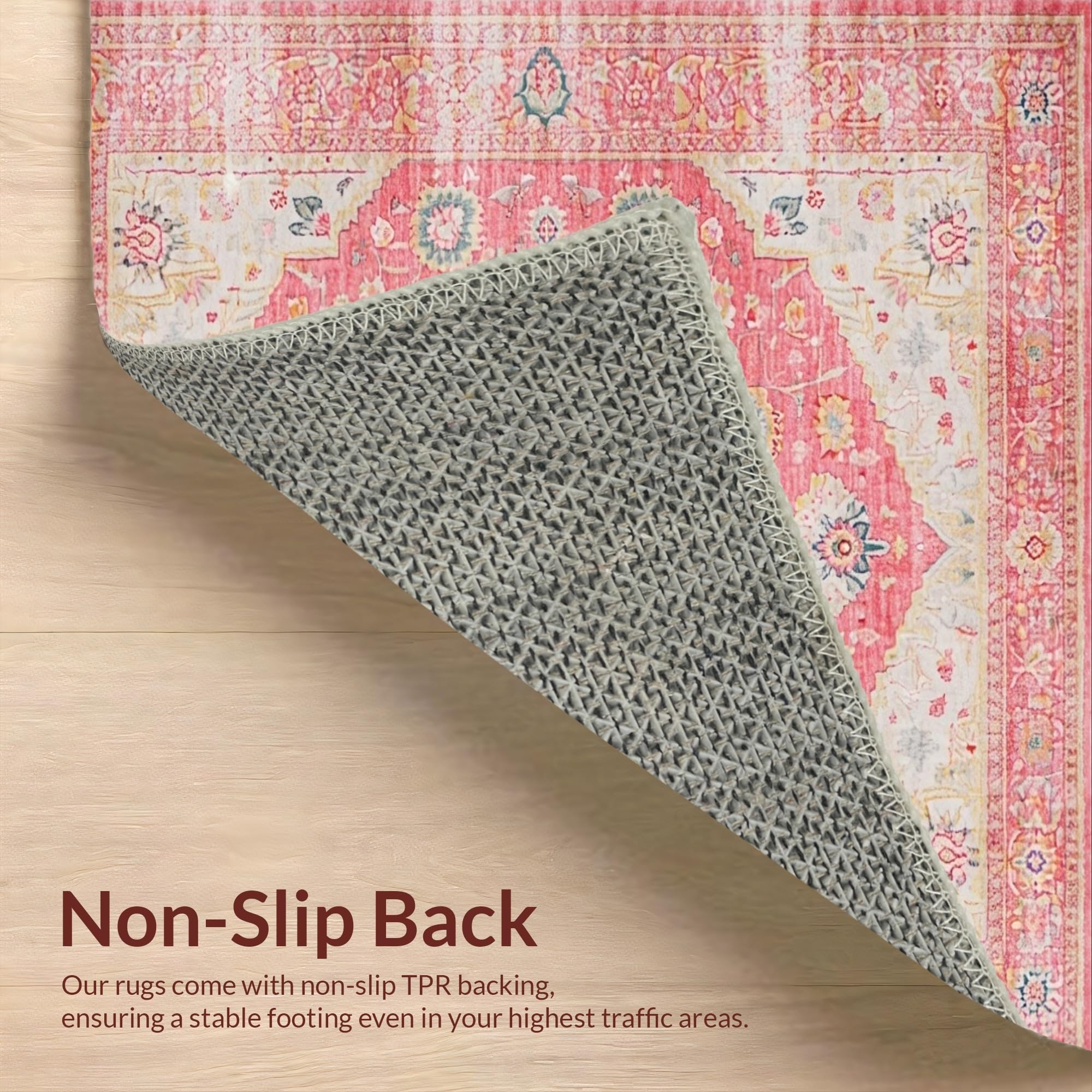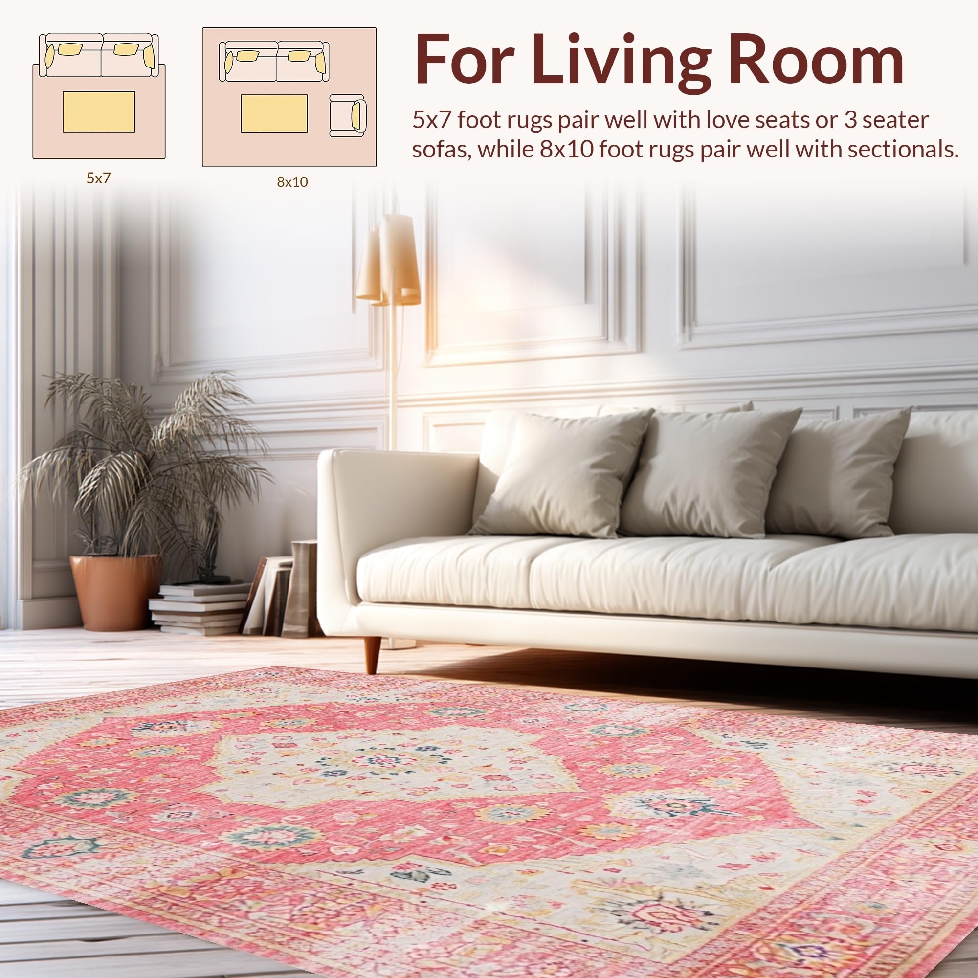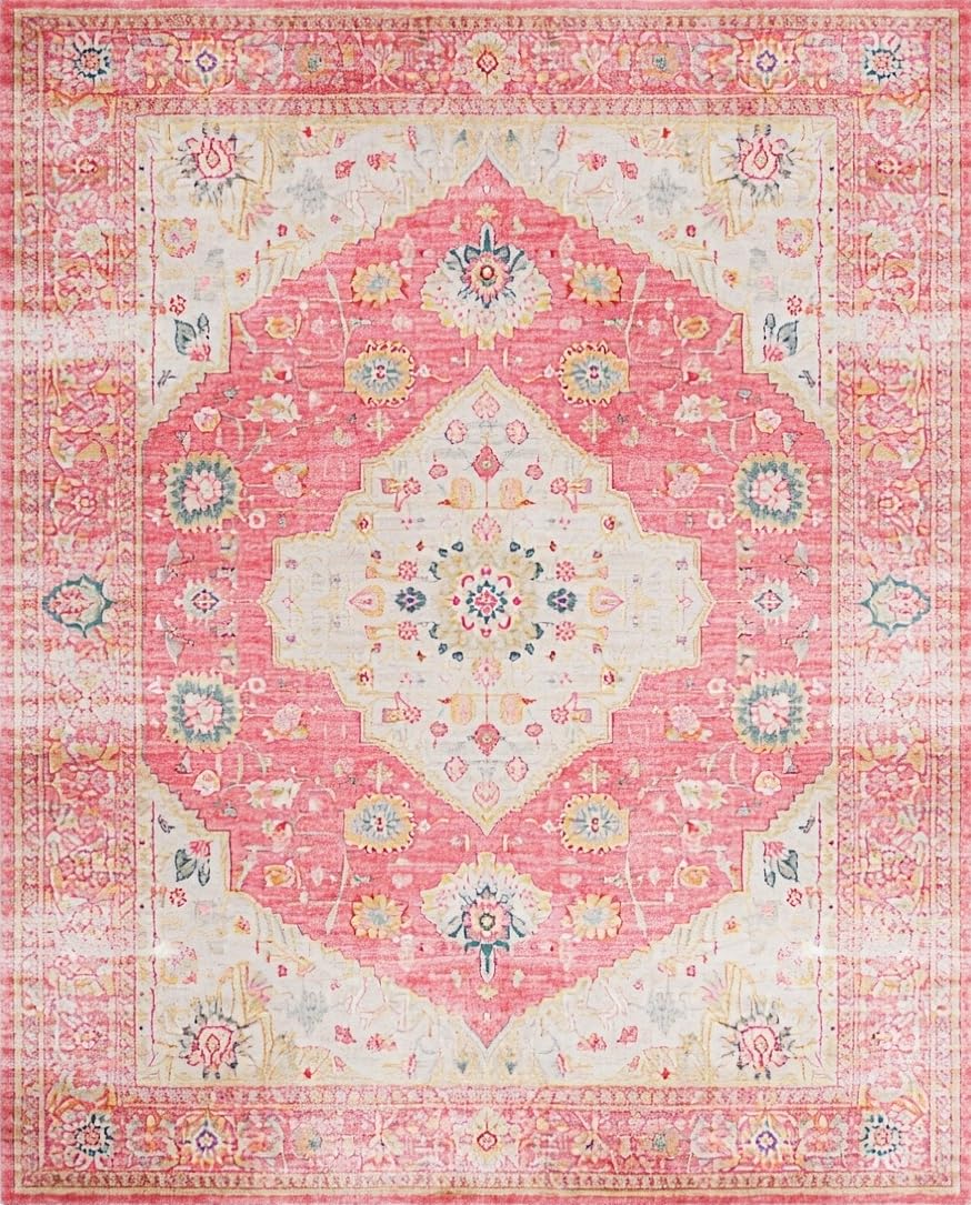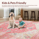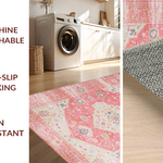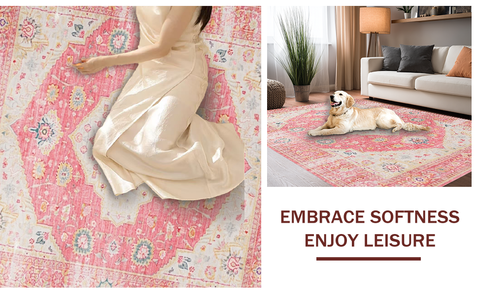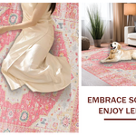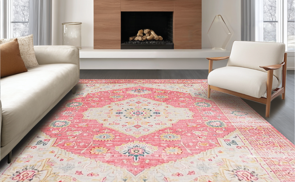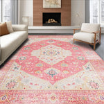 Ultra Soft Area Rug, Non Slip, Stain Resistant, Washable Area Rugs for Living Room, Bedroom, Elegant Low-Pile Botanical Design(Pink) Overview: