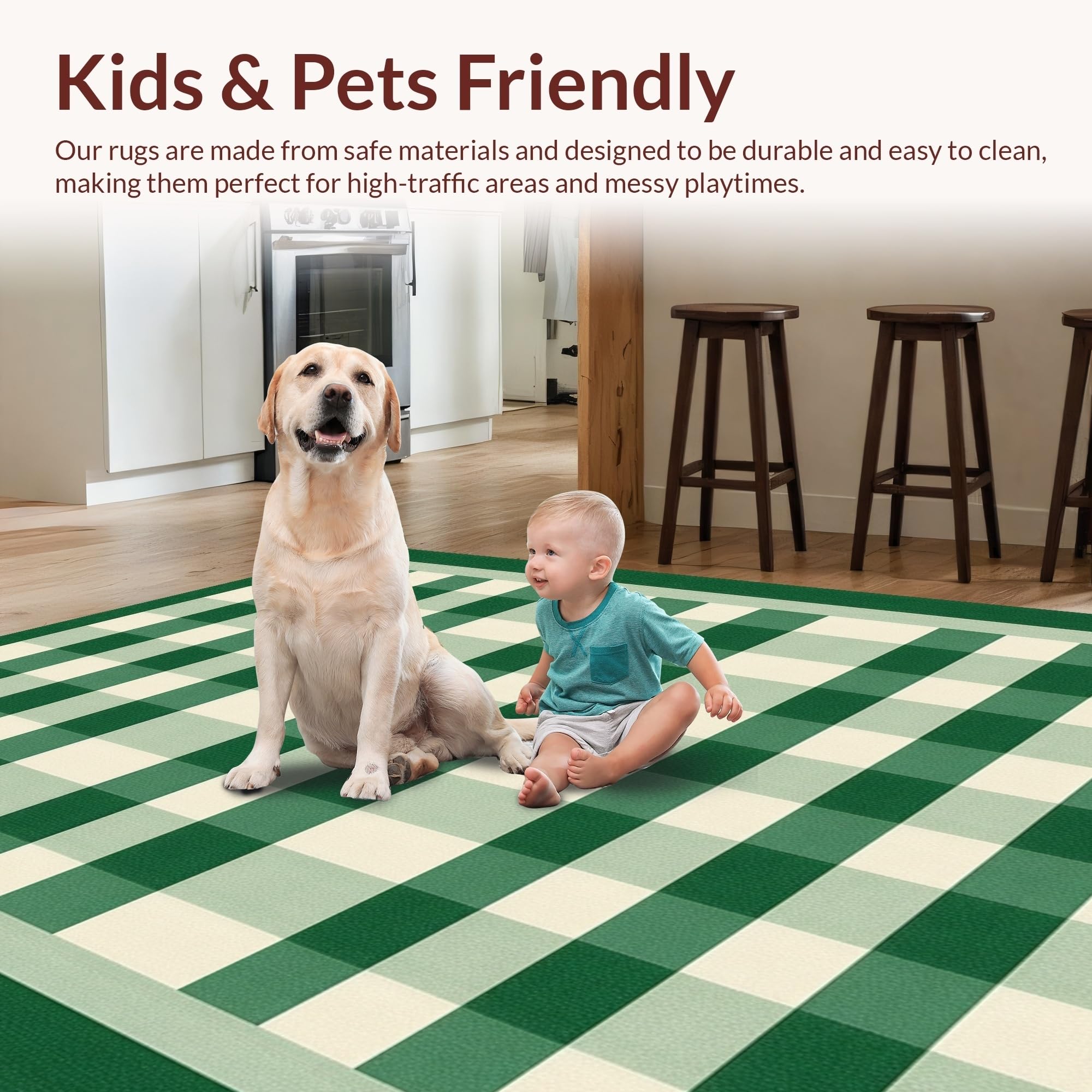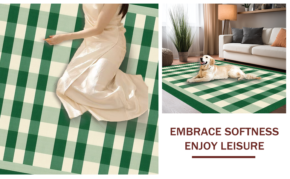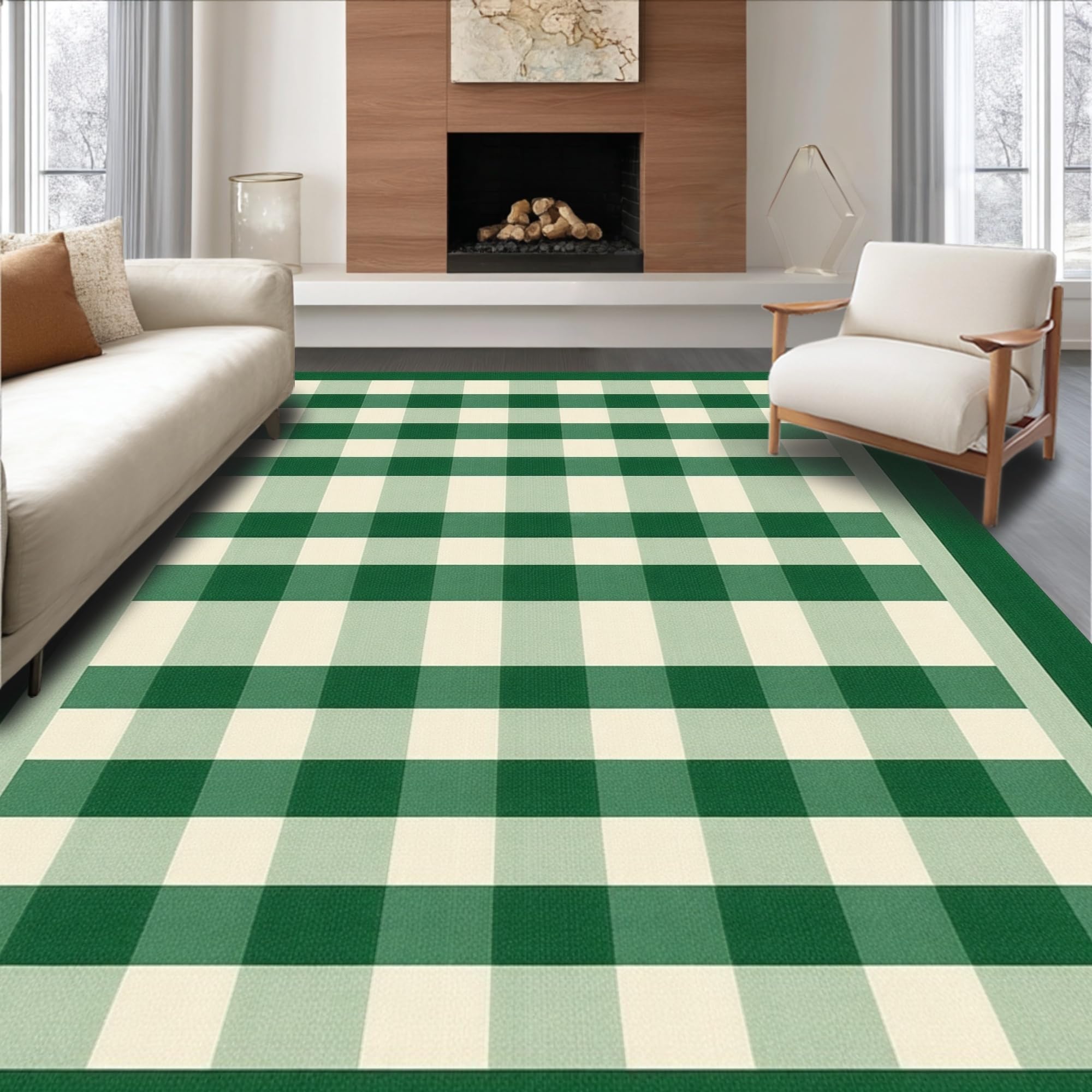 Ultra Soft Area Rug, Non Slip, Stain Resistant, Washable Area Rugs for Living Room, Bedroom, Elegant Low Pile Lattice Pattern(Green) Overview: