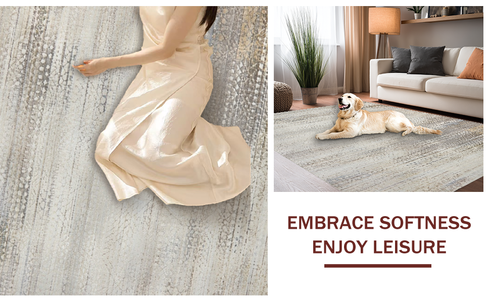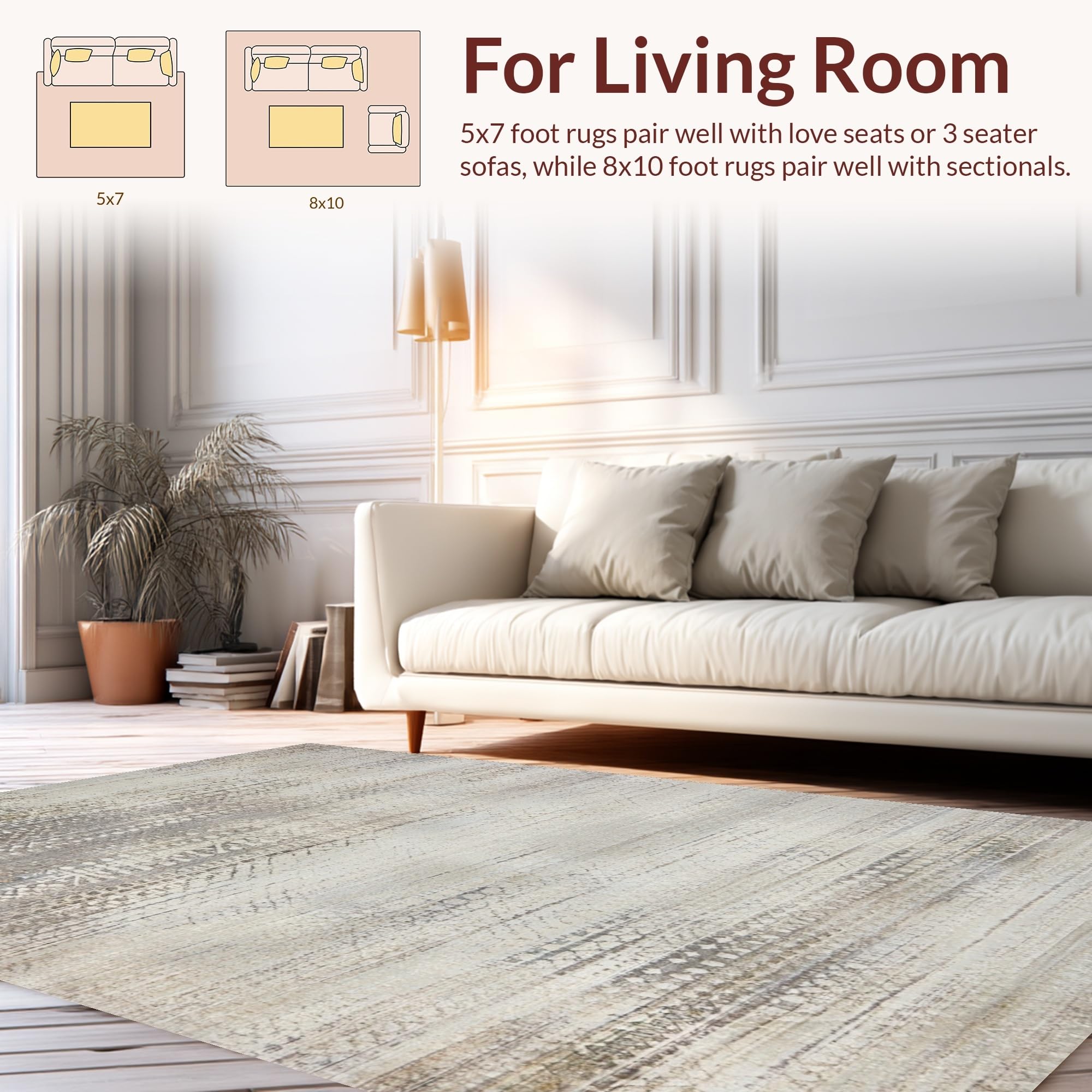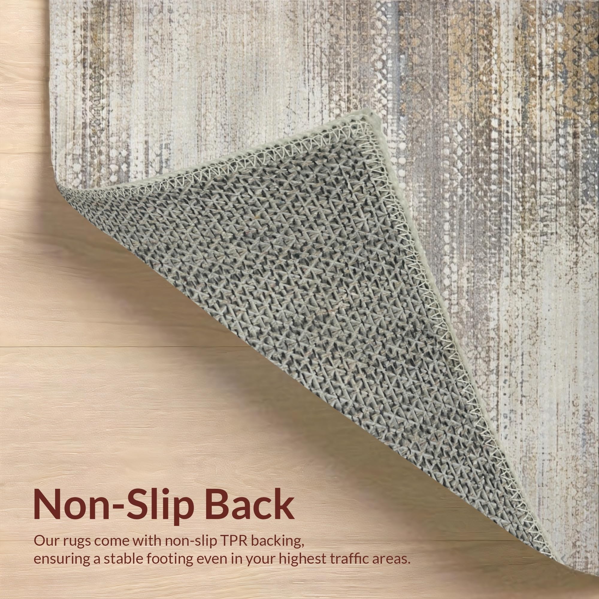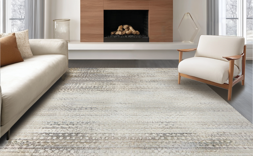 Ultra Soft Area Rug, Non Slip, Stain Resistant, Washable Area Rugs for Living Room, Bedroom, Elegant Low-Pile Textured Motif(Gray) Overview: