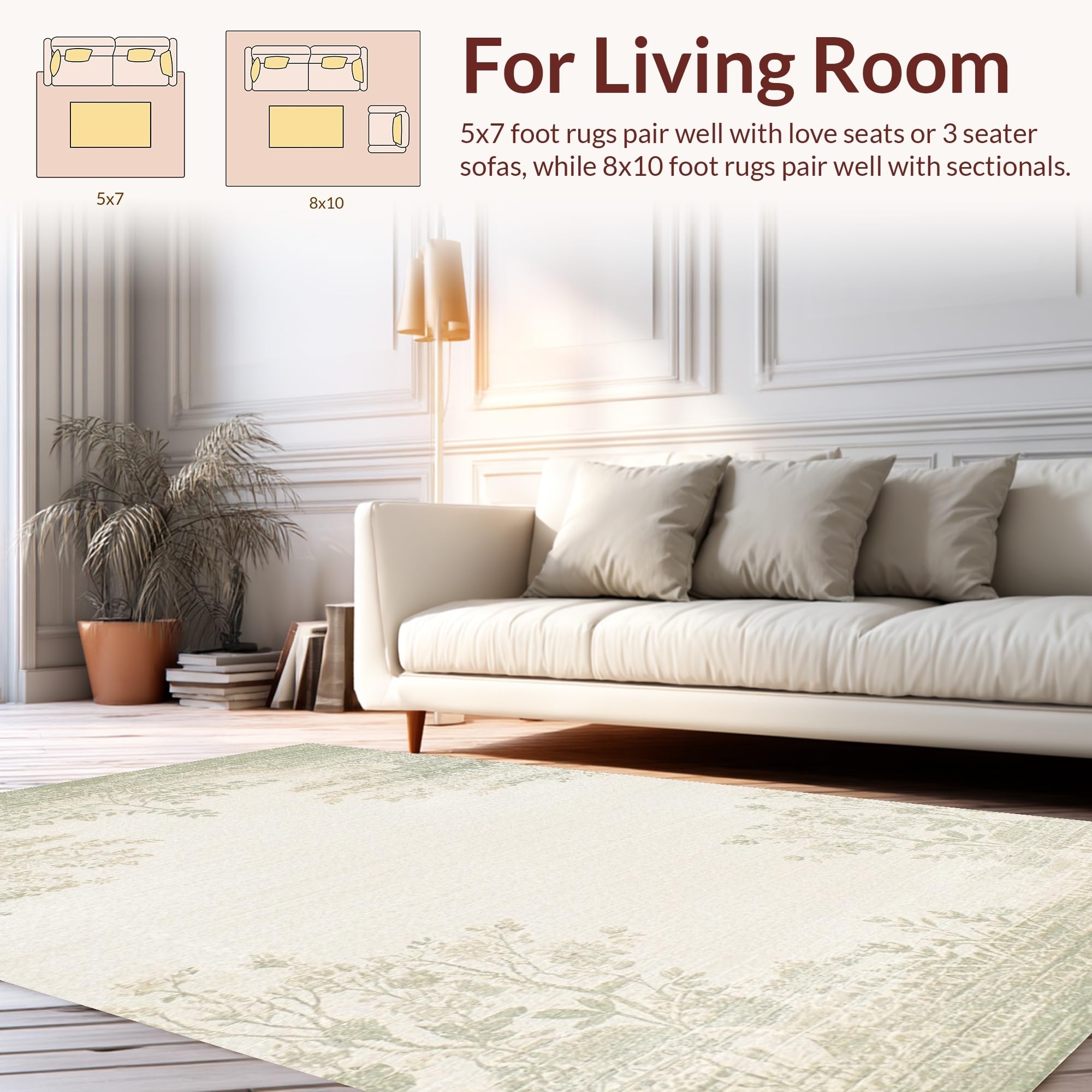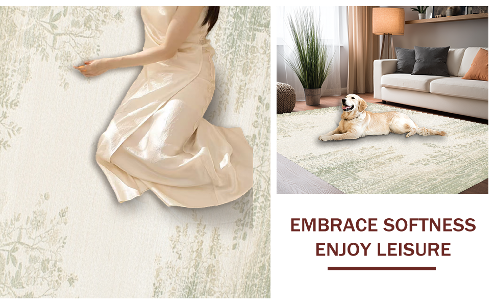 Ultra Soft Area Rug, Non Slip, Stain Resistant, Washable Area Rugs for Living Room, Bedroom, Elegant Low Pile Tree Aesthetic(Beige) Overview: