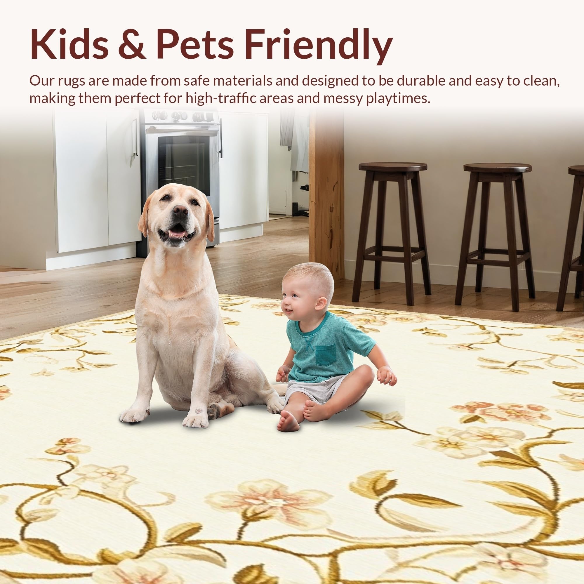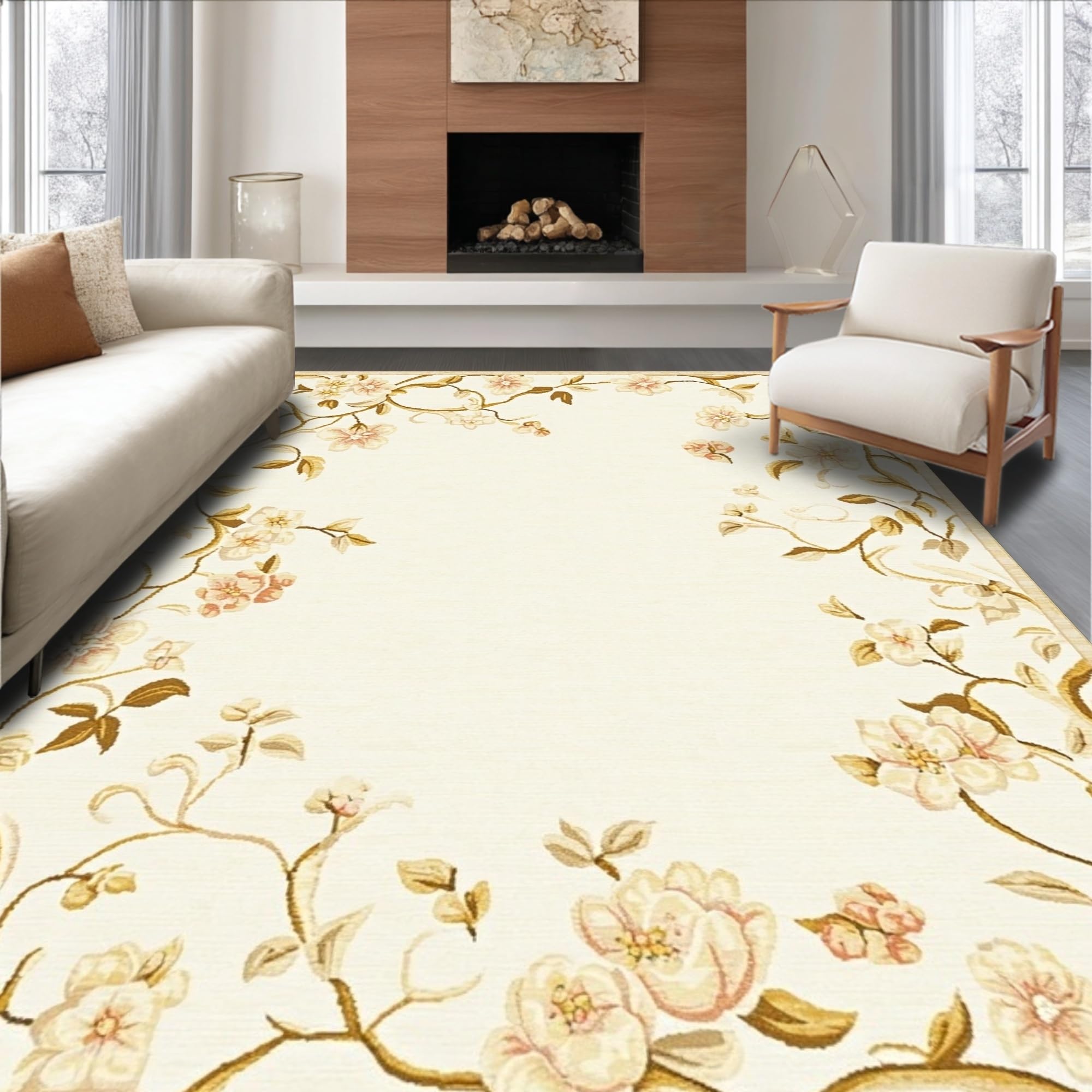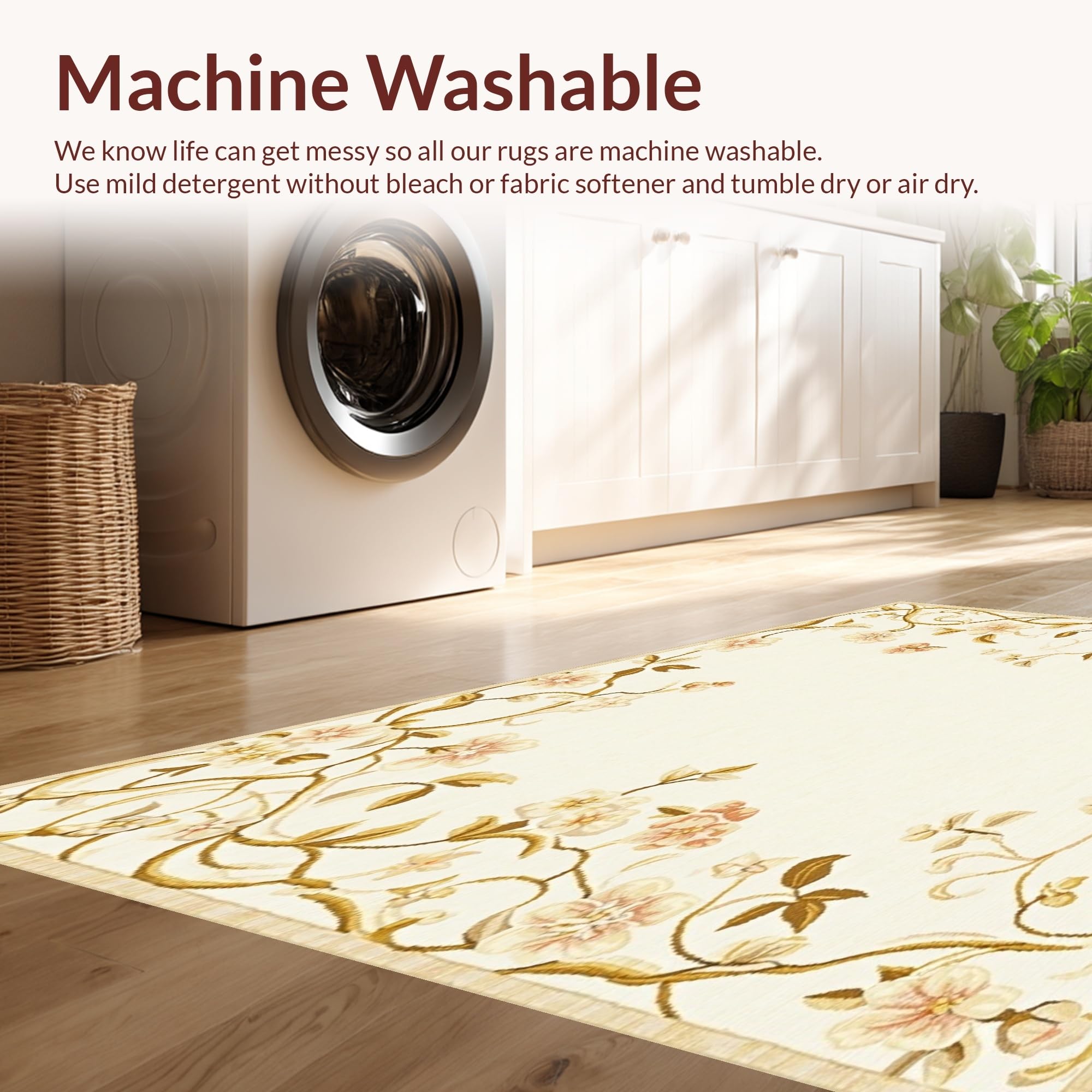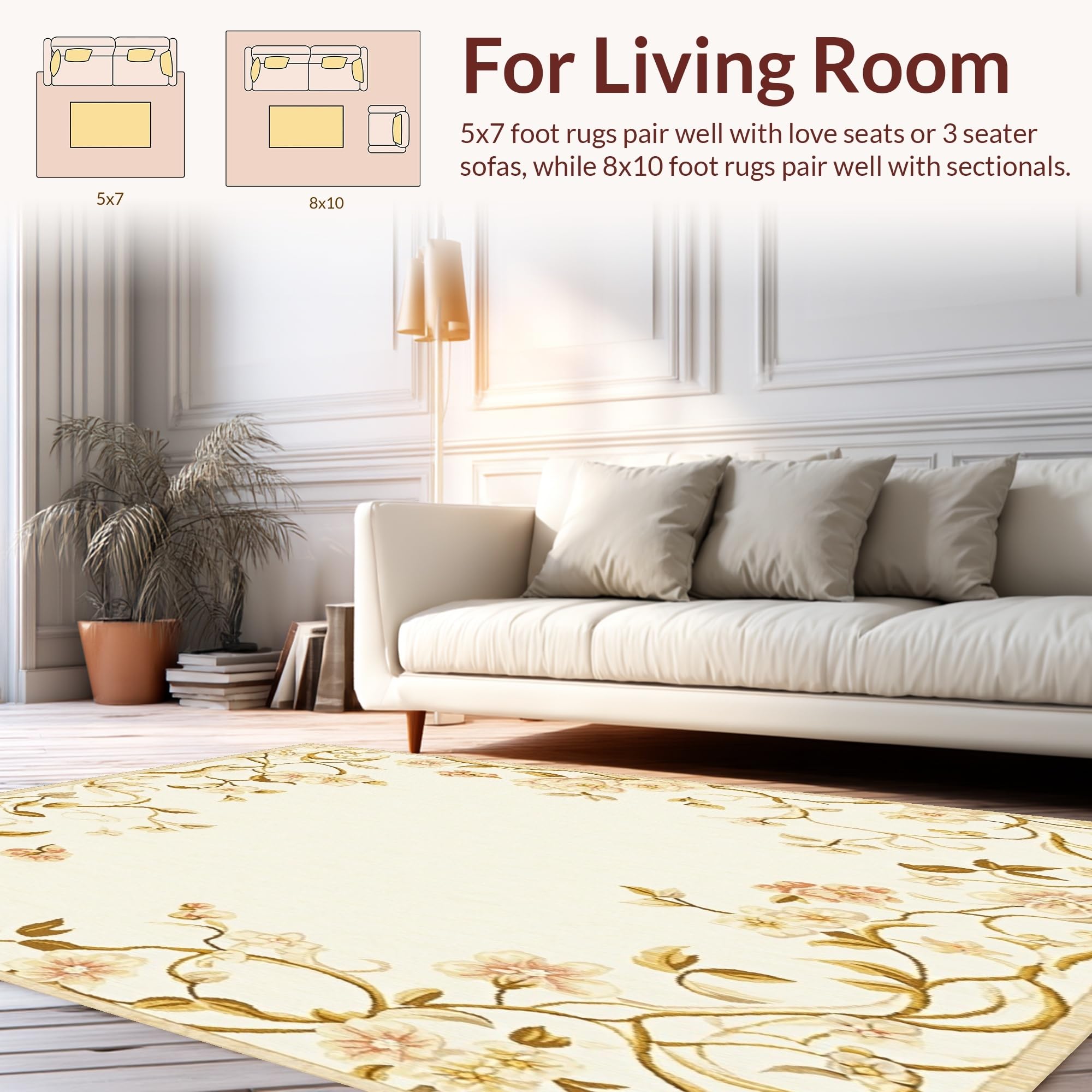 Ultra Soft Area Rug, Non Slip, Stain Resistant, Washable Area Rugs for Living Room, Bedroom, Elegant Low Pile with Gentle Floral Vine in Beige Hues(Beige) Overview:
