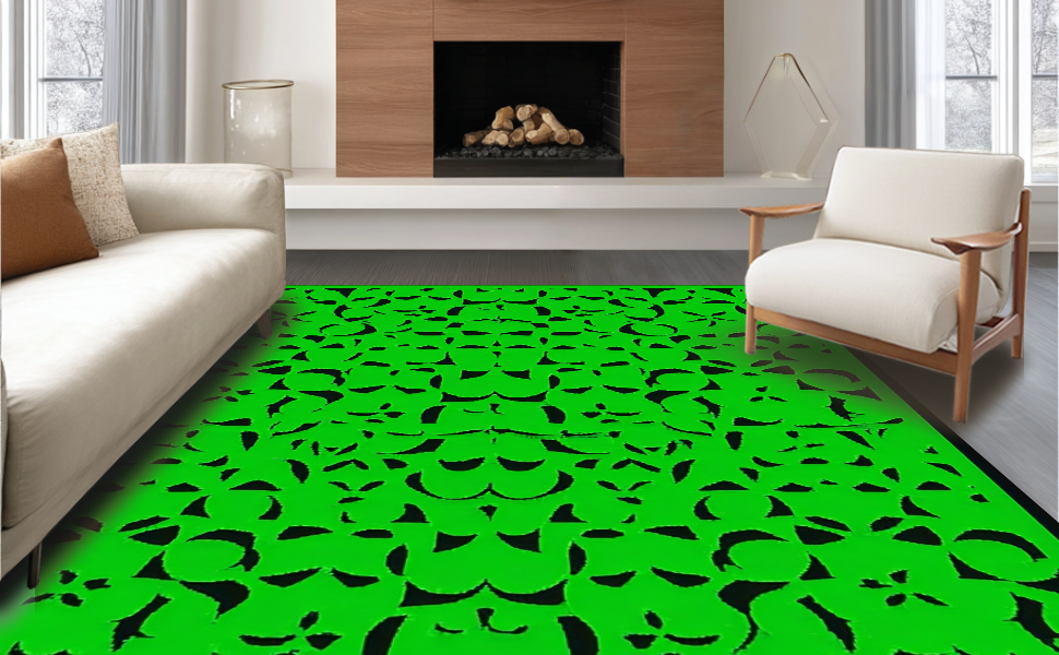 Ultra Soft Area Rug, Non Slip, Stain Resistant, Washable Area Rugs for Living Room, Bedroom, Elegant Lucky Clover Arrangement(Green) Overview: