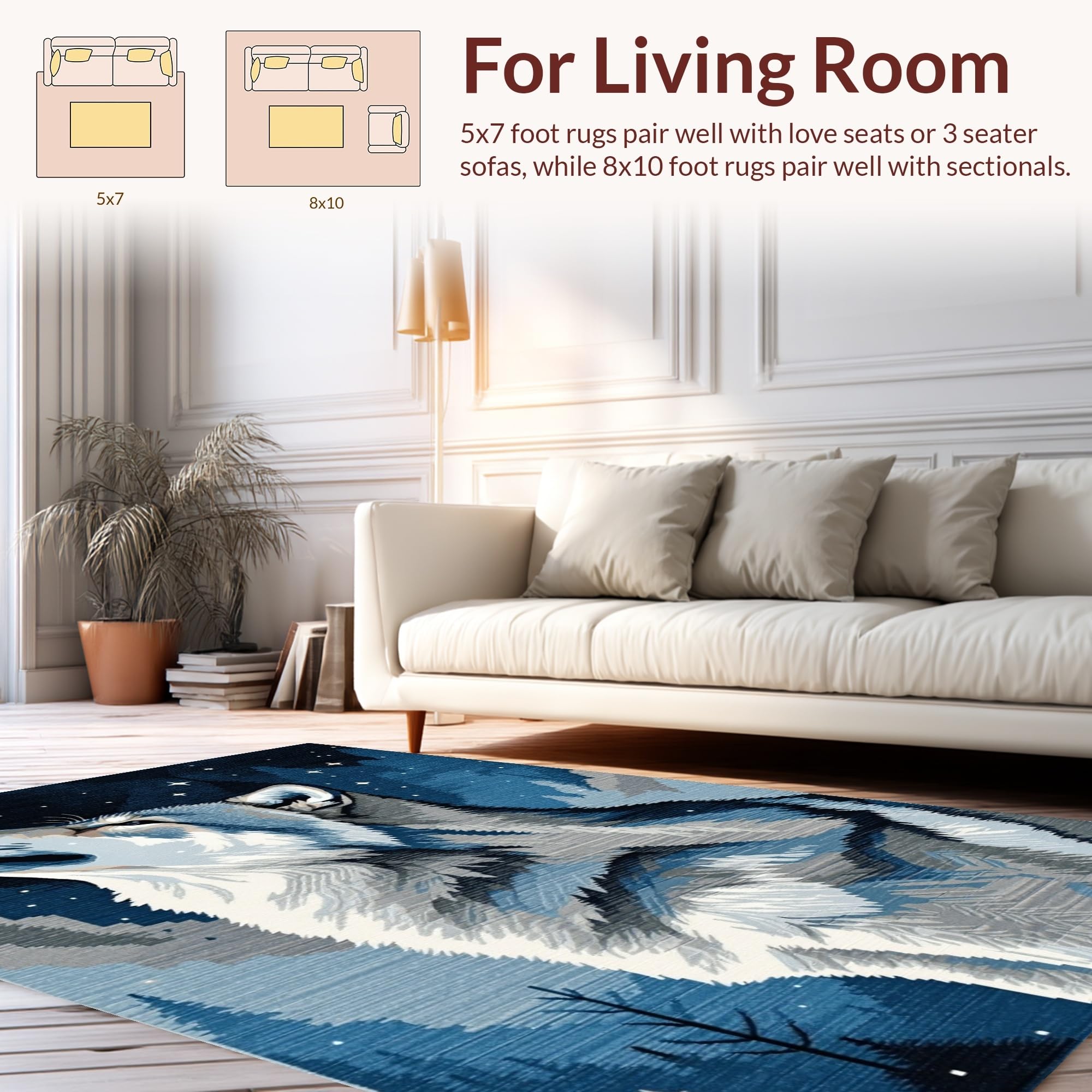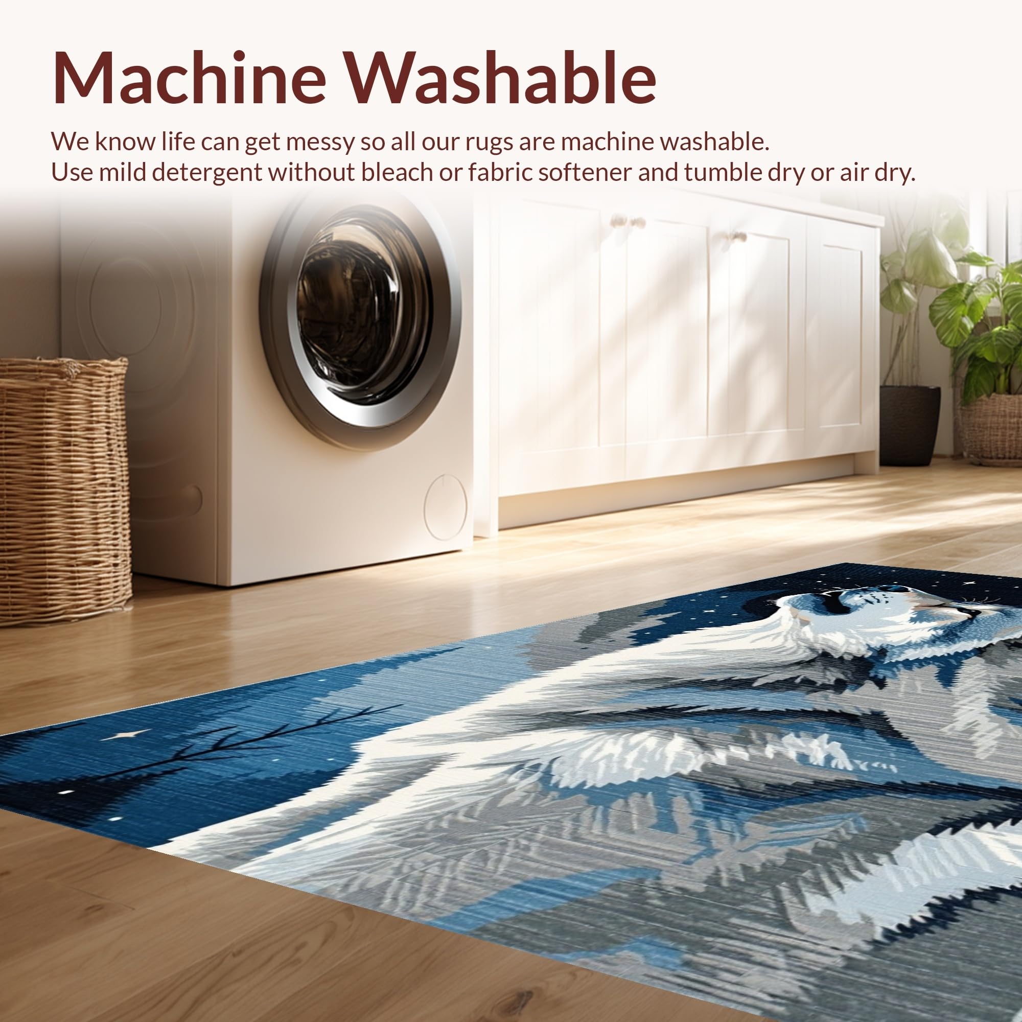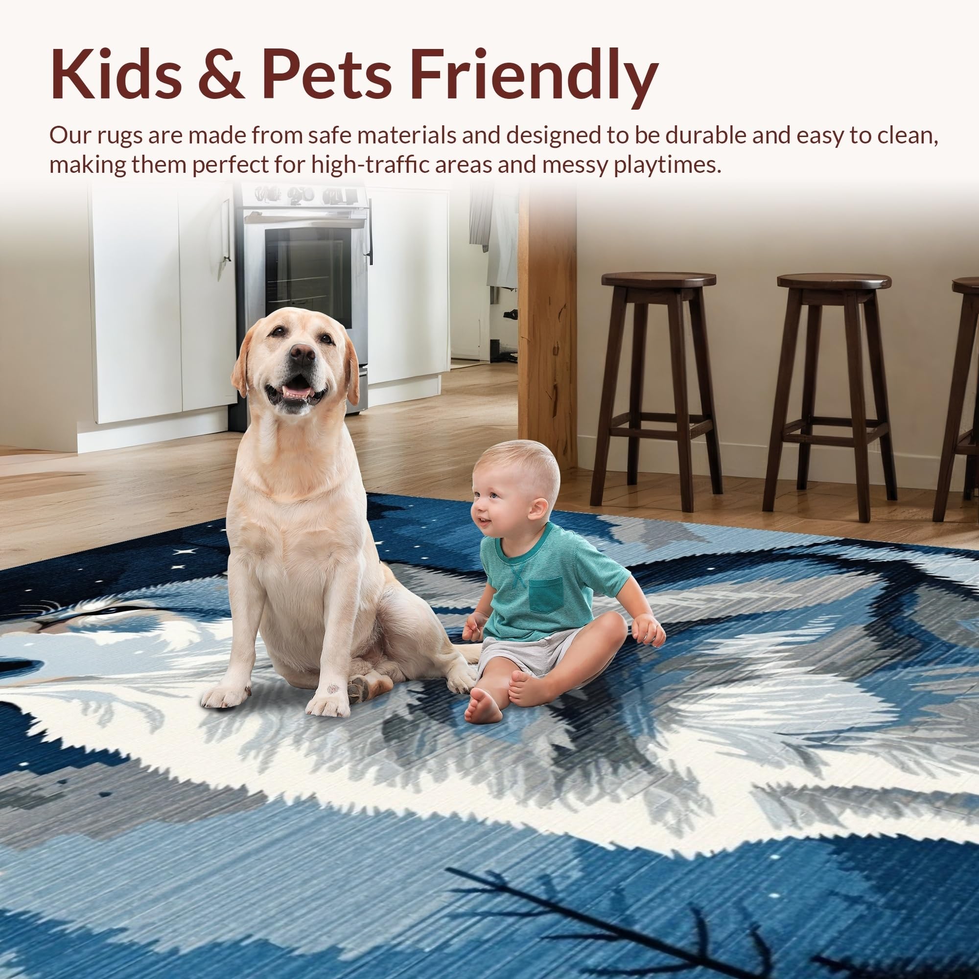 Ultra Soft Area Rug, Non Slip, Stain Resistant, Washable Area Rugs for Living Room, Bedroom, Elegant Lunar Wildlife Representation(Blue) Overview: