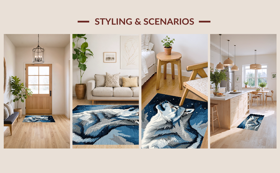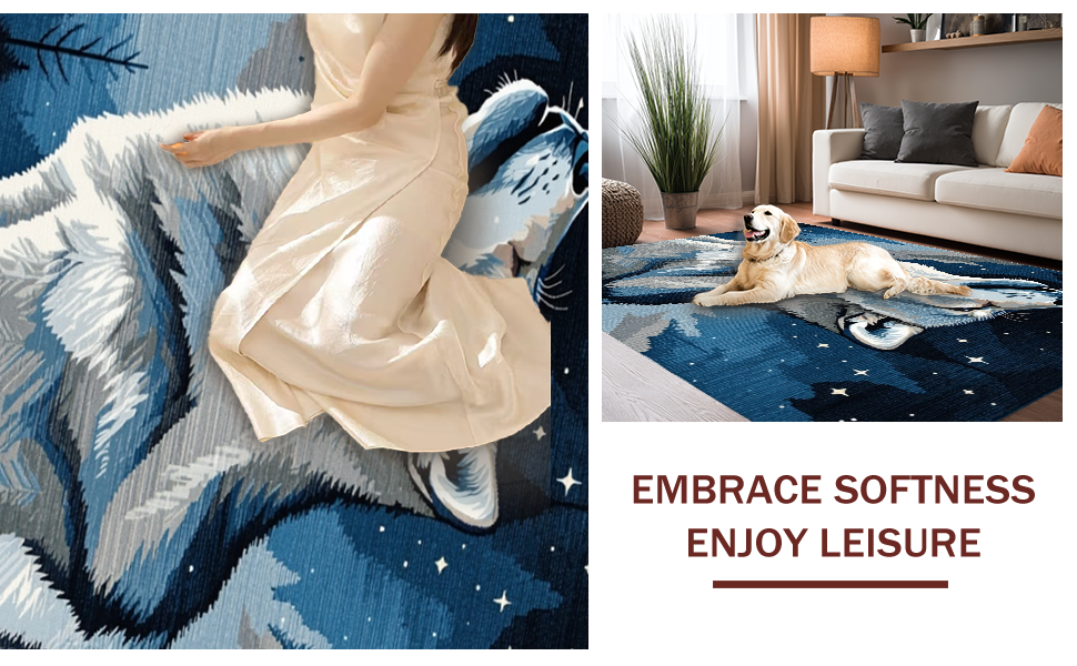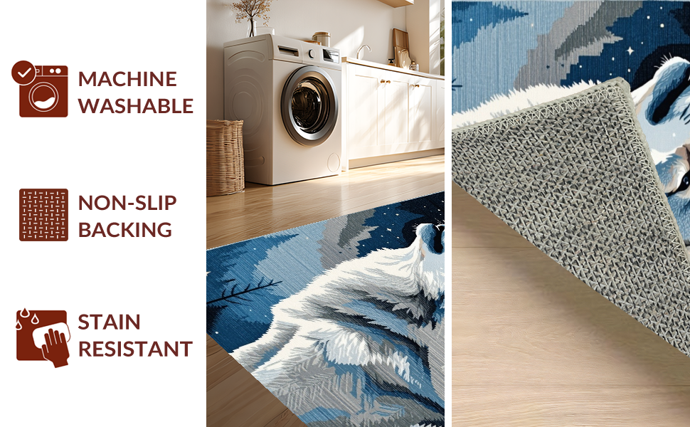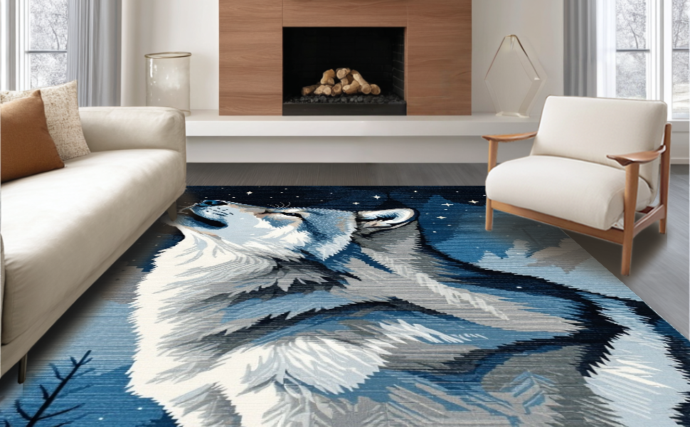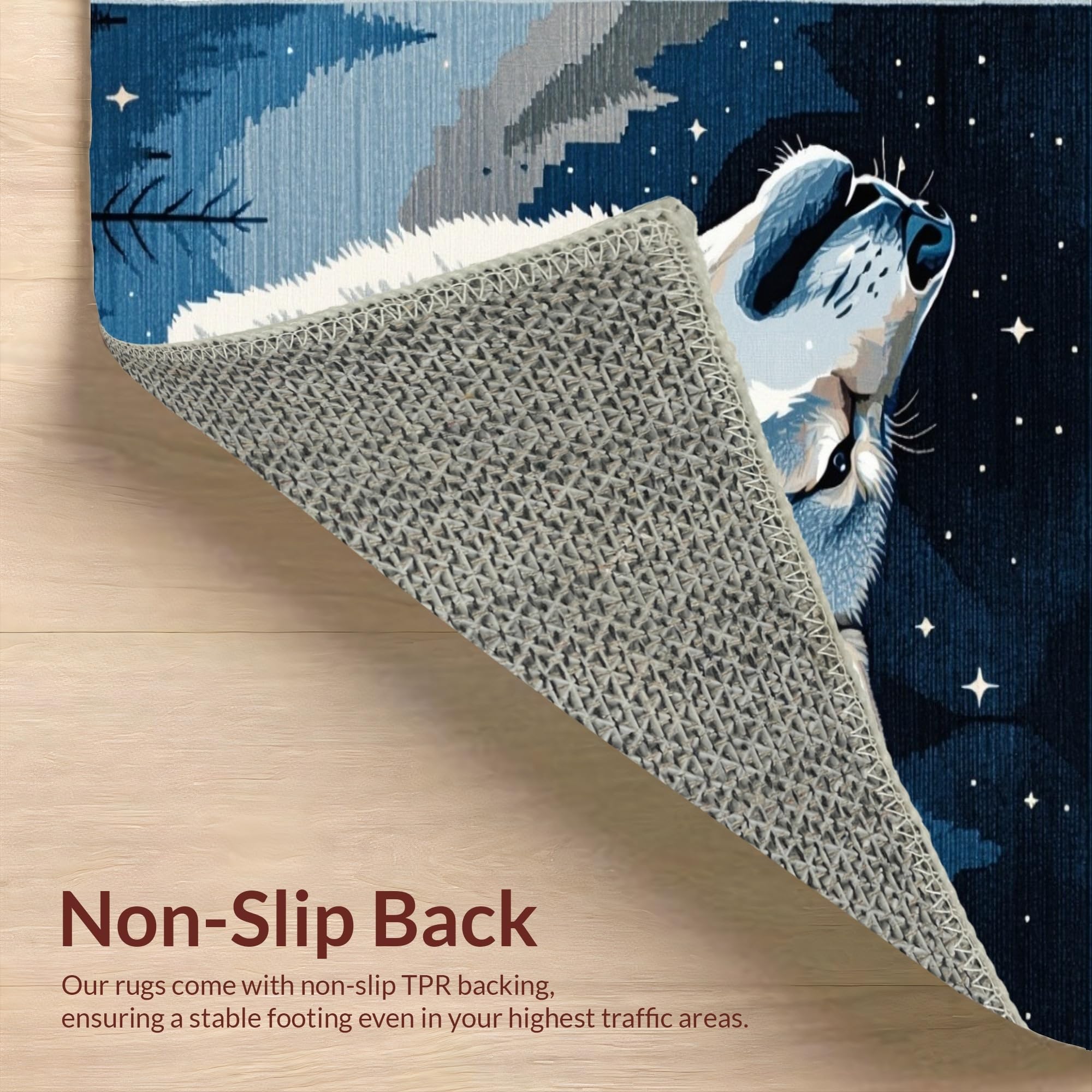 Ultra Soft Area Rug, Non Slip, Stain Resistant, Washable Area Rugs for Living Room, Bedroom, Elegant Lunar Wildlife Representation(Blue) Overview: