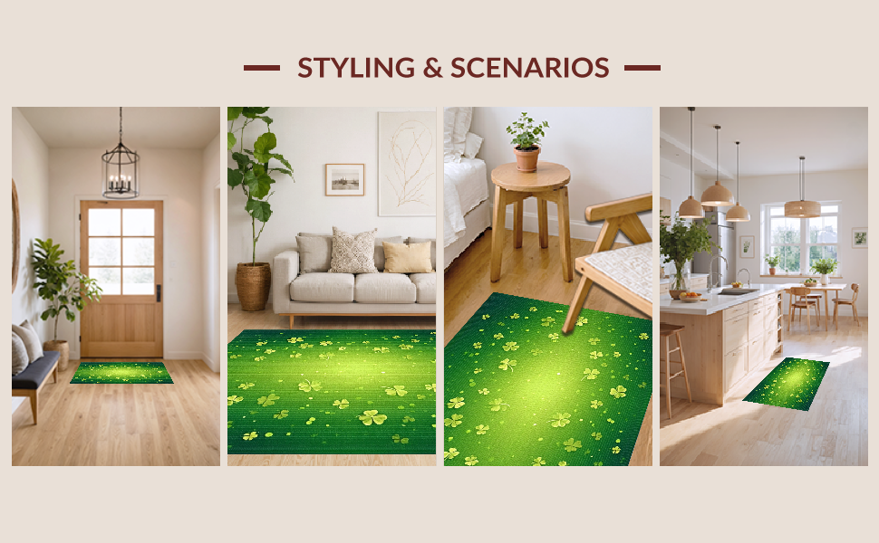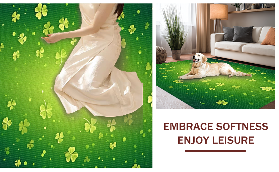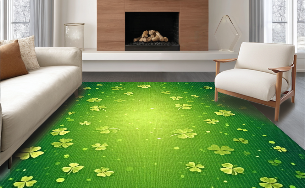 Ultra Soft Area Rug, Non Slip, Stain Resistant, Washable Area Rugs for Living Room, Bedroom, Elegant Lush Clover Arrangement(Green) Overview:
