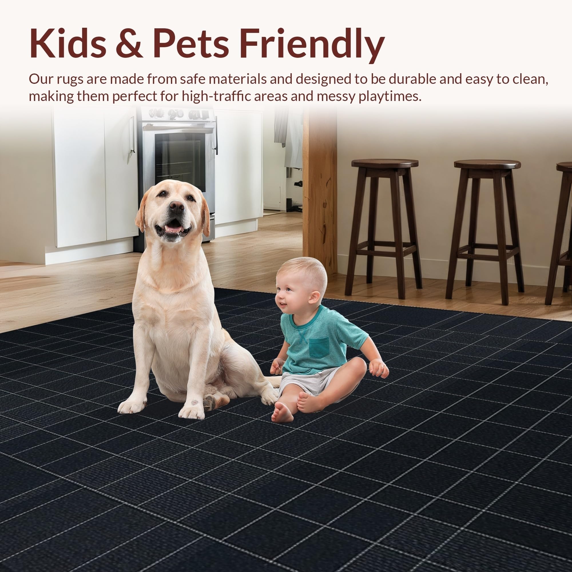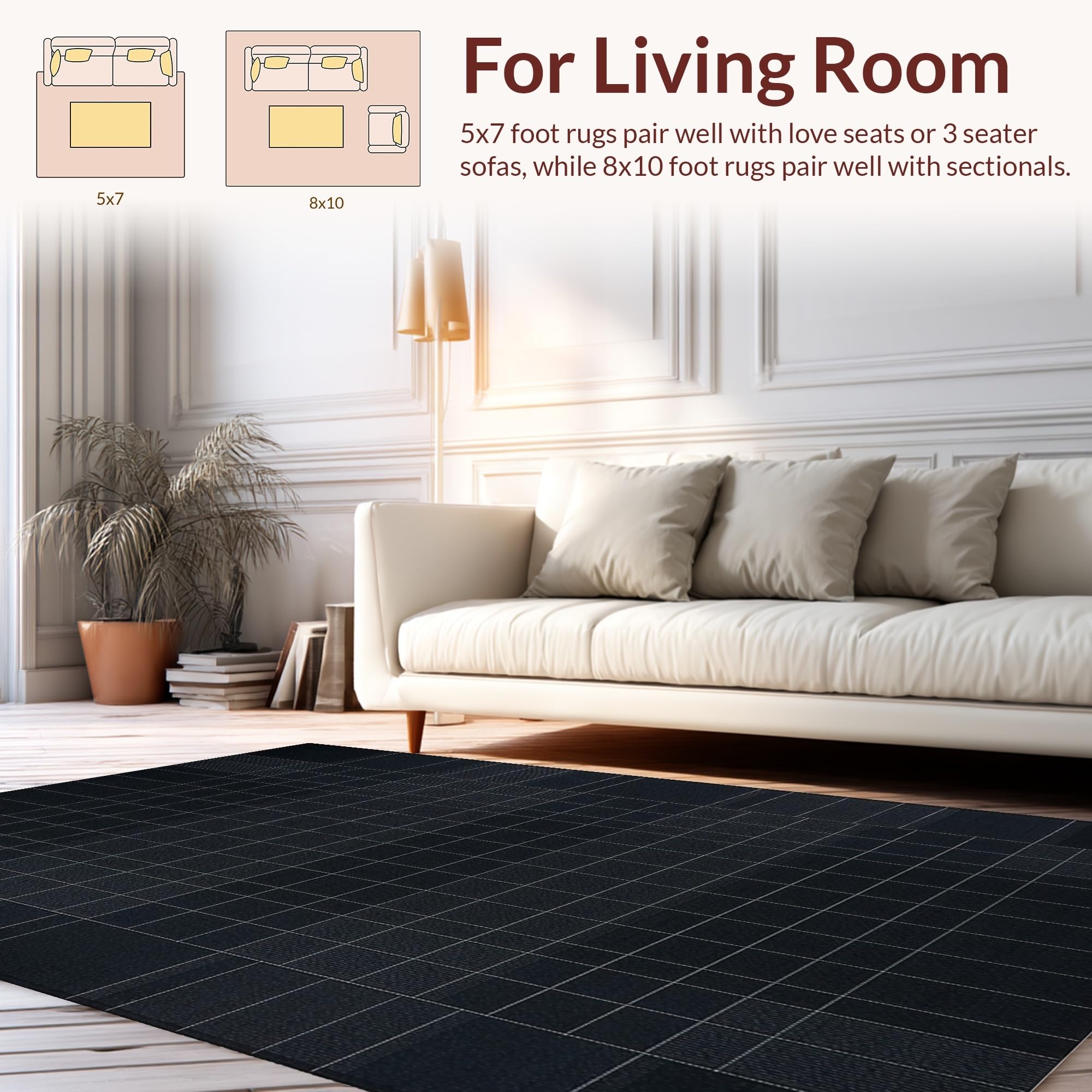 Ultra Soft Area Rug, Non Slip, Stain Resistant, Washable Area Rugs for Living Room, Bedroom, Elegant Luxurious Shag Texture(Black) Overview: