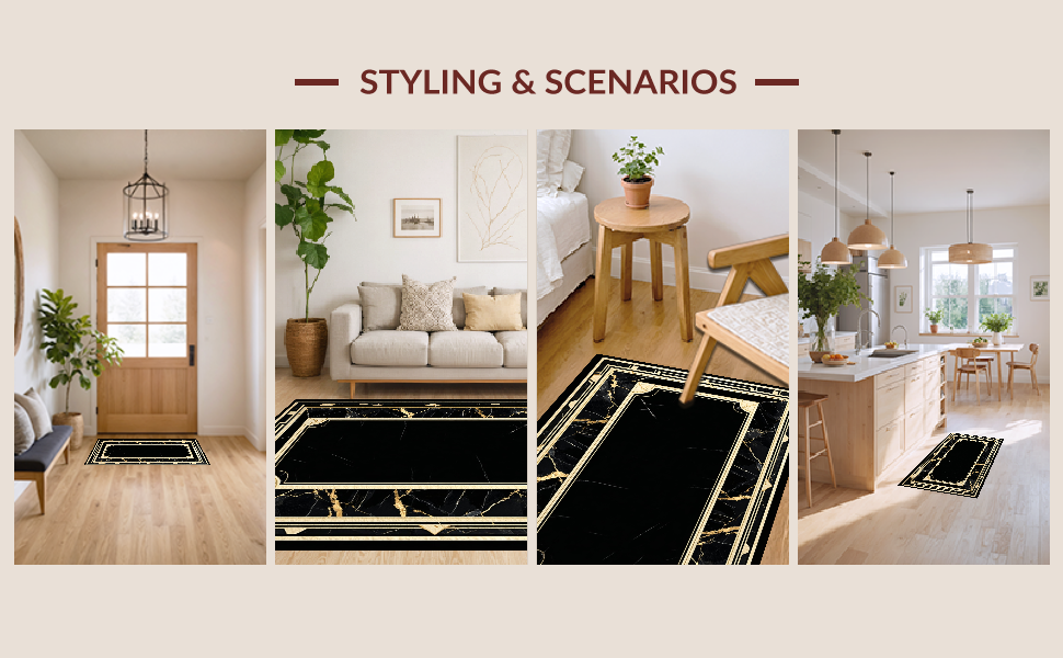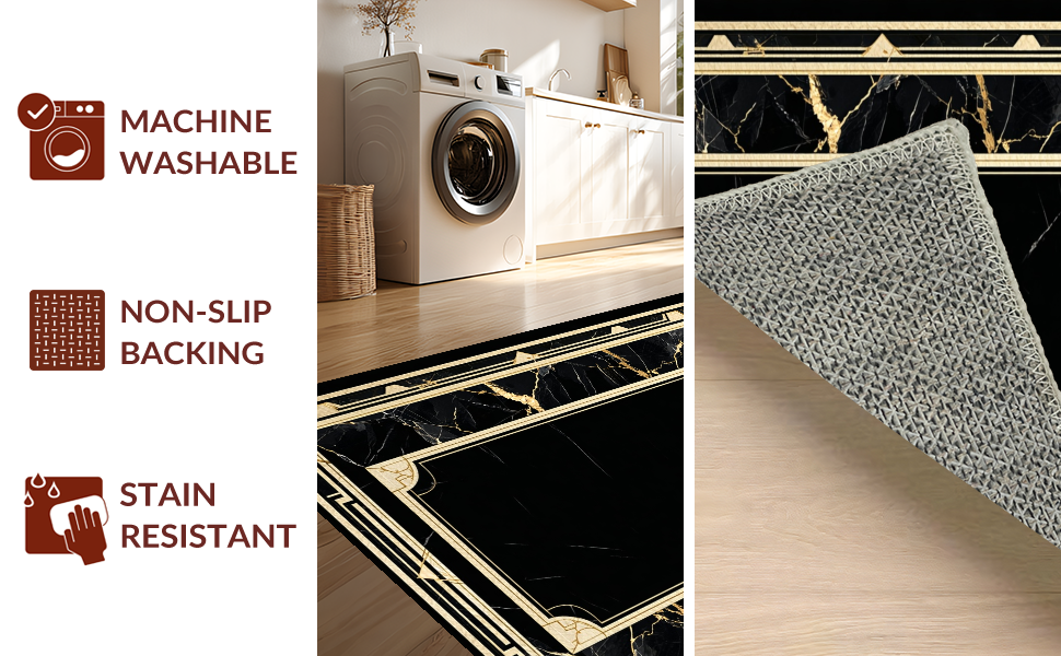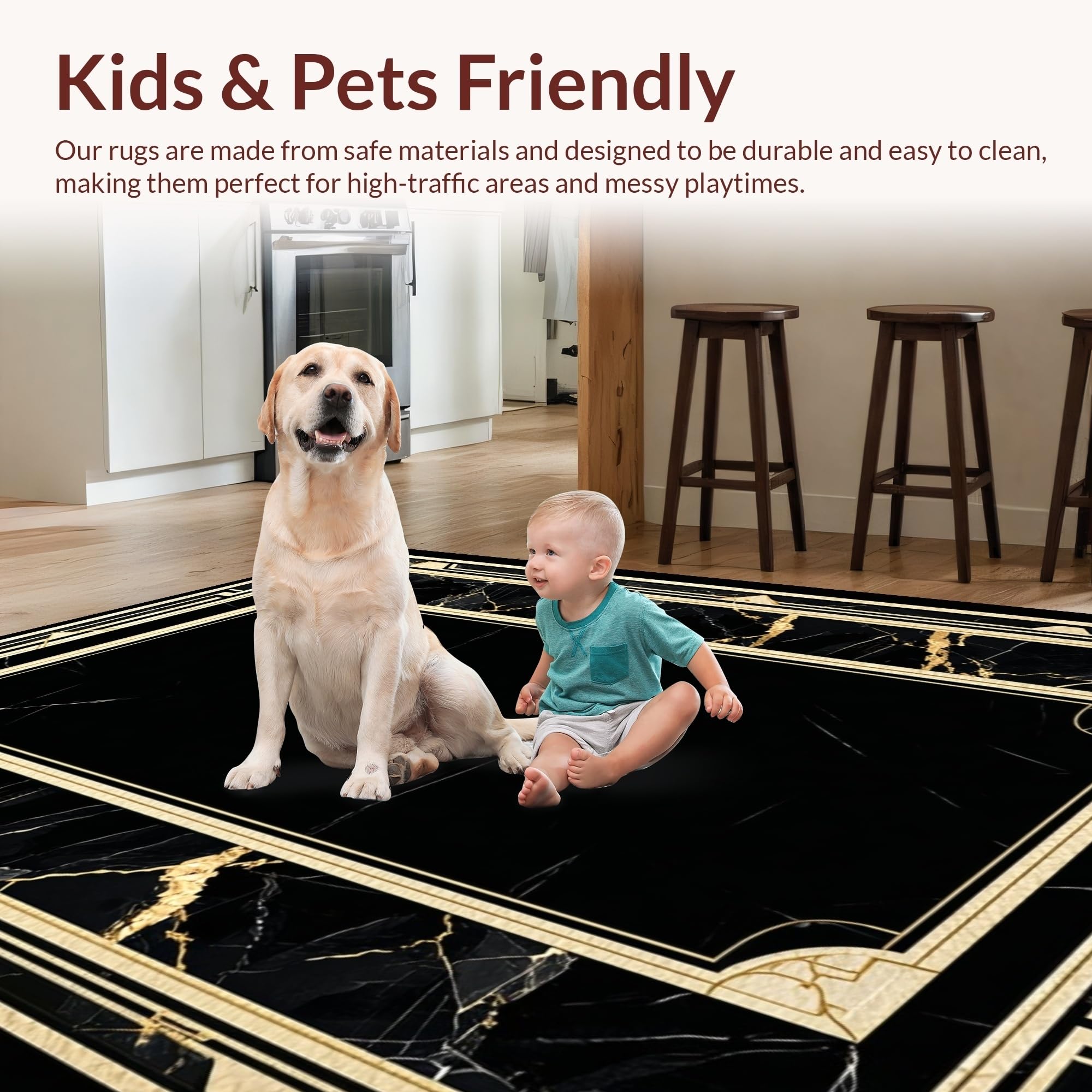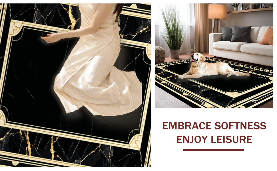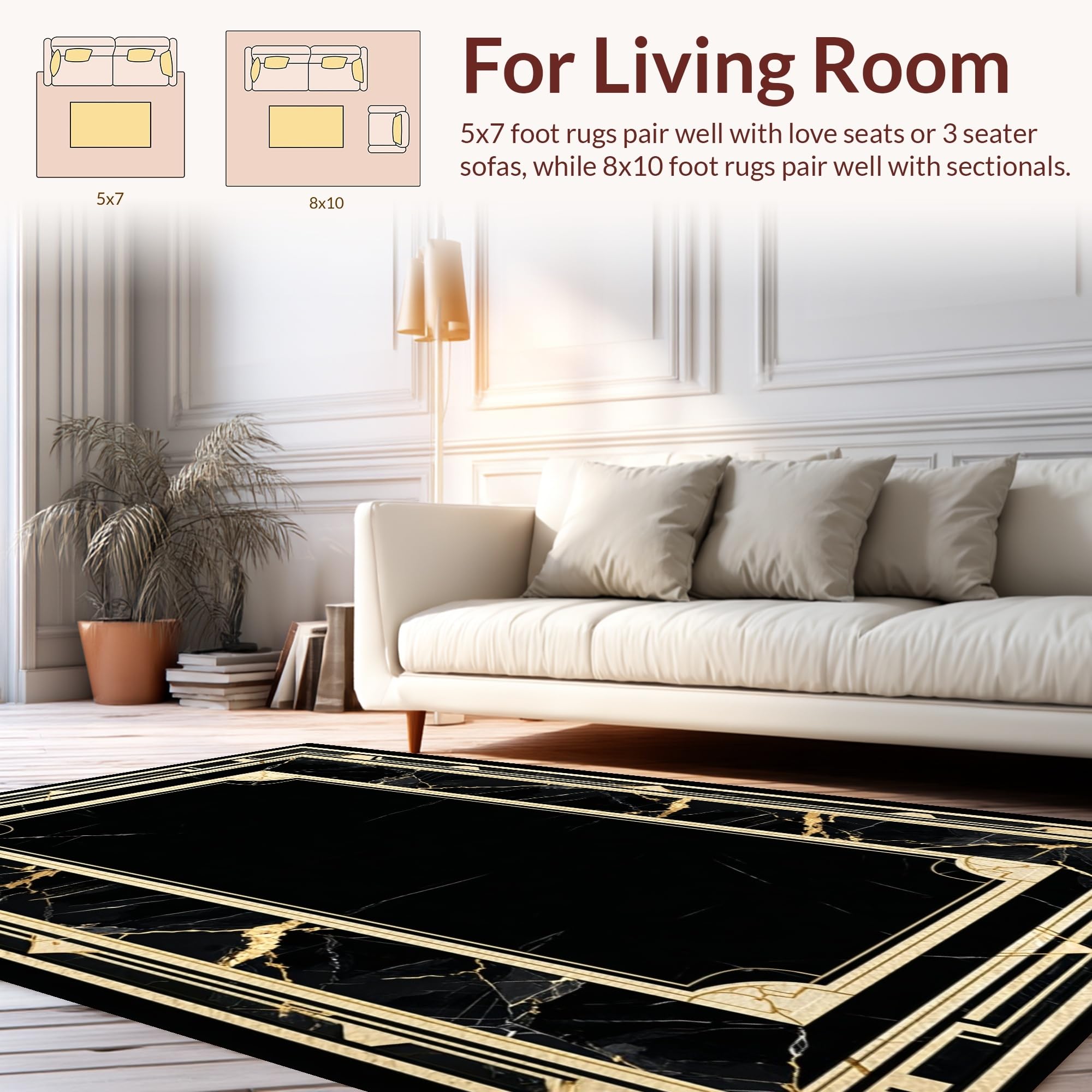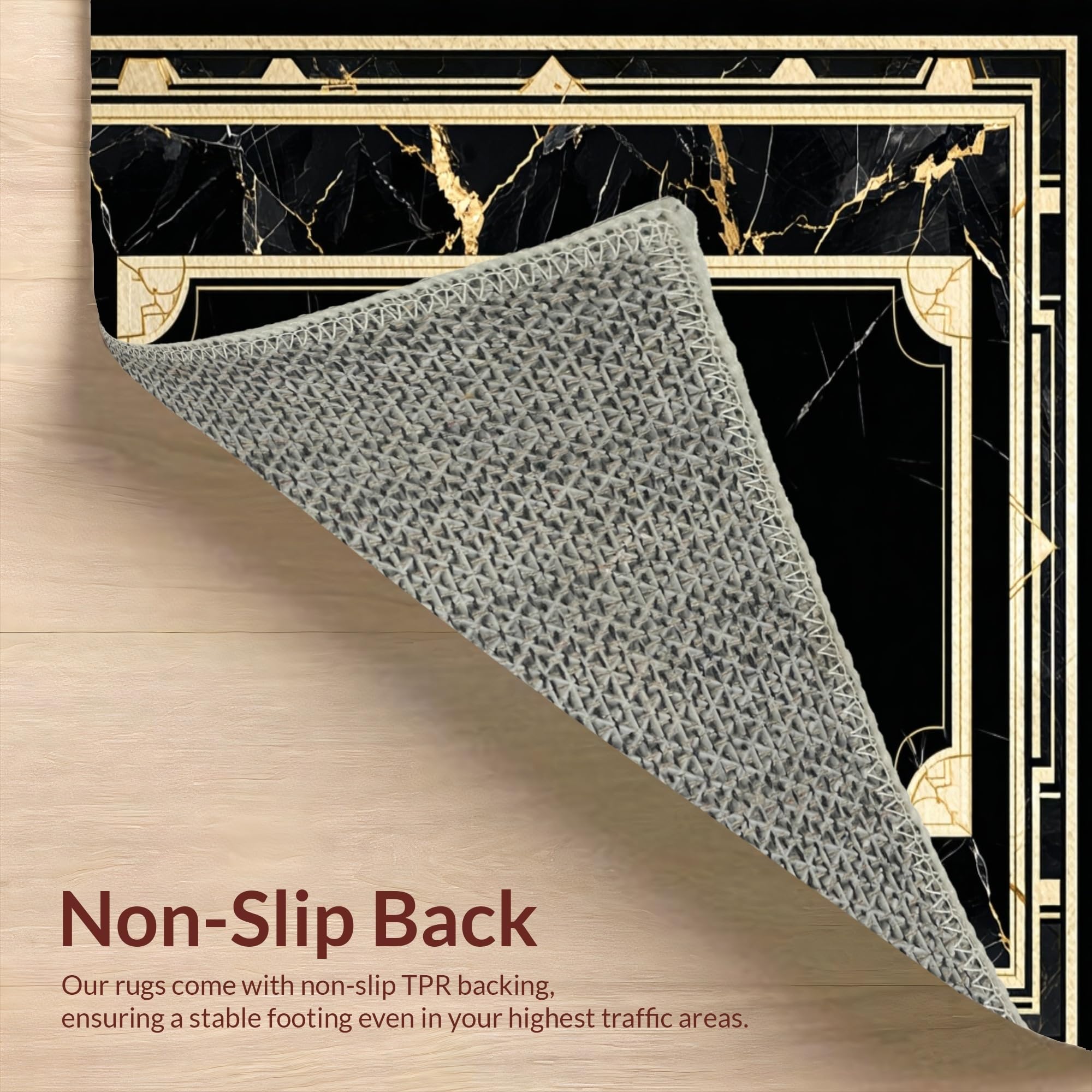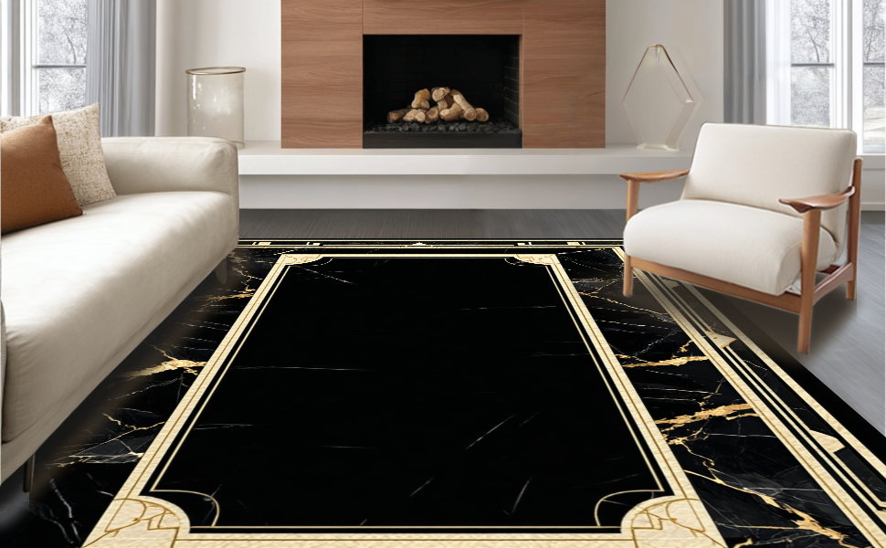Ultra Soft Area Rug, Non Slip, Stain Resistant, Washable Area Rugs for Living Room, Bedroom, Elegant Marble-Inspired Geometry(Black) Overview: