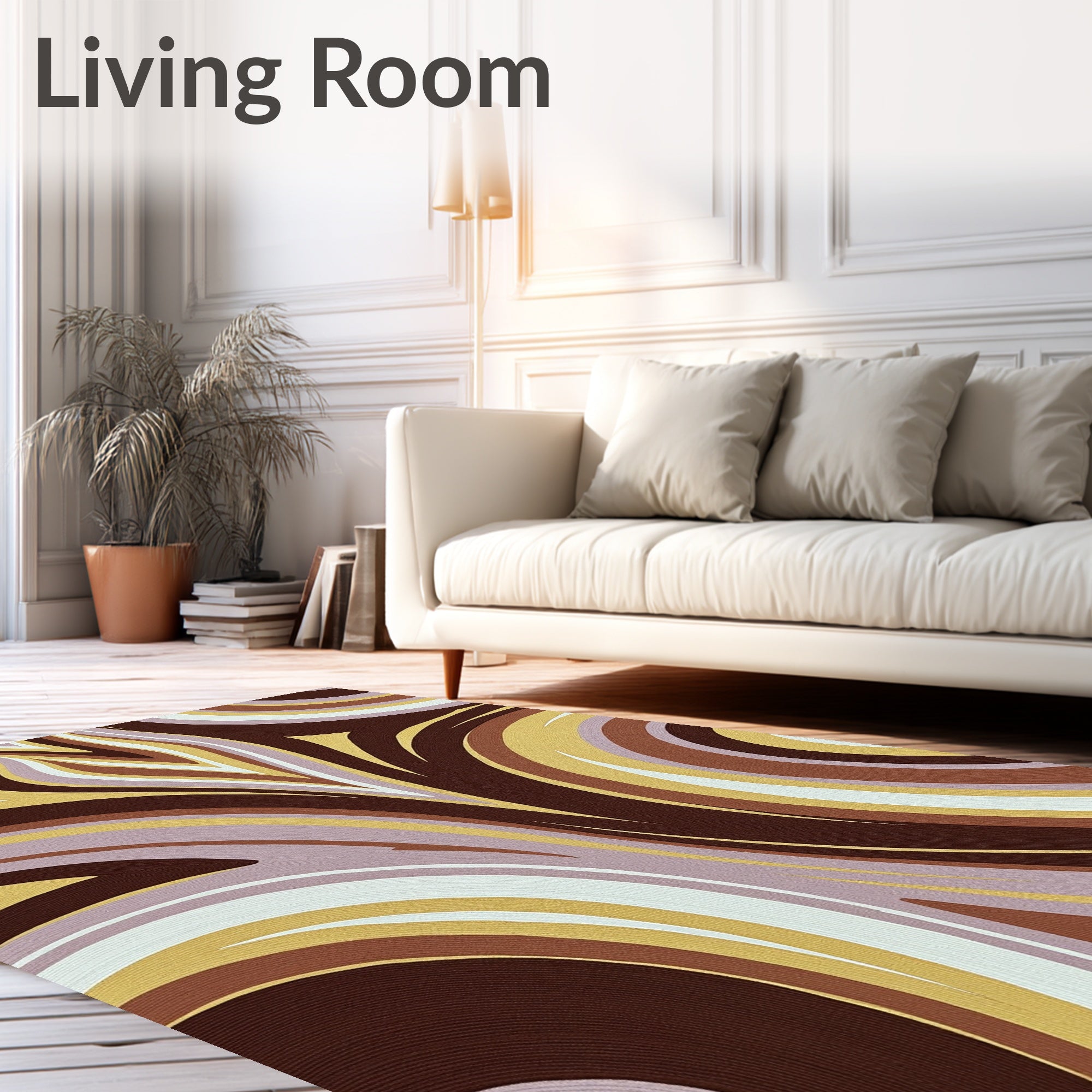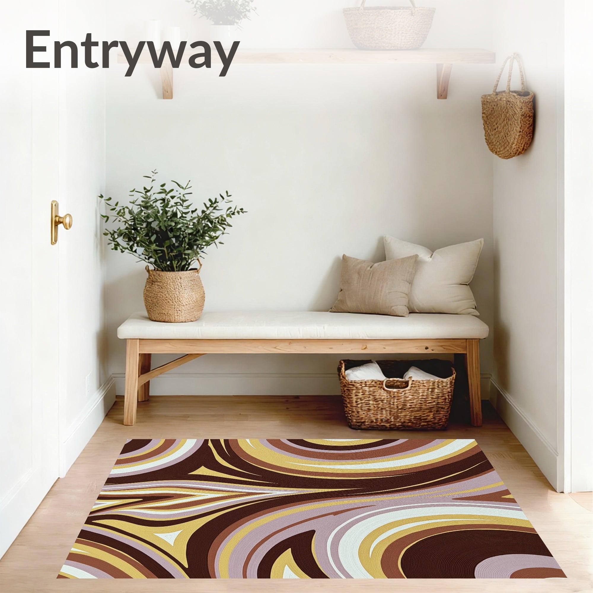 Flatwoven High Traffic Area Rug, Elegant Marbled Waterfall Cascade Flowing Artistic Accent, Non Slip, Stain Resistant, Washable Area Rugs for Living Room, Bedroom (Brown) Overview: