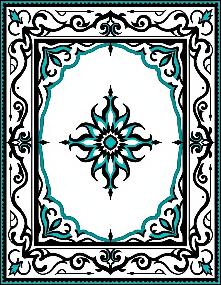 Elegant Medallion Interlocking Motif With Ornate Swirls(Black)