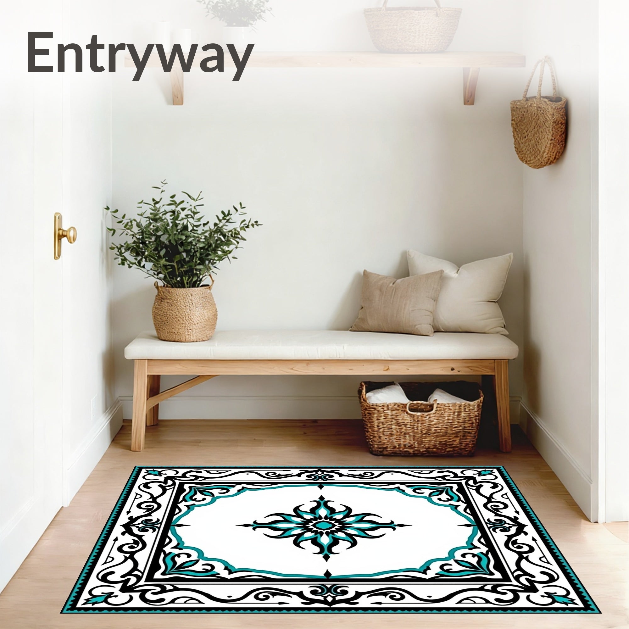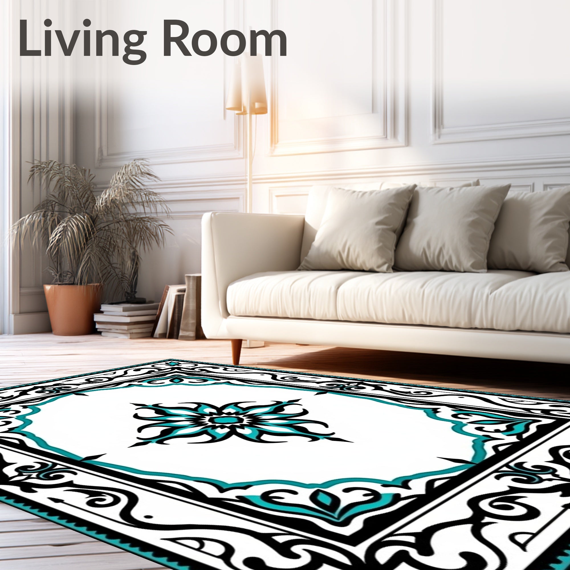 Ultra Soft Area Rug, Non Slip, Stain Resistant, Washable Area Rugs for Living Room, Bedroom, Elegant Medallion Interlocking Motif With Ornate Swirls(Black) Overview: