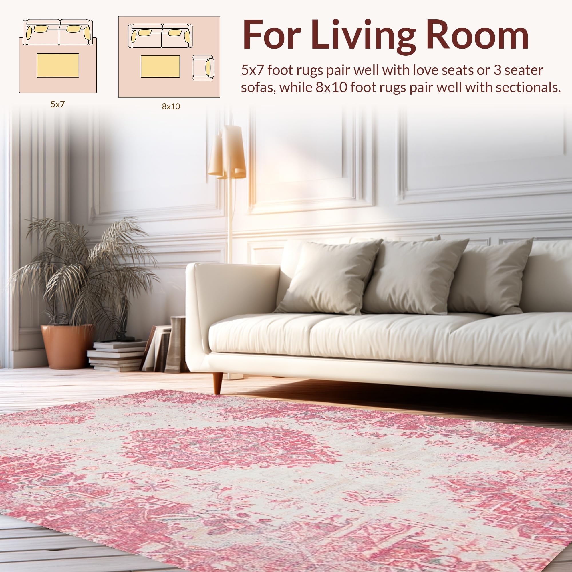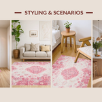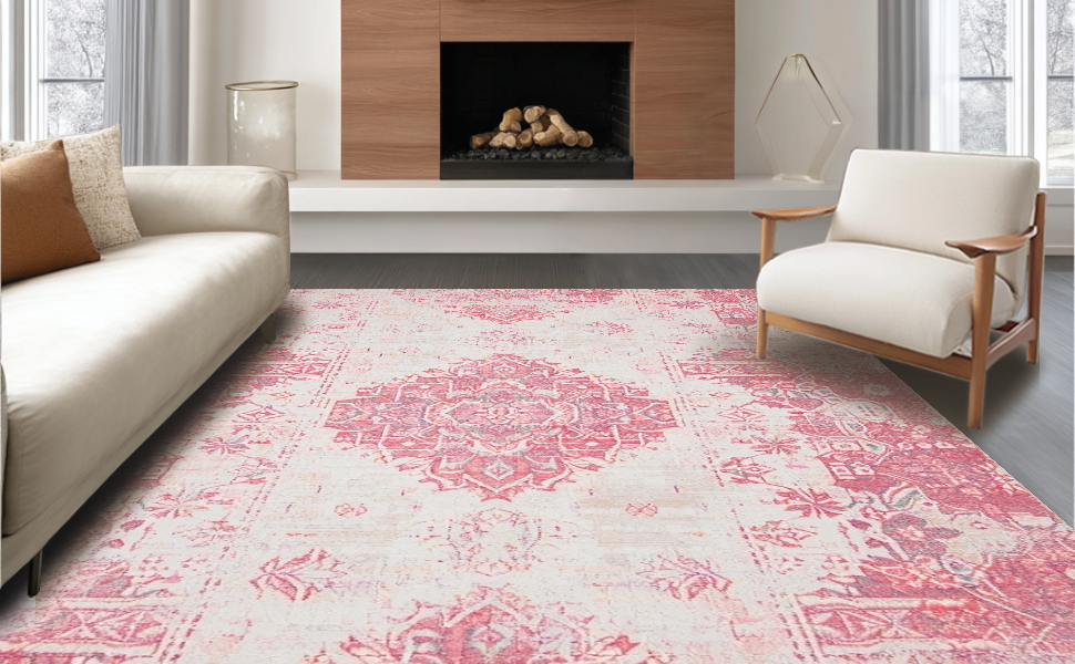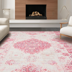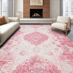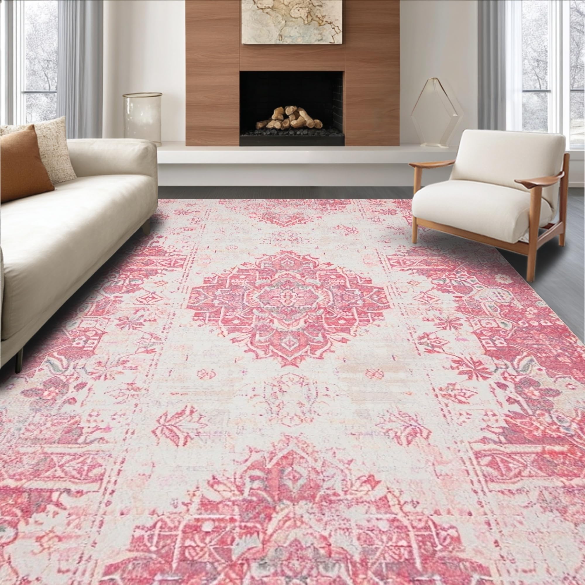 Ultra Soft Area Rug, Non Slip, Stain Resistant, Washable Area Rugs for Living Room, Bedroom, Elegant Medallion Patterned Charm(Pink) Overview: